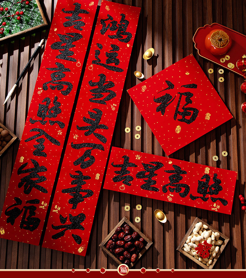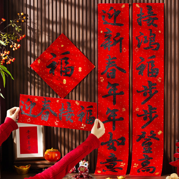 高檔絨布對聯2026馬年新款書法春聯春節過年大門福字貼新年裝飾品