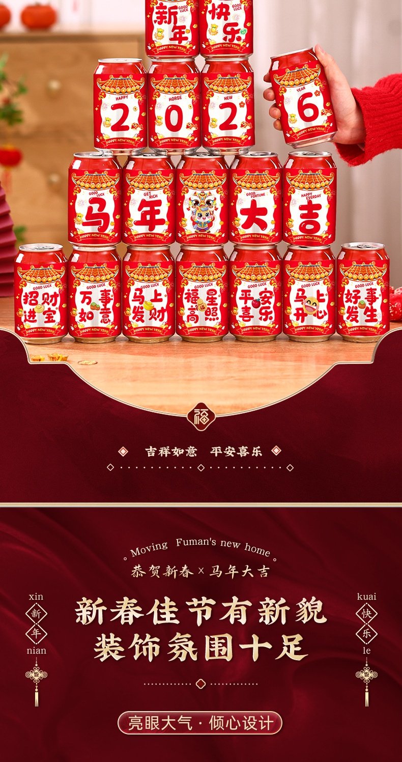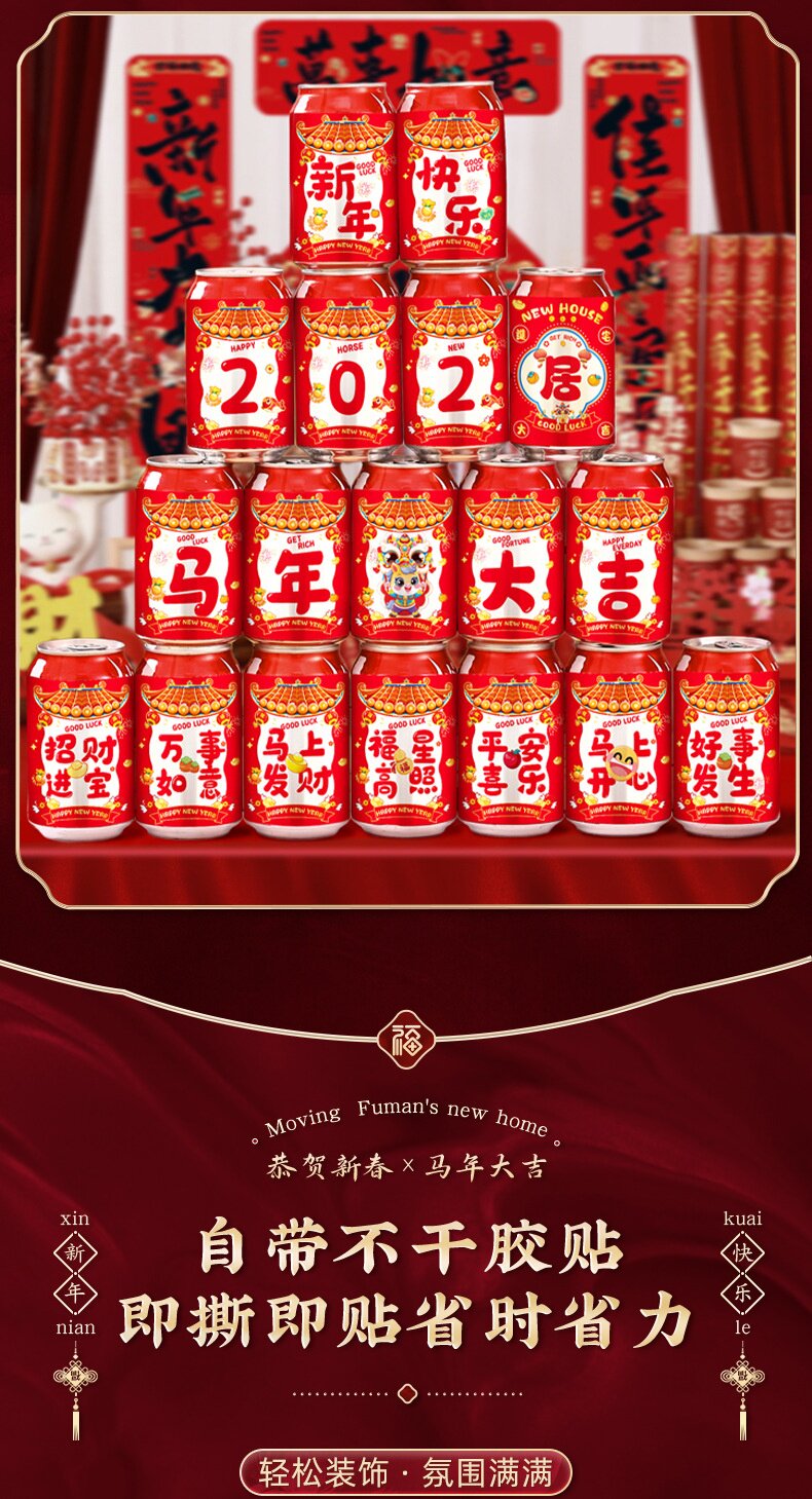 2026馬年創意可樂貼紙新款春節飲料擺件跨年晚會裝飾過年儀式用品