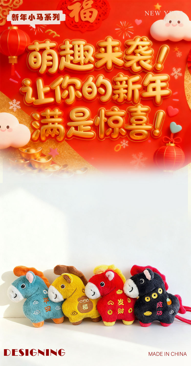 2026馬年吉祥物毛絨玩具生肖馬公仔掛件包包掛飾馬上發財新年玩偶
