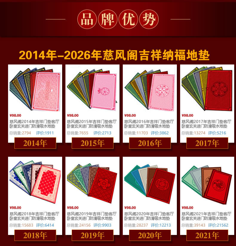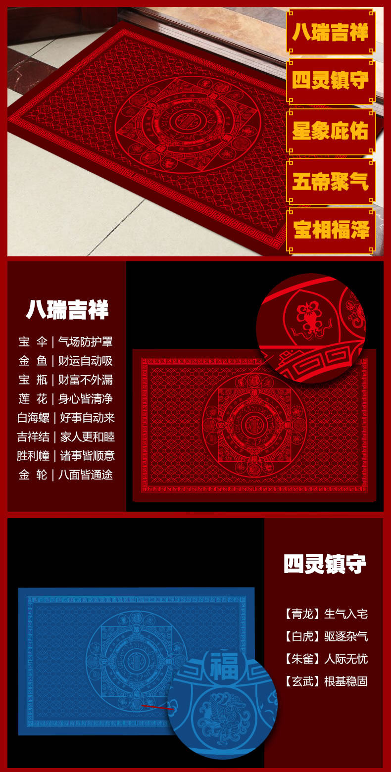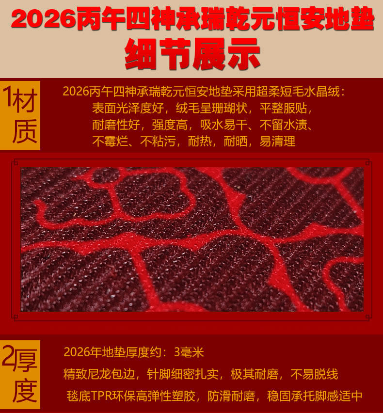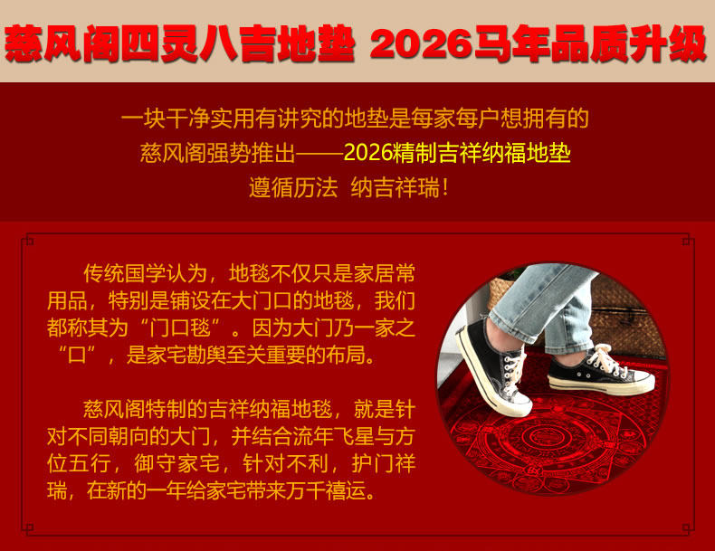 慈風閣2026馬年吉祥門墊客廳臥室玄關進門防滑吸水地墊腳墊入戶門