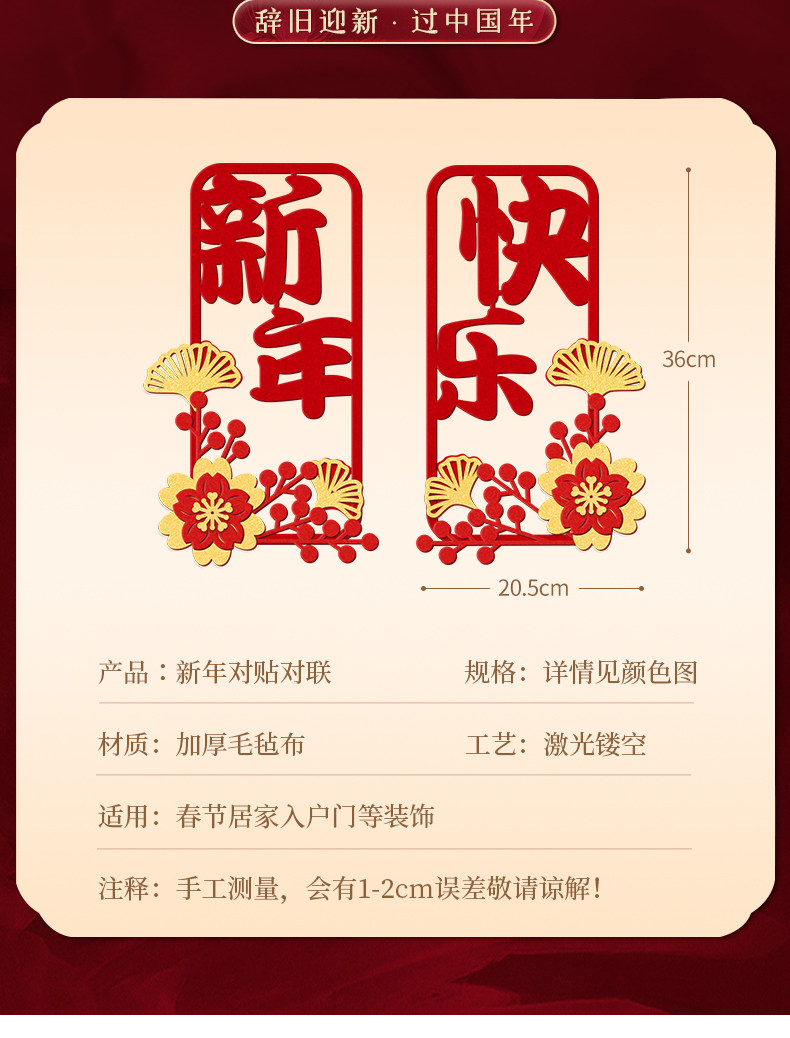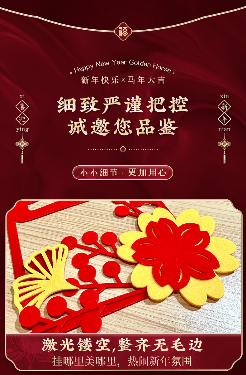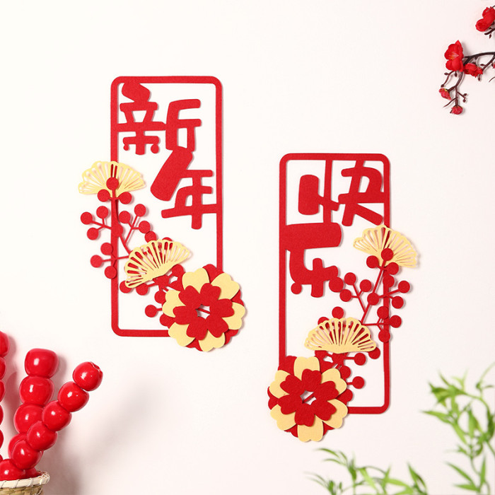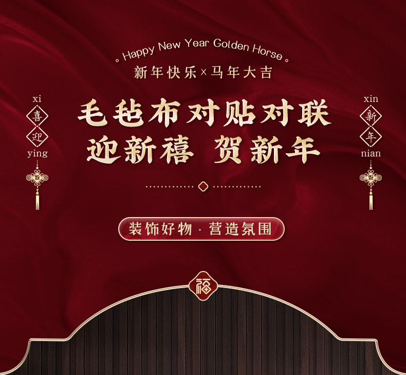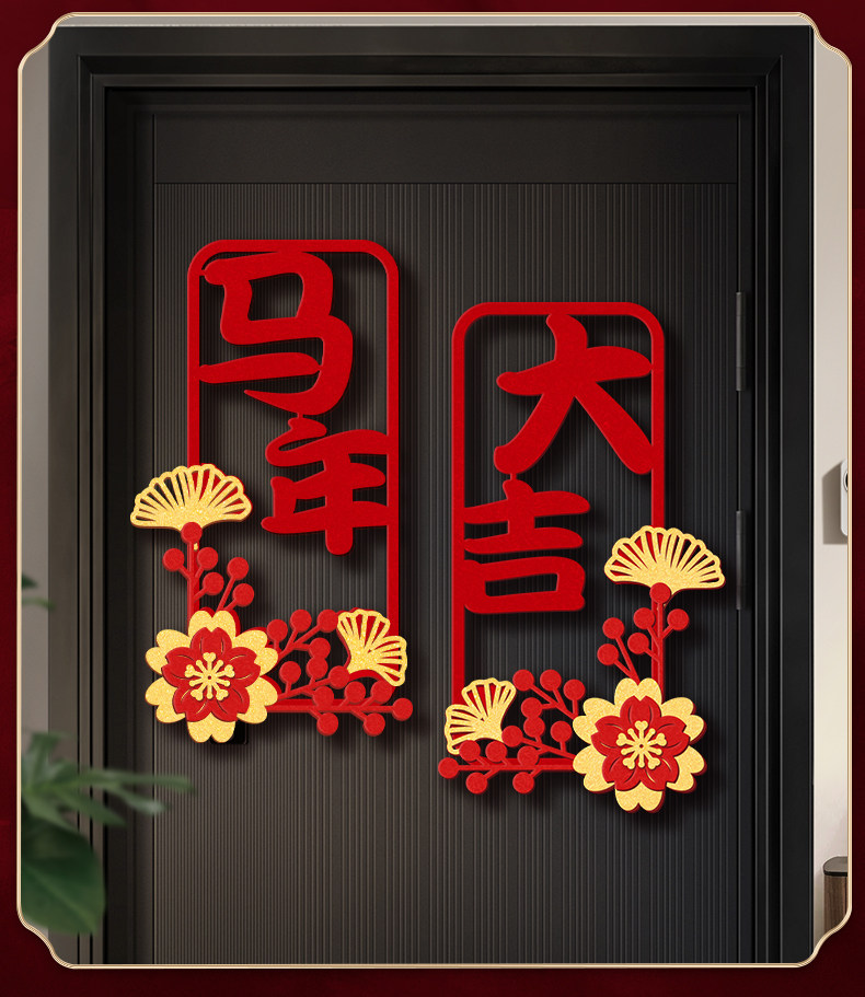 2026過年春節新年裝飾毛氈小對聯福字門貼立體馬年大吉年味布置