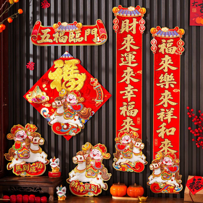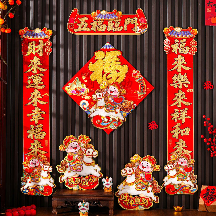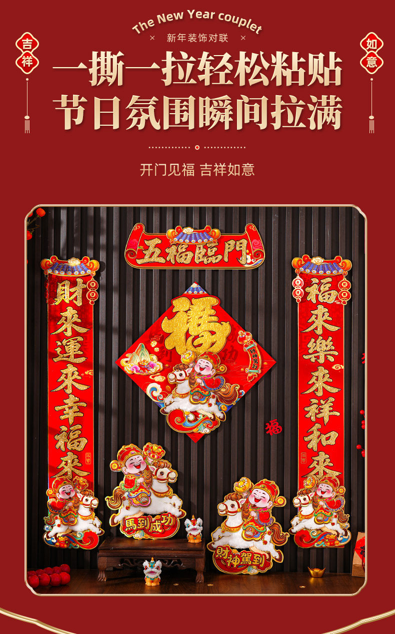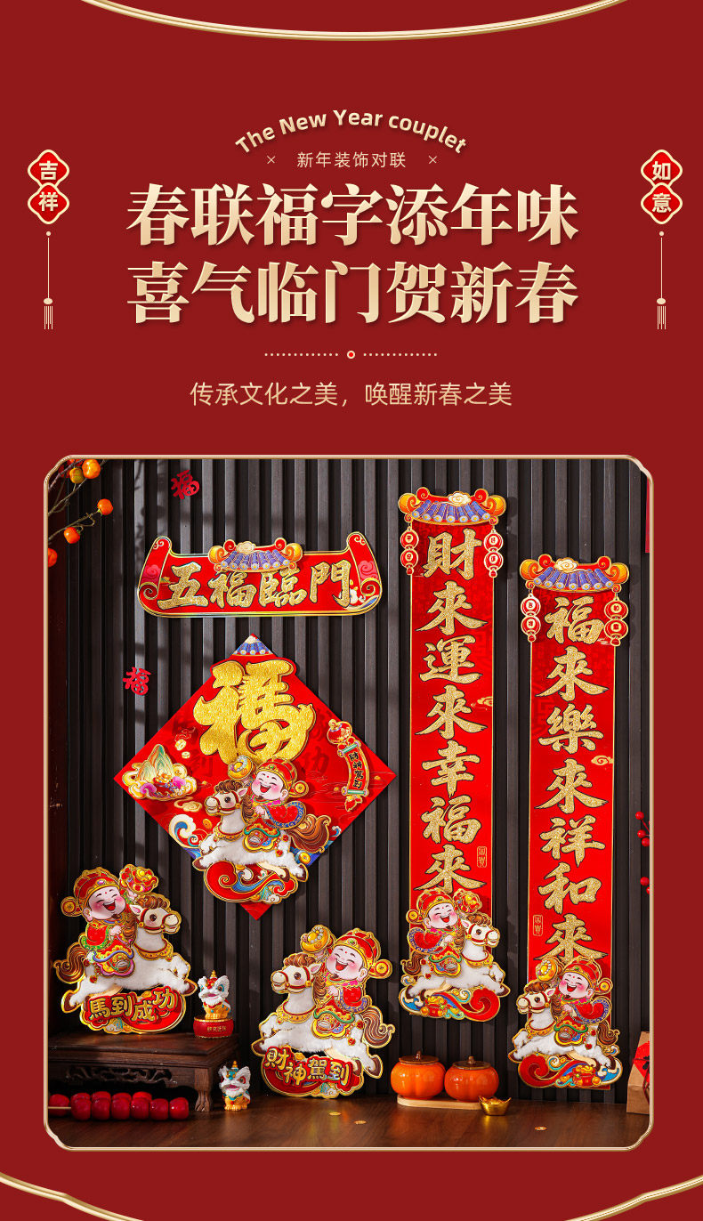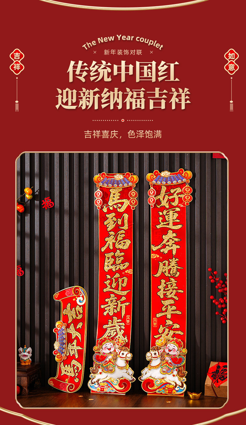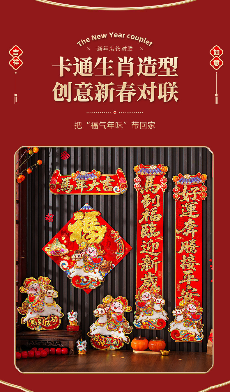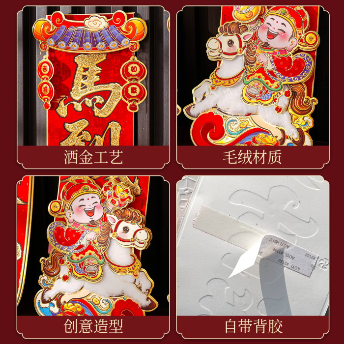 對聯2026馬年新款植絨春聯過年卡通立體毛絨馬上發財家用對聯裝飾