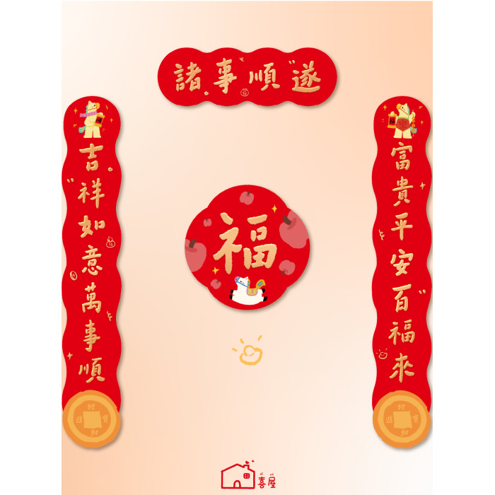 2026春聯馬年對聯文創新年春節裝飾喬遷入戶門貼磁吸門聯福字貼紙