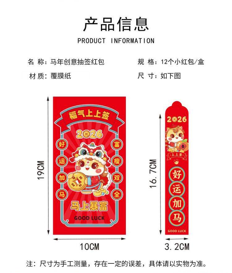 馬年創意抽簽紅包家用卡通新款個性利是封風新年春節壓嵗包