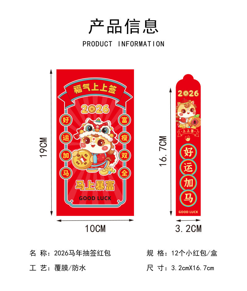 馬年創意抽簽紅包家用卡通新款個性利是封風新年春節壓嵗包