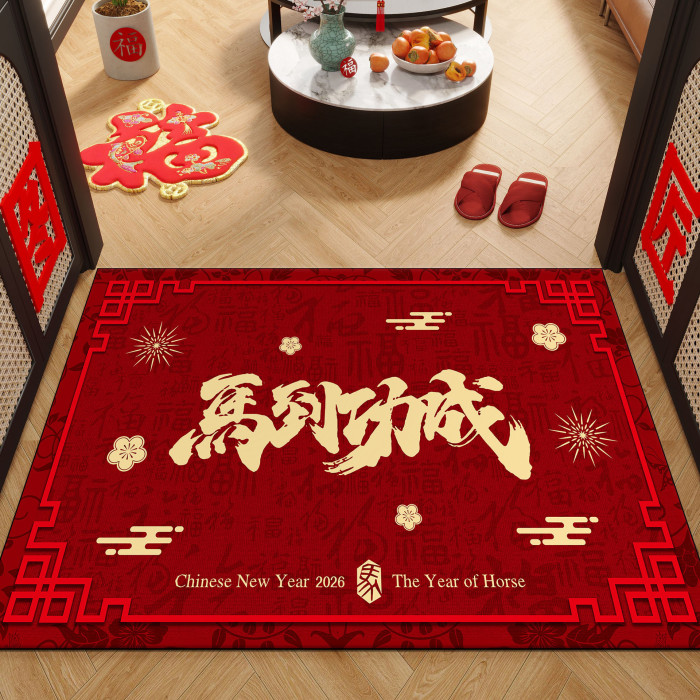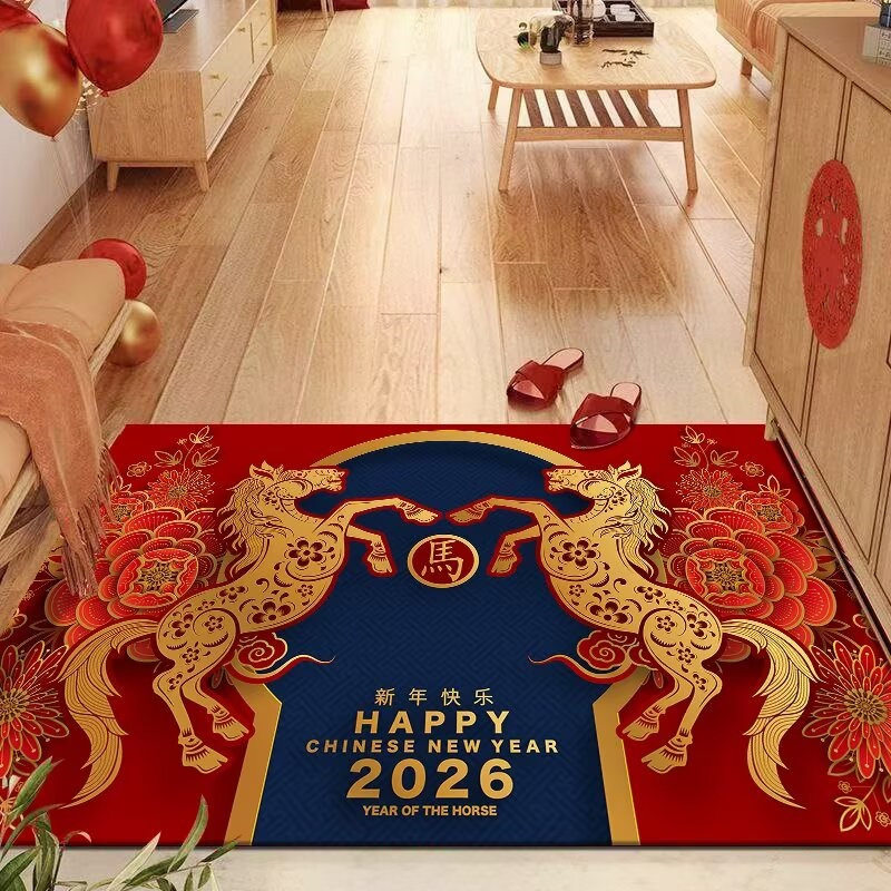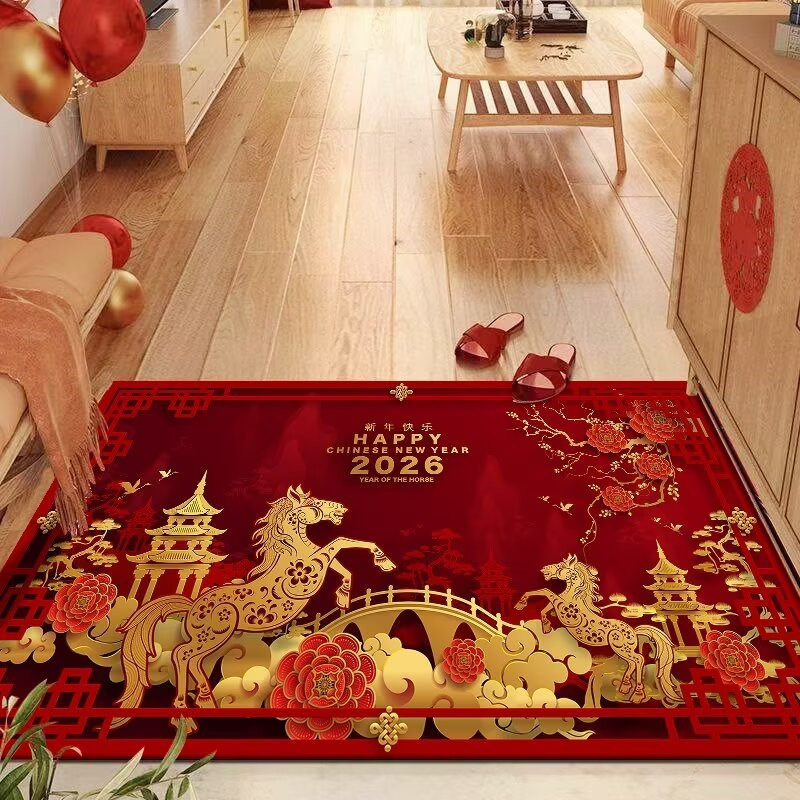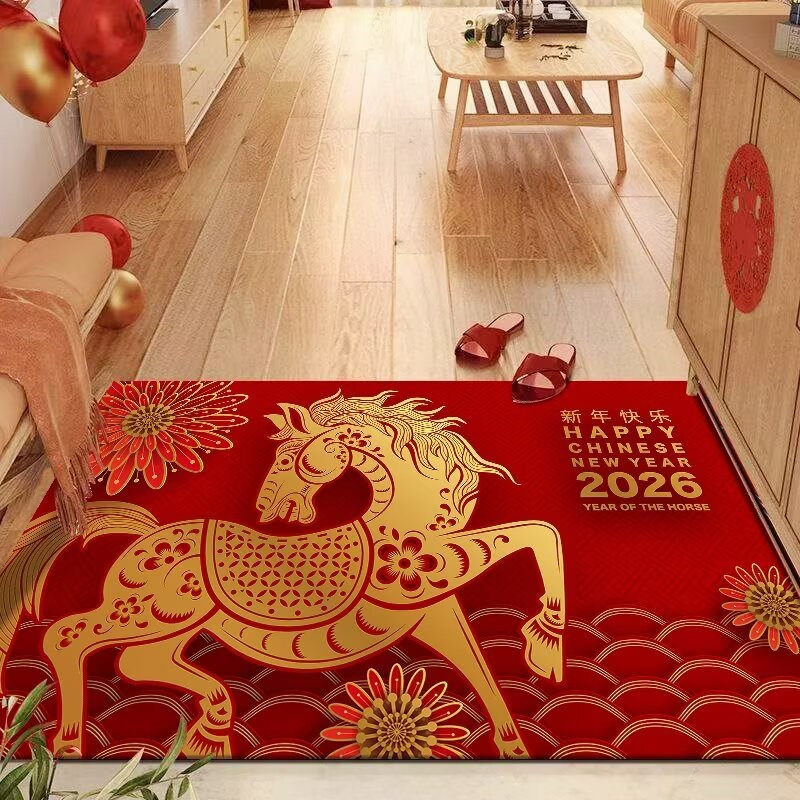 2026馬年紅色地毯入戶門地墊過年節日喜慶裝飾進門玄關防滑腳墊