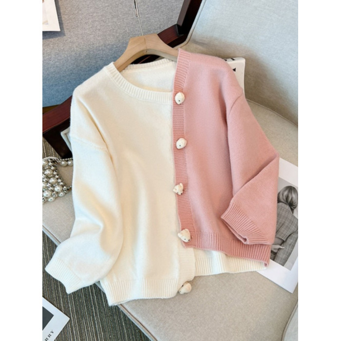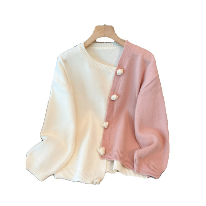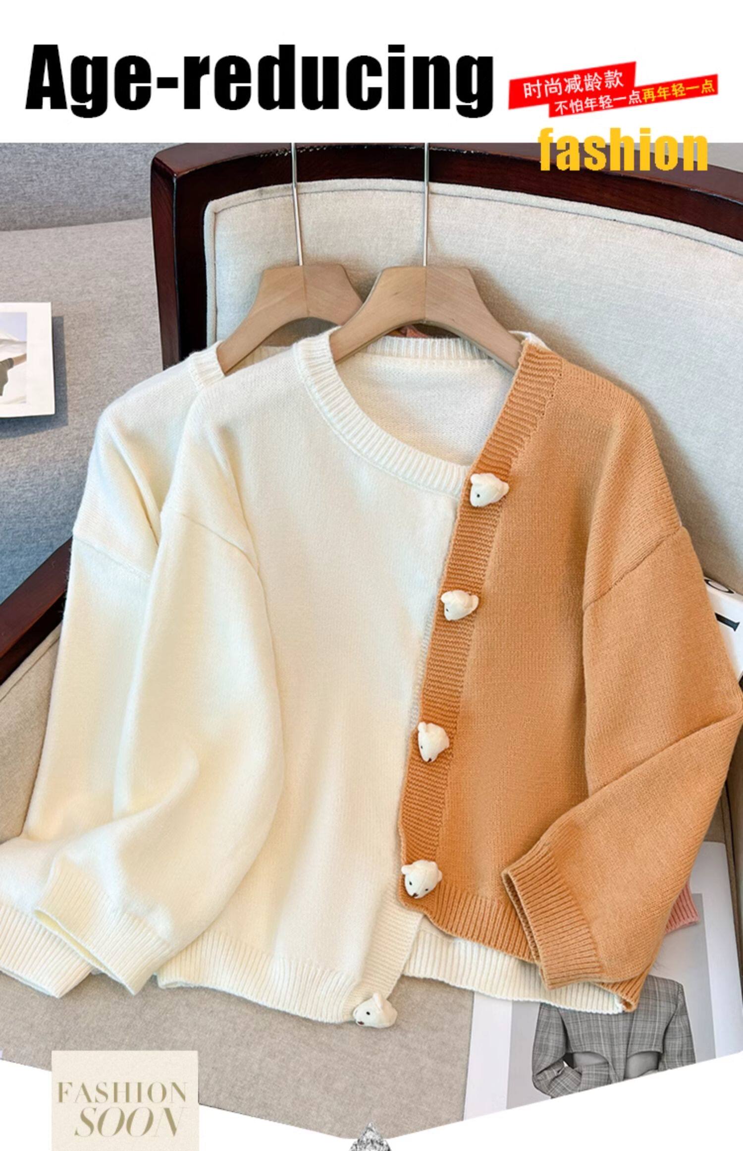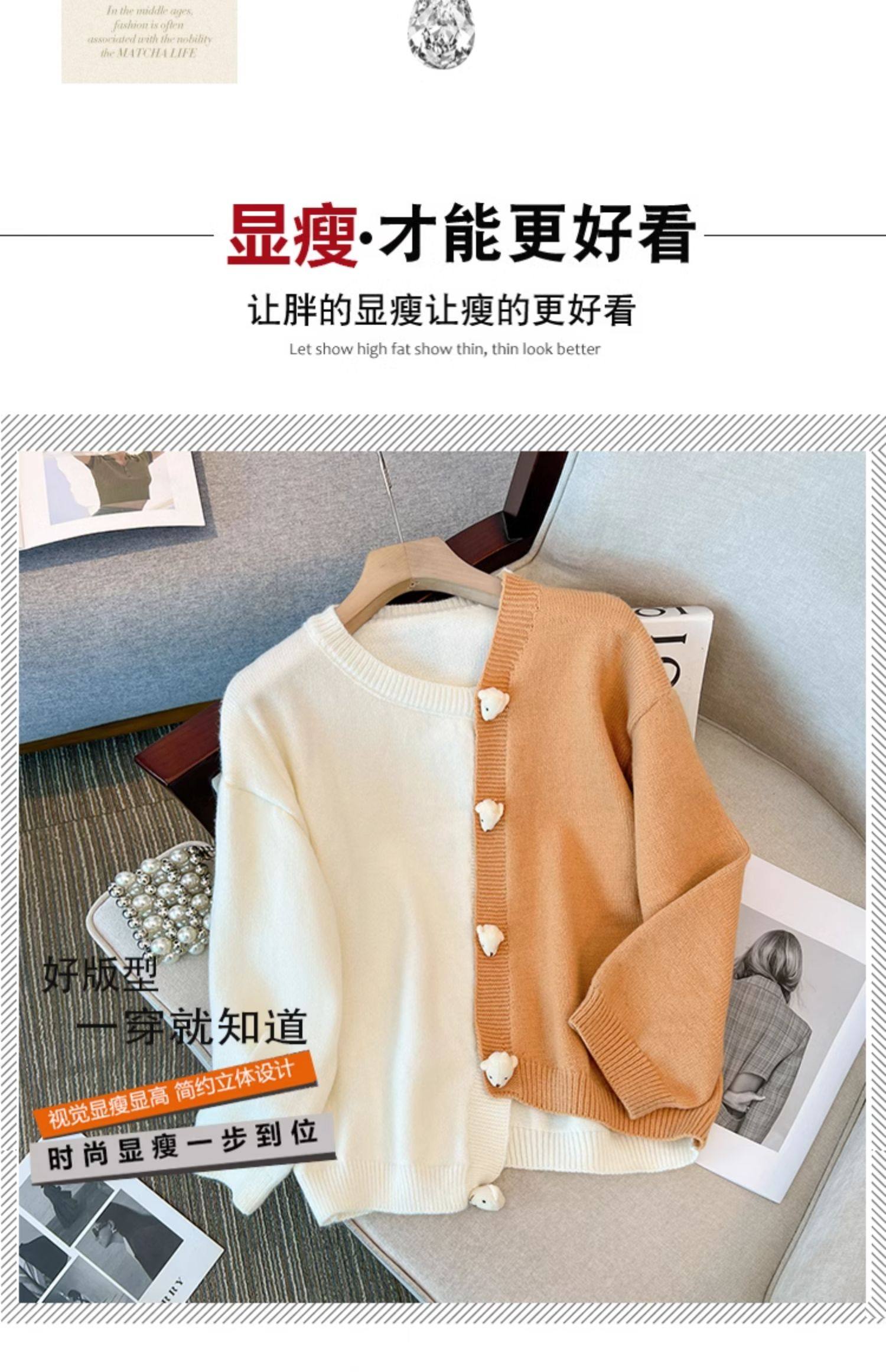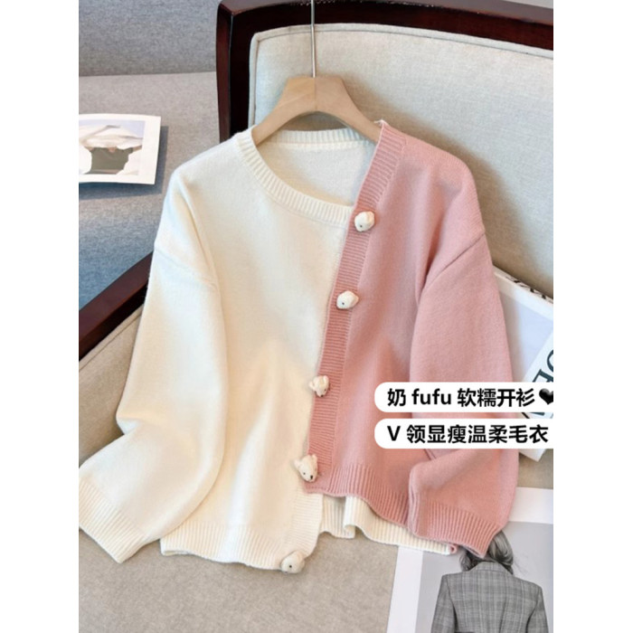 嬭fufu軟糯毛衣外套女早秋季大碼胖mm顯瘦不規則粉色針織開衫上衣