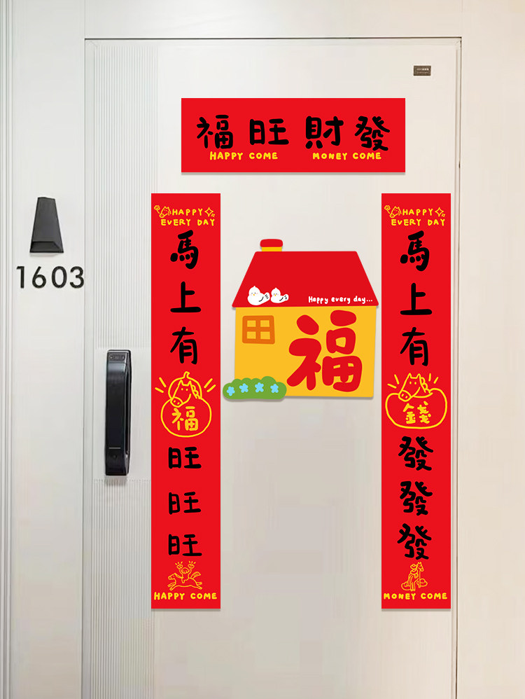 新款2026馬年春節福字對聯鬭方門貼喬遷新居磁吸年輕人裝飾對聯