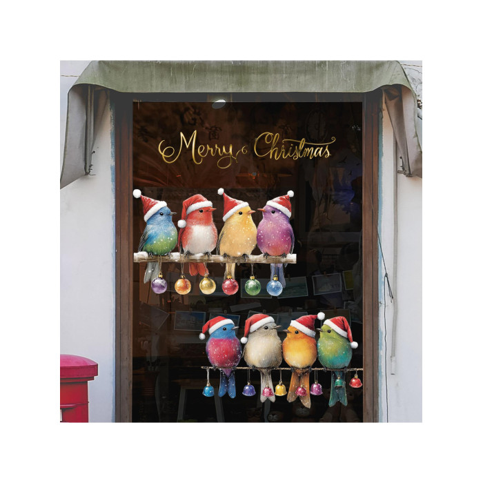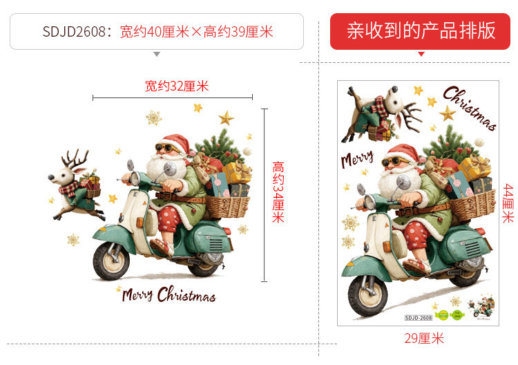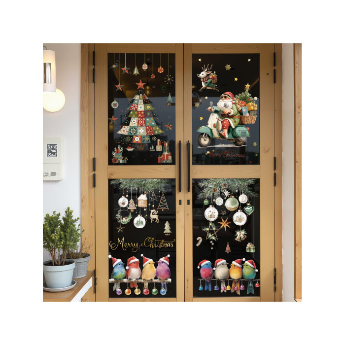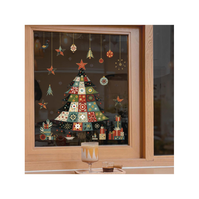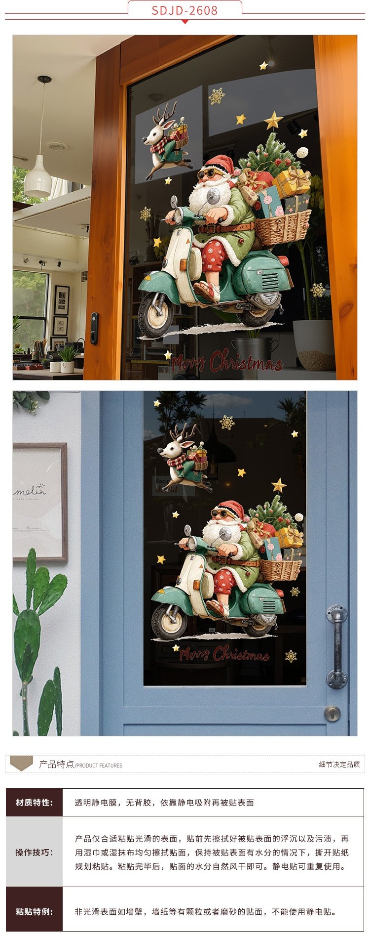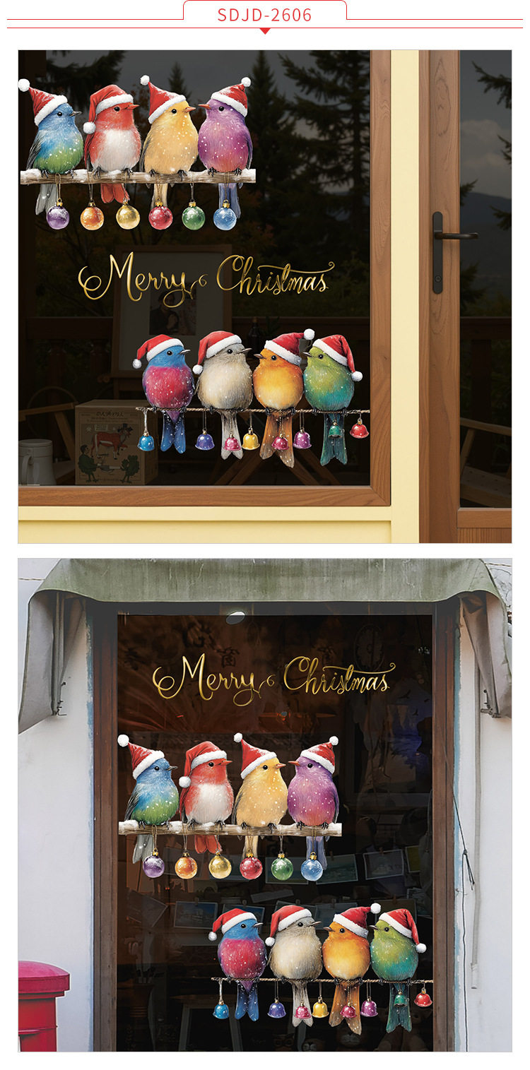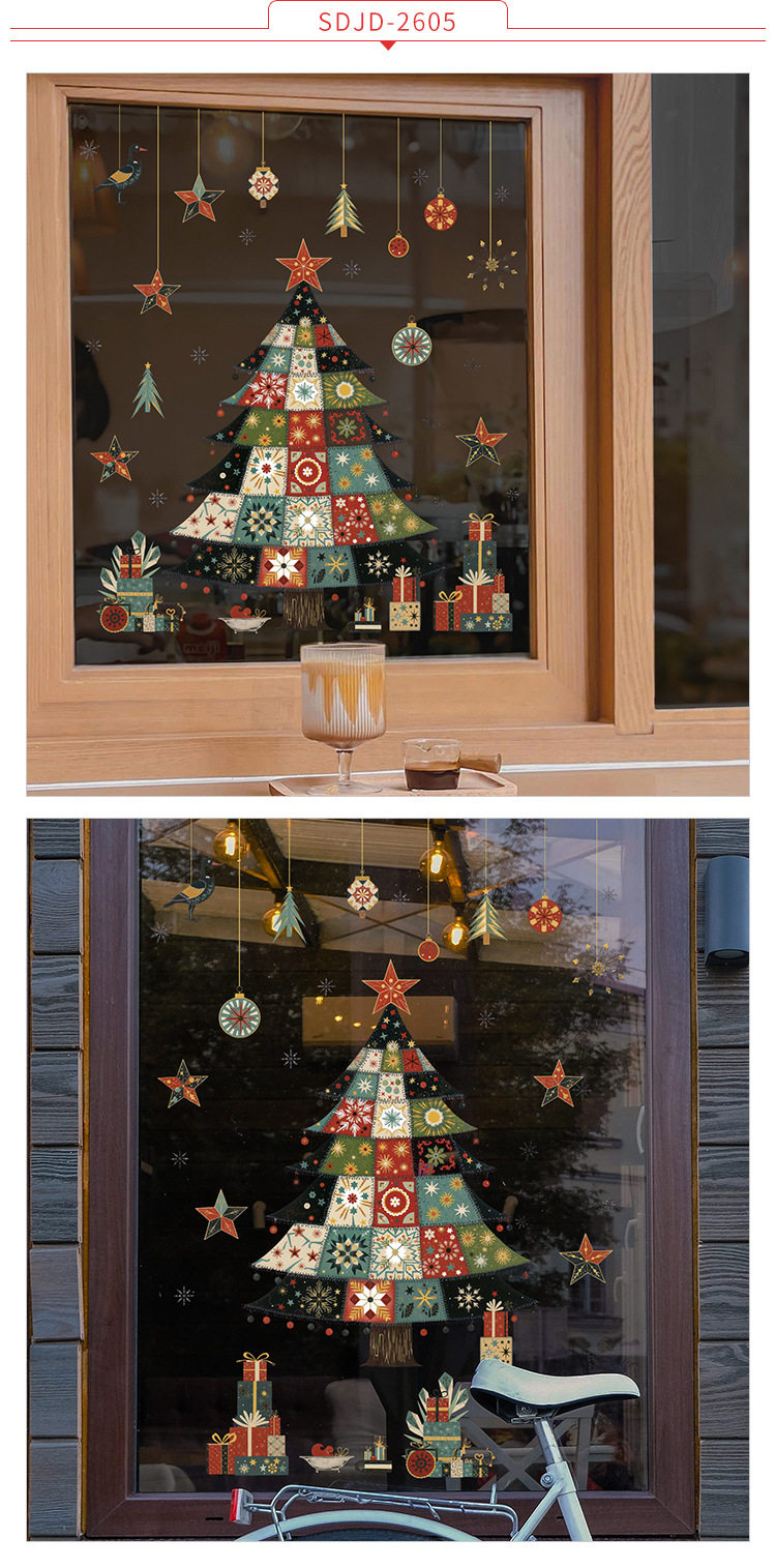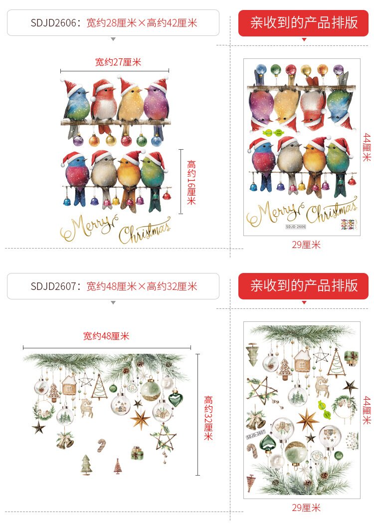 2026聖誕節靜電玻璃窗貼聖誕樹禮盒星星裝飾貼畫彩燈松枝小鳥貼畫