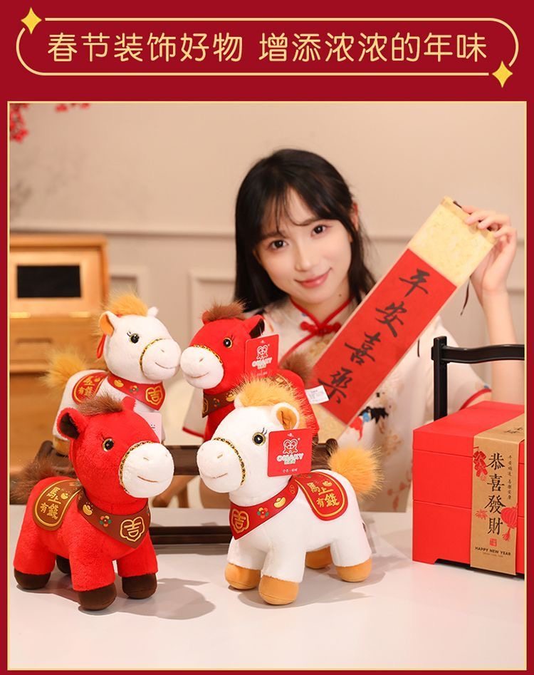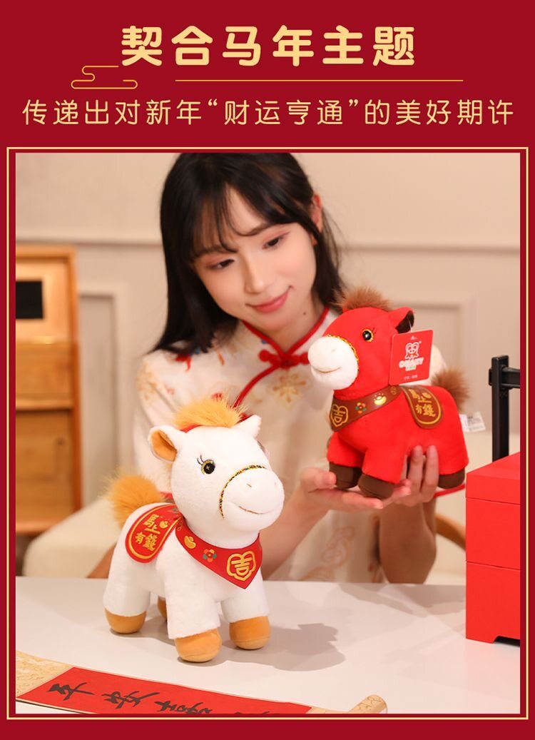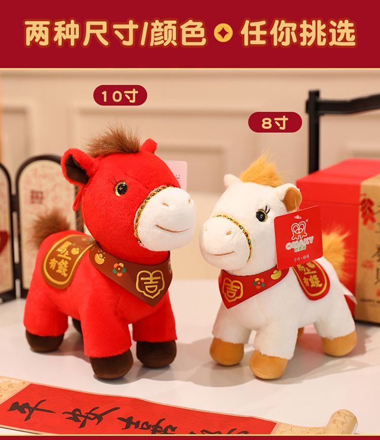 原創可愛2026馬年吉祥物毛絨玩具生肖馬公仔布娃娃馬玩偶年會