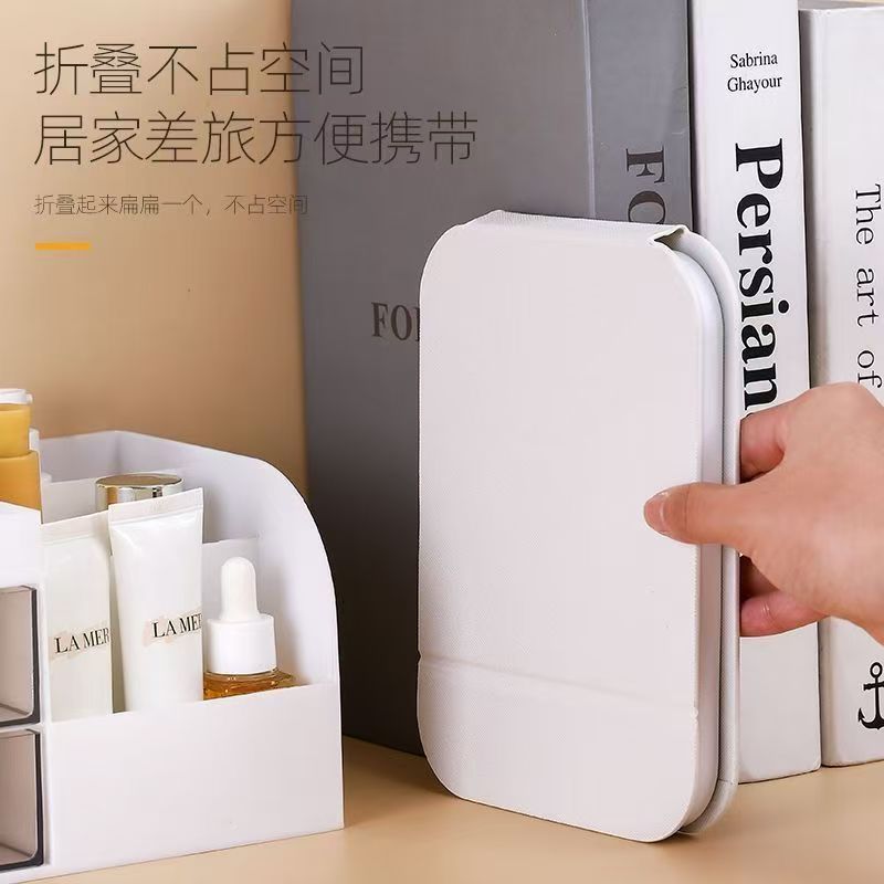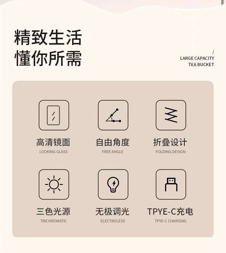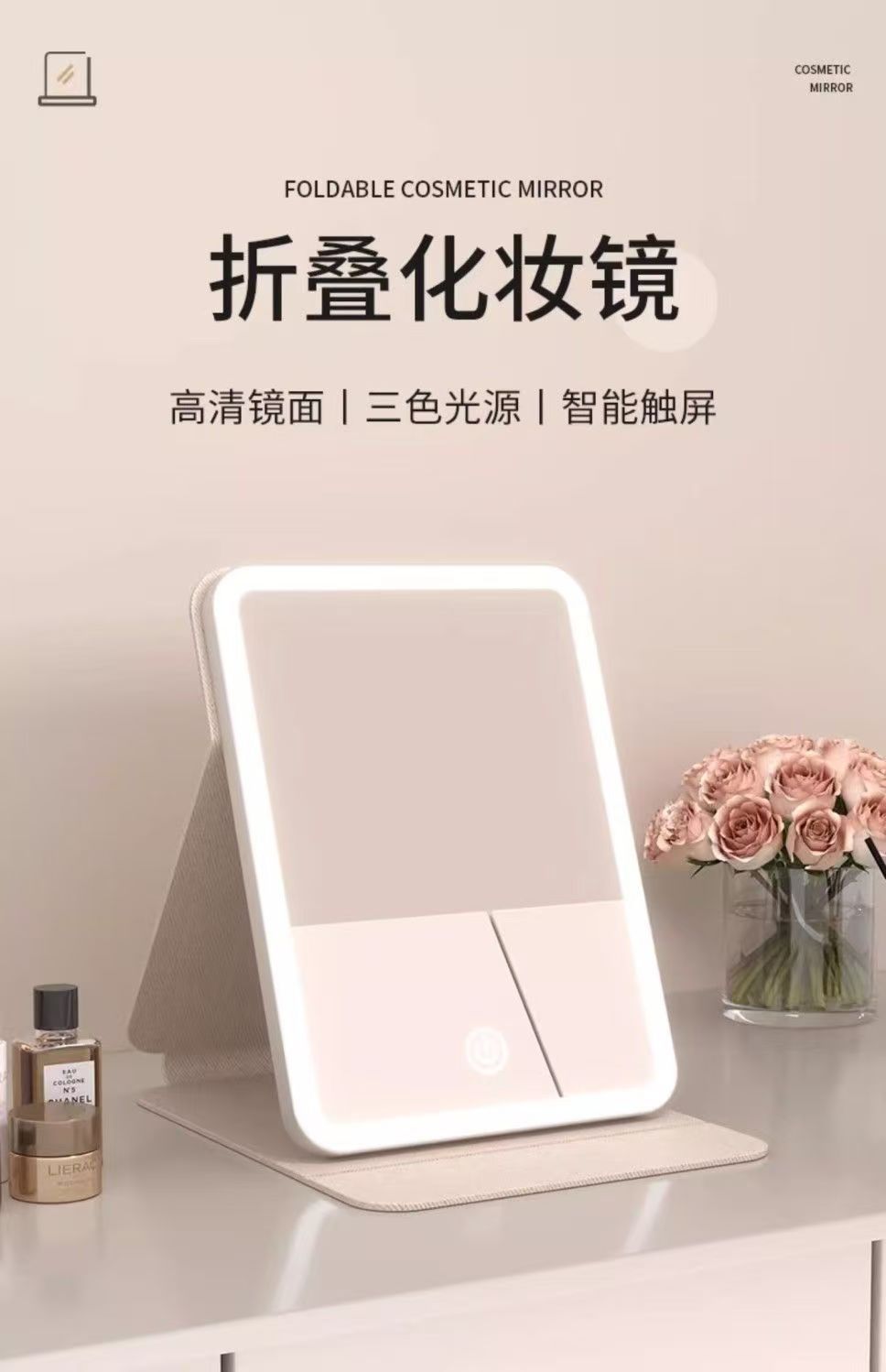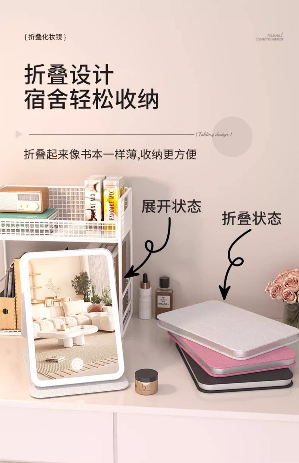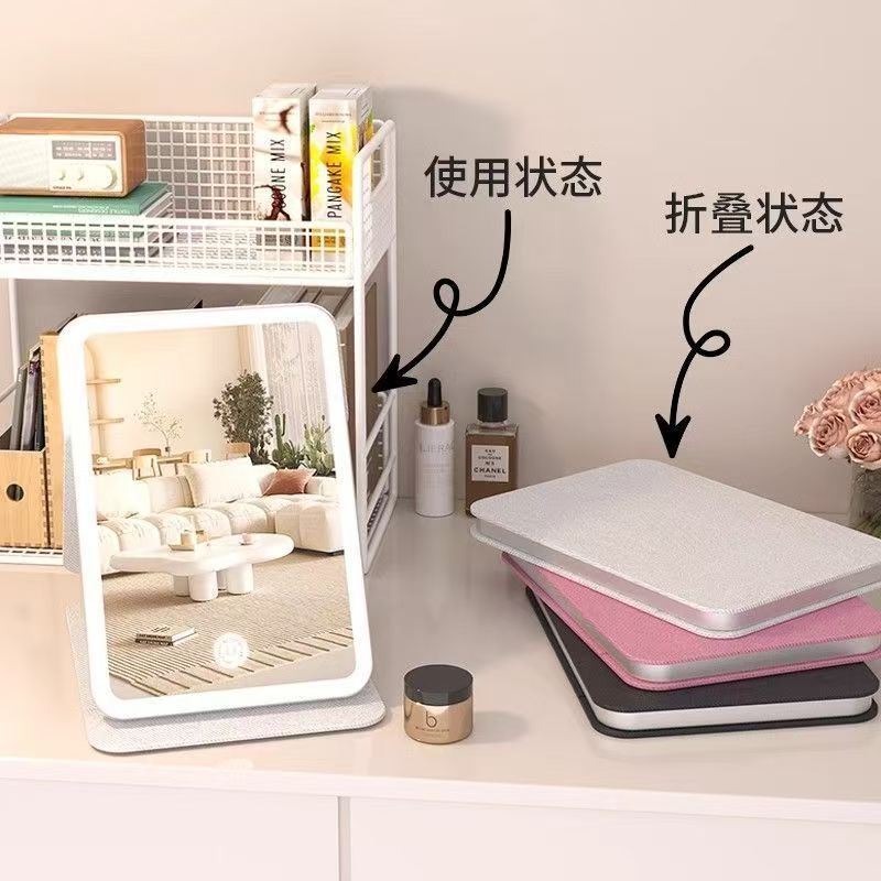 LED化妝鏡帶燈可折曡調光可攜式隨身INS風學生宿捨桌上型桌面鏡新款