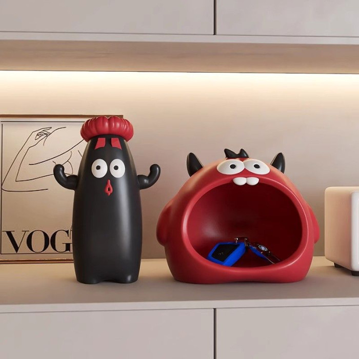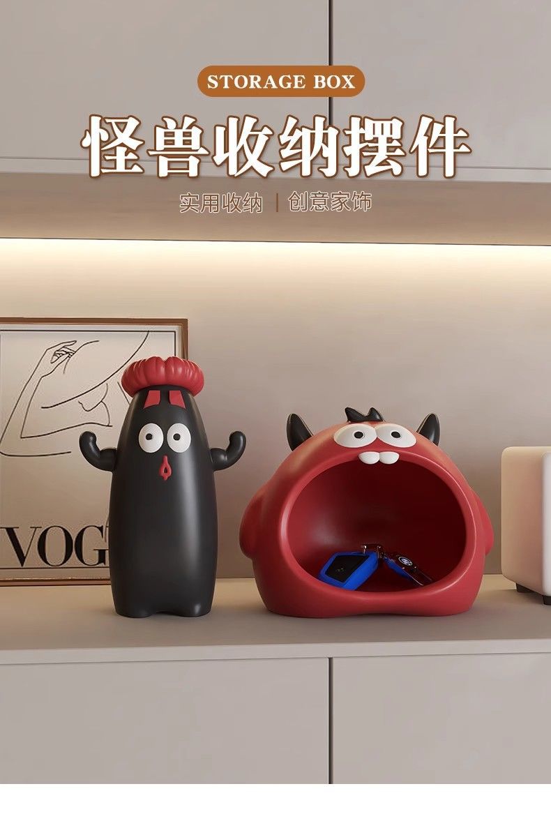 小怪獸入戶門口放鑰匙收納玄關擺件客廳桌面家居軟裝飾品喬遷禮物
