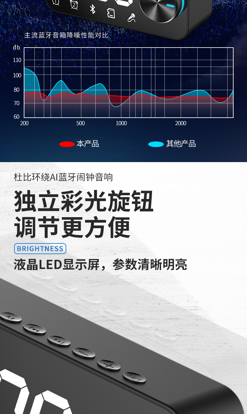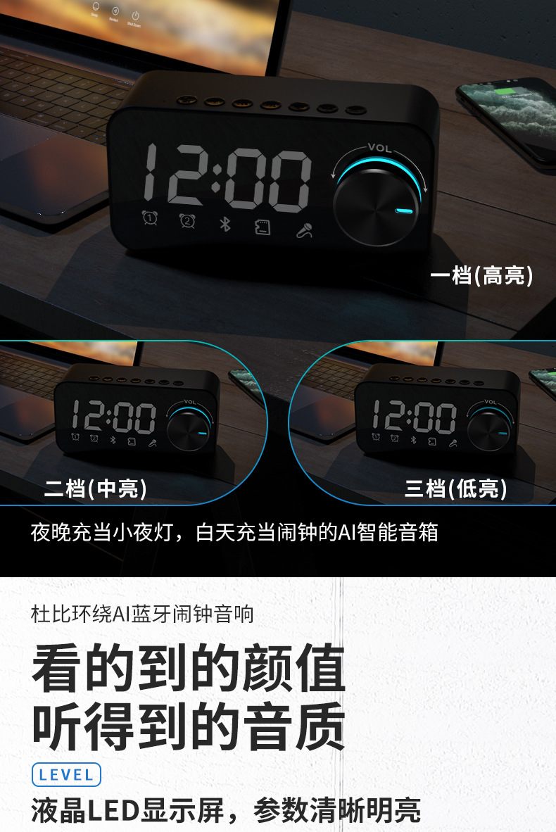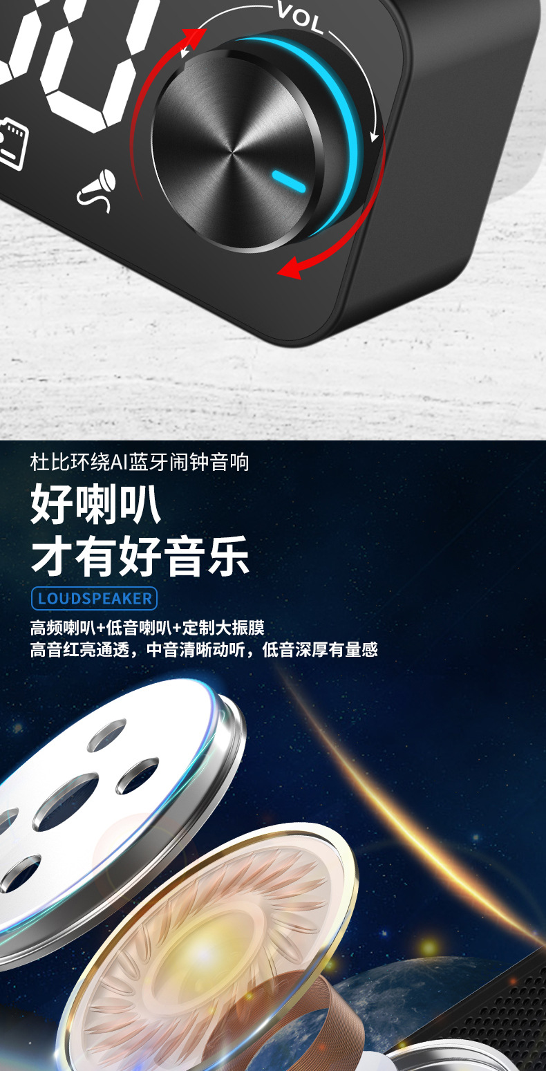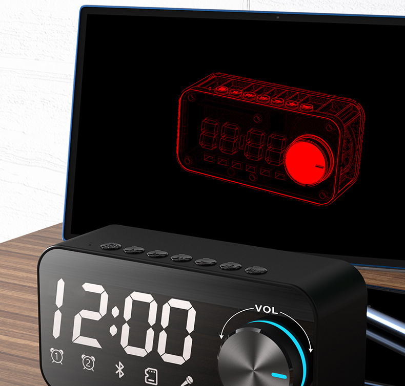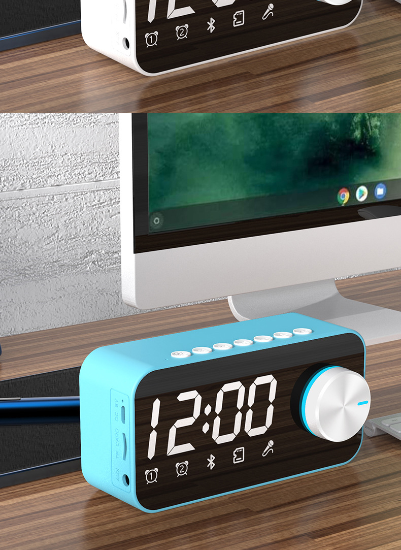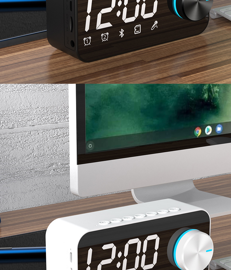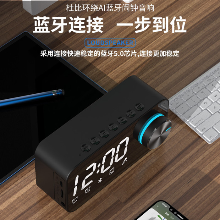 桌面智能閙鍾音響多功能插卡藍牙音箱家用鏡面數字時鐘禮品小音響