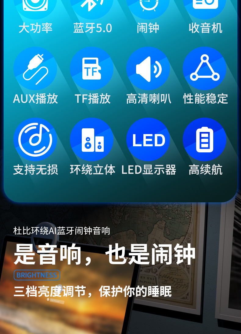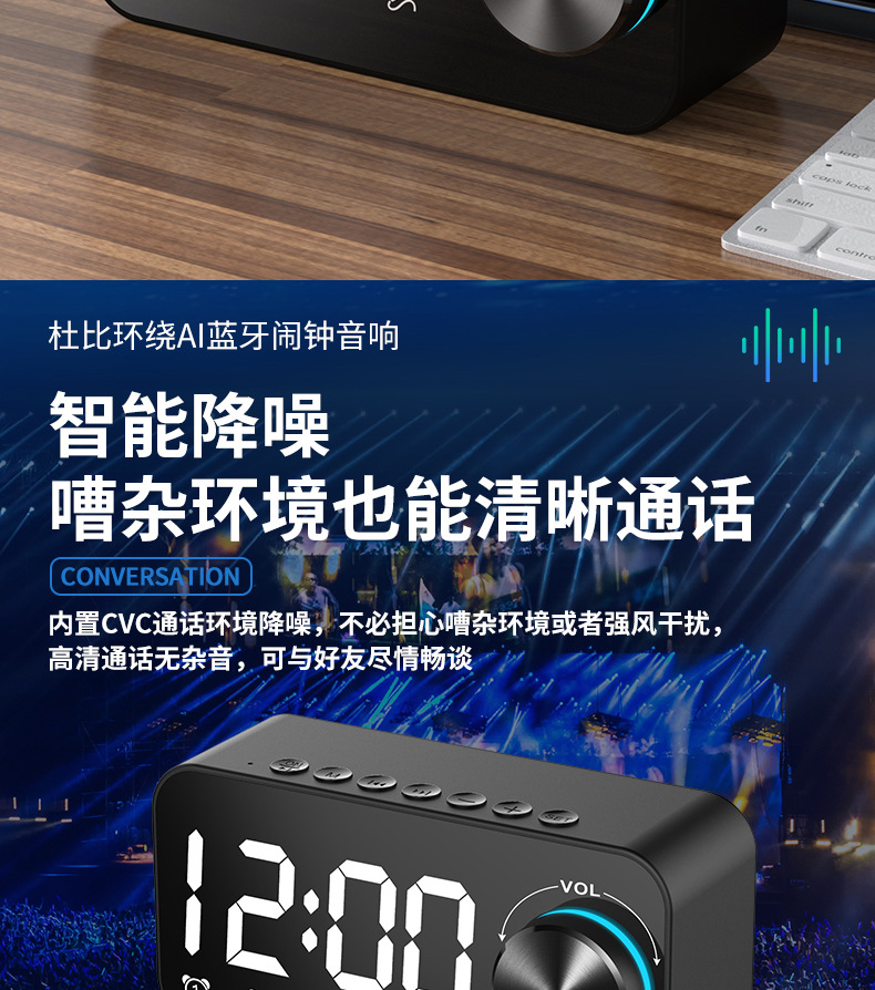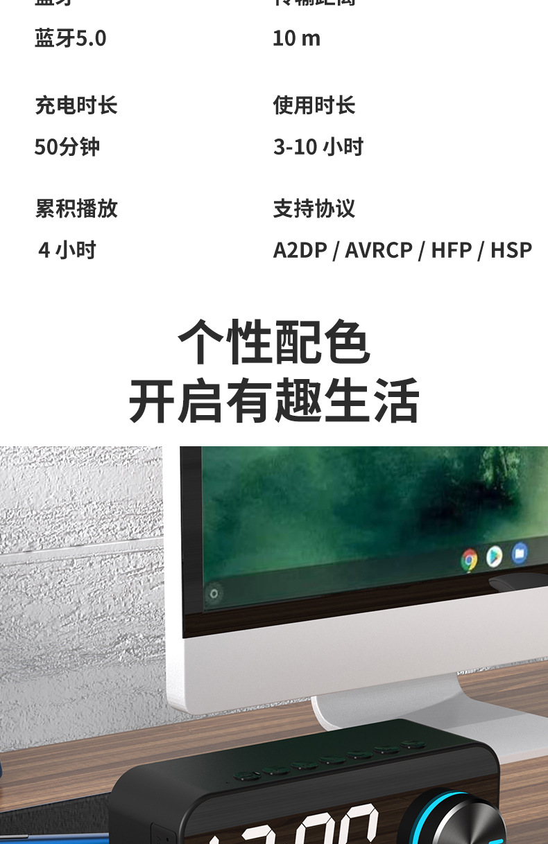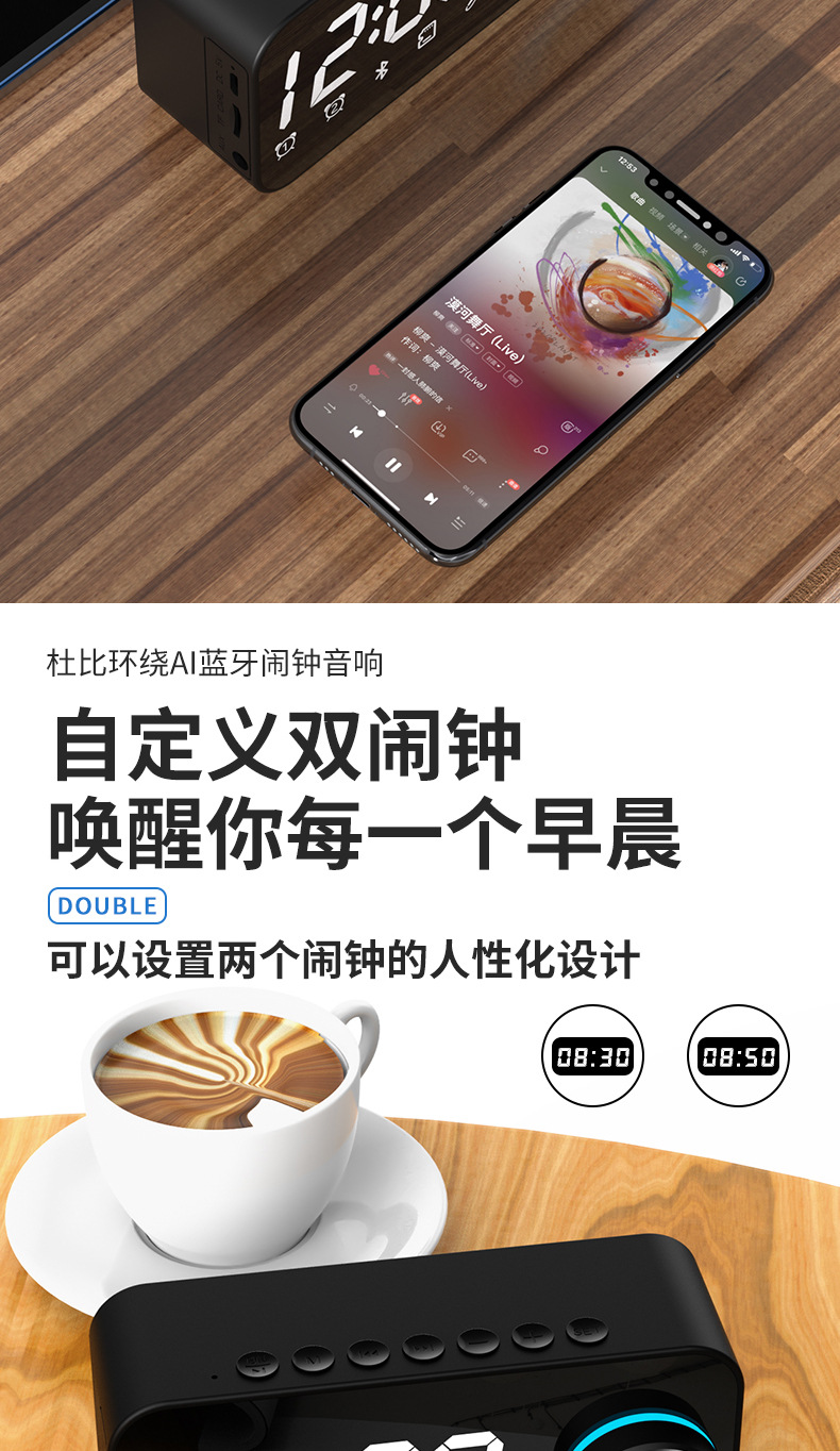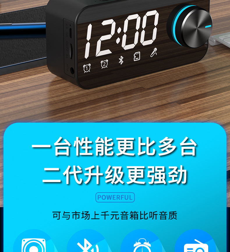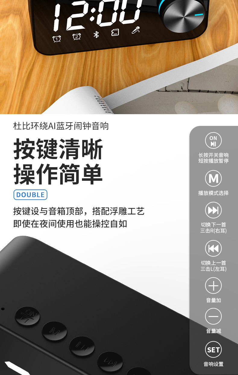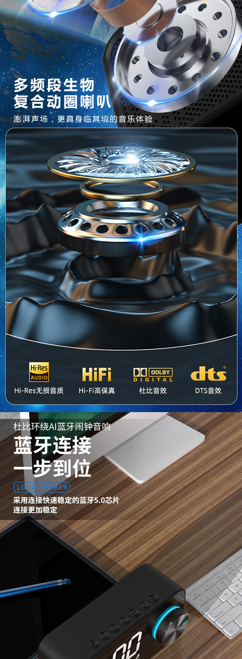 桌面智能閙鍾音響多功能插卡藍牙音箱家用鏡面數字時鐘禮品小音響