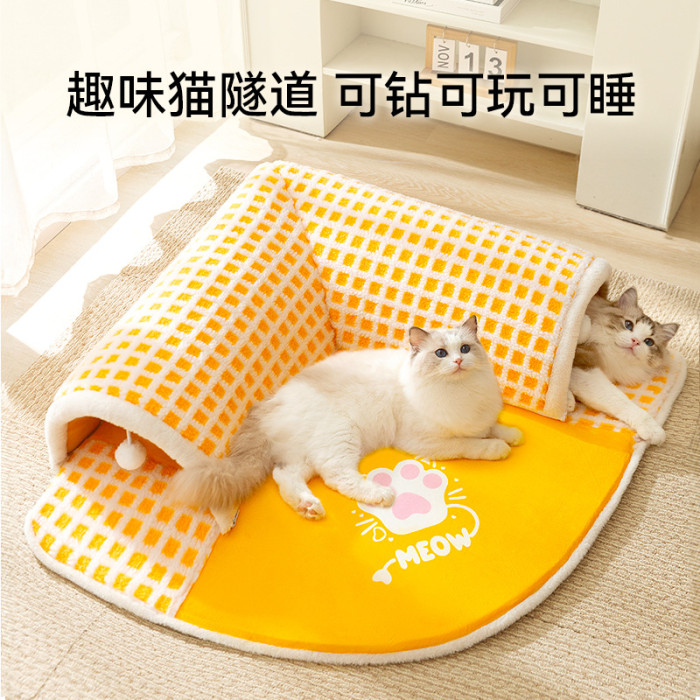 貓咪滾地籠爪爪扇形貓隧道保暖加厚秋冬季貓窩狗窩寵物窩