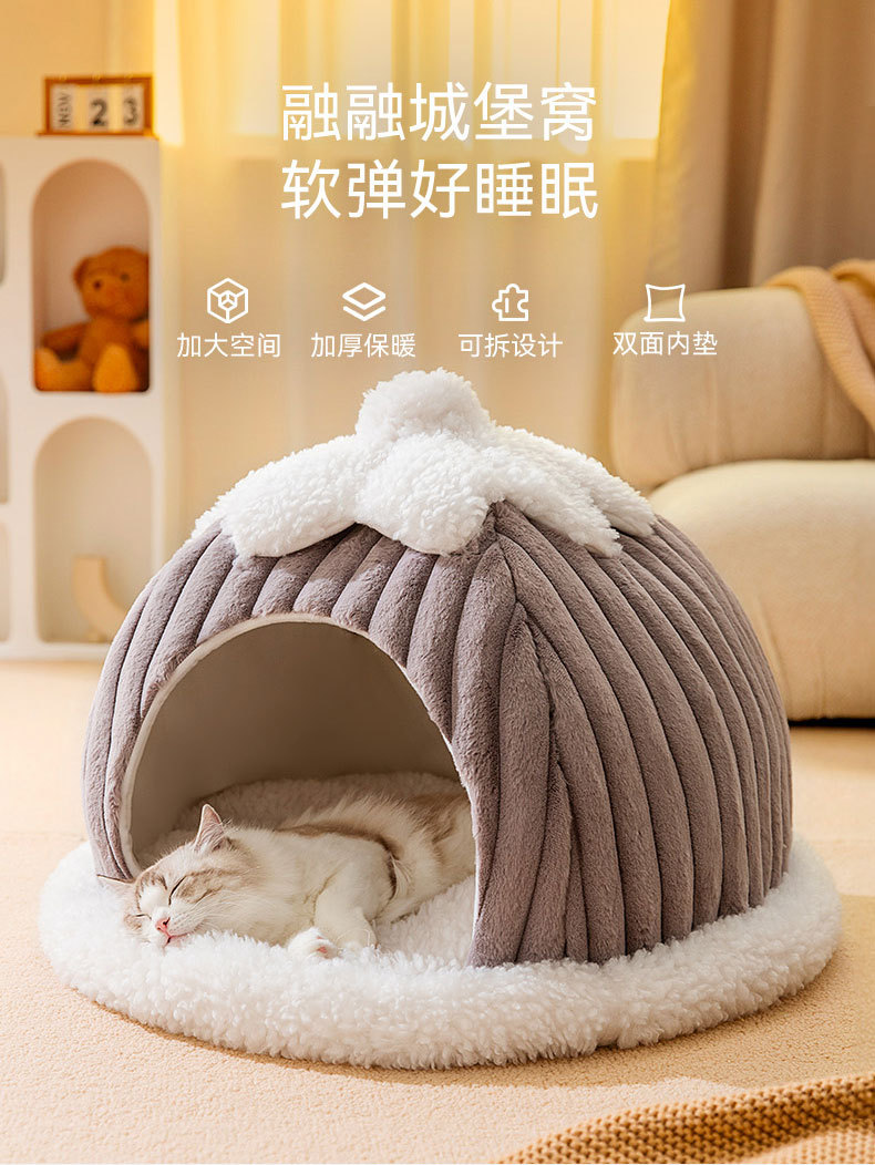 秋冬季貓咪北極雪屋貓窩保暖加厚南瓜窩狗狗封閉式防風寵物房子窩