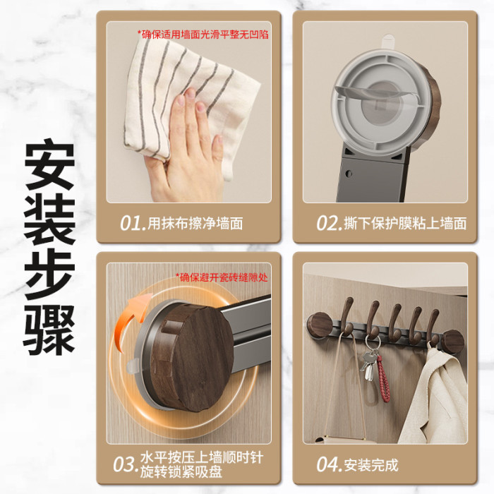 吸盤門後掛鉤胡桃木紋掛衣鉤掛衣架連排鉤無痕強力粘膠貼粘鉤掛勾