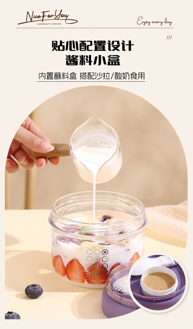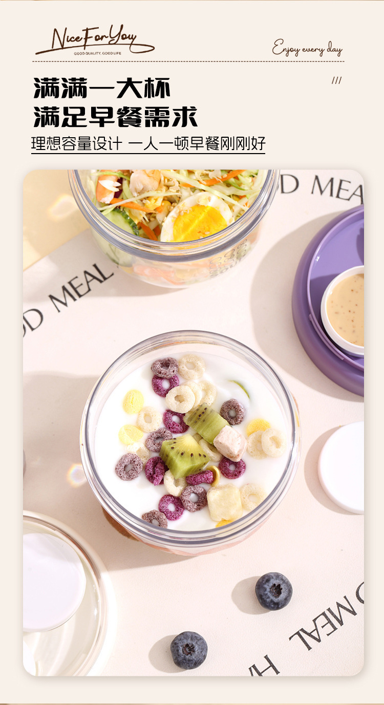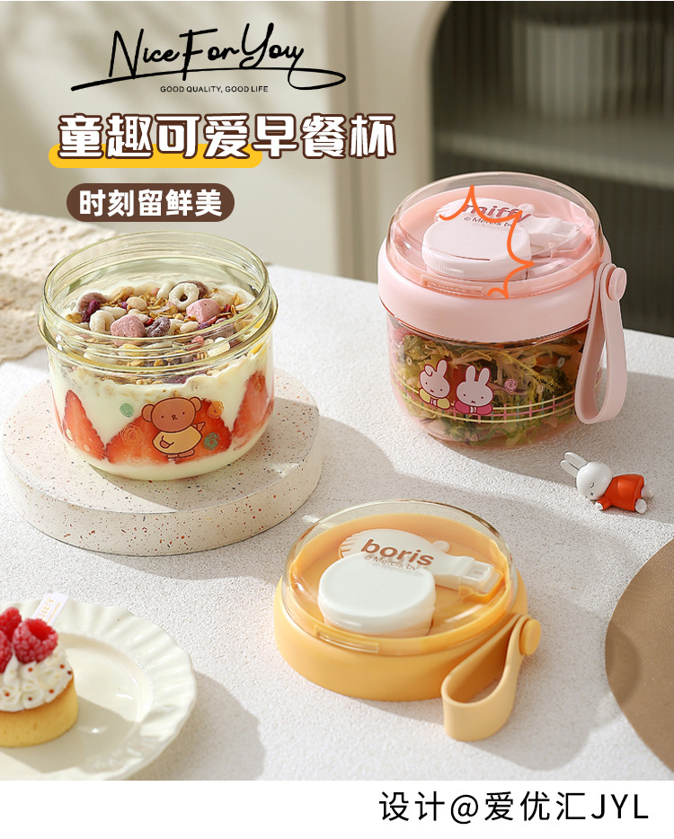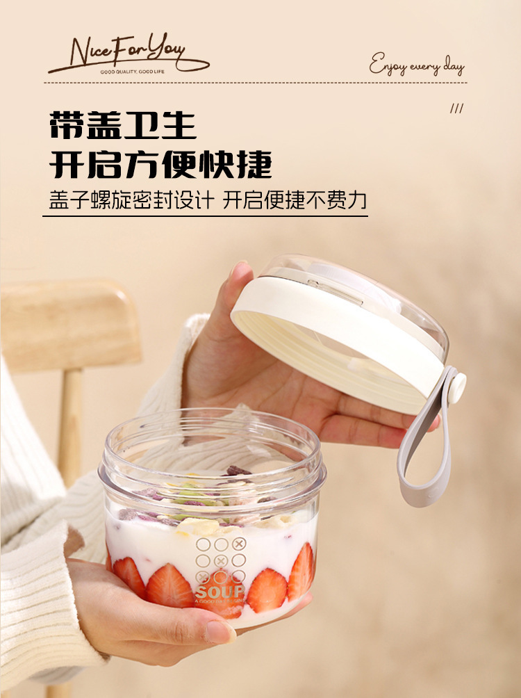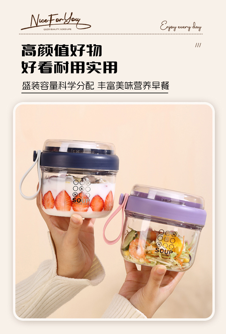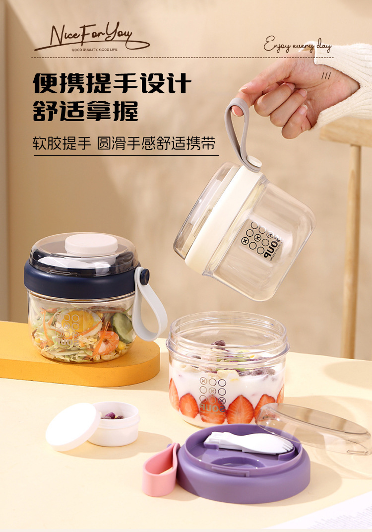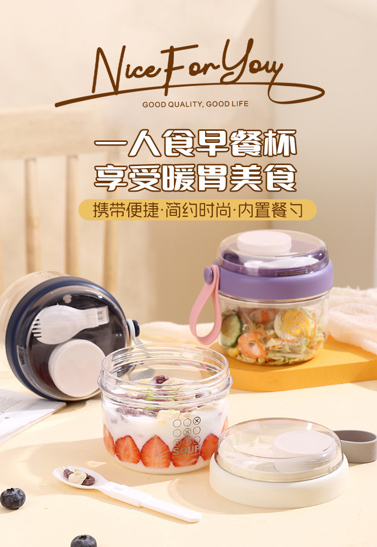 高顔值可攜式早餐杯密封沙拉杯防漏牛奶杯帶蓋勺子軟膠提手