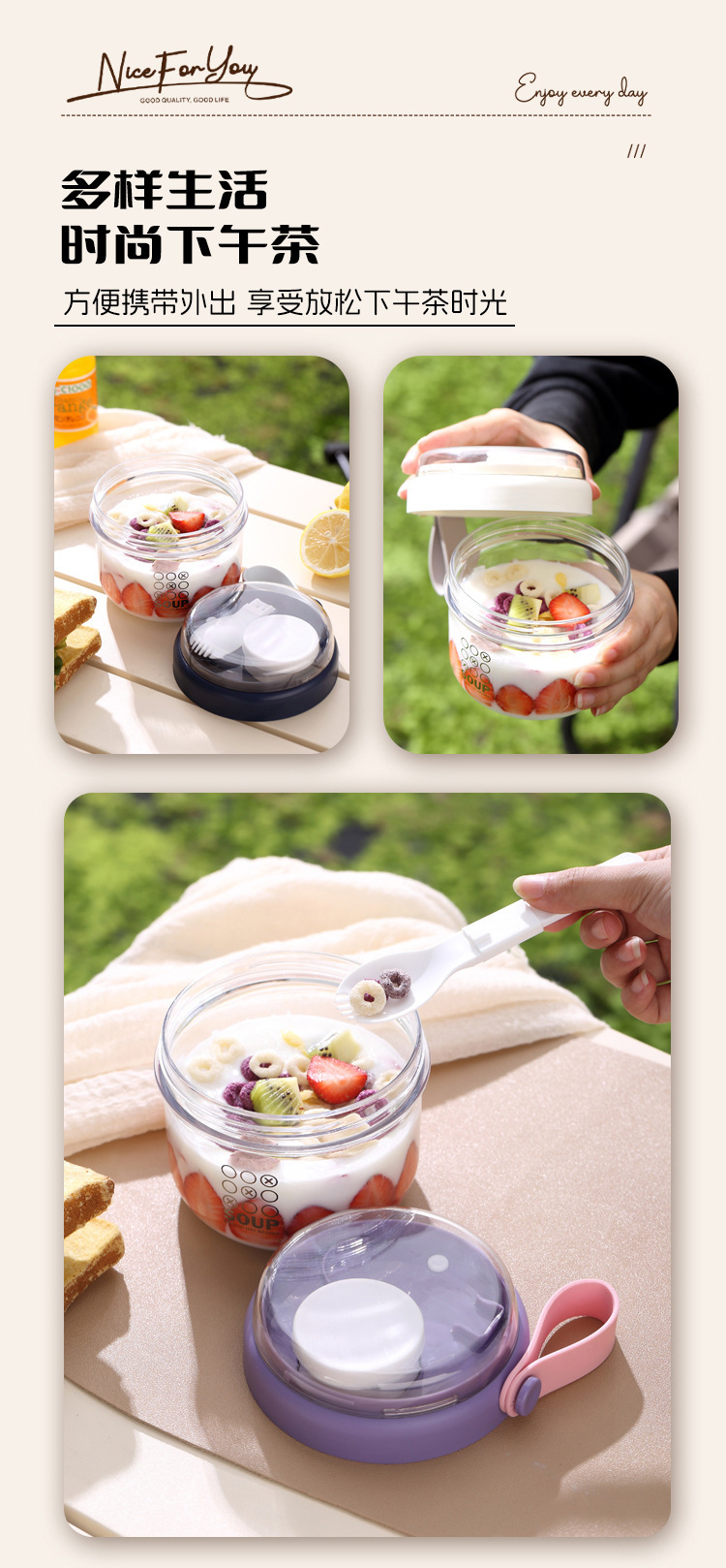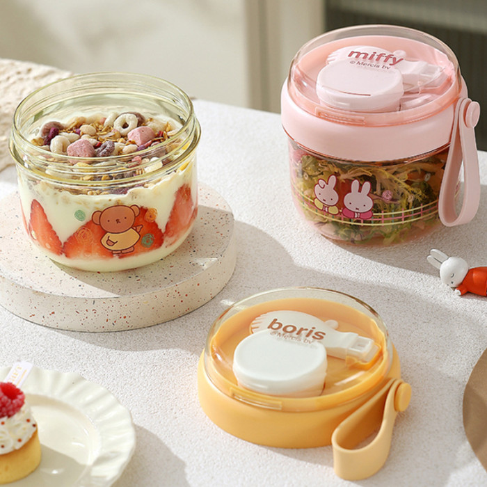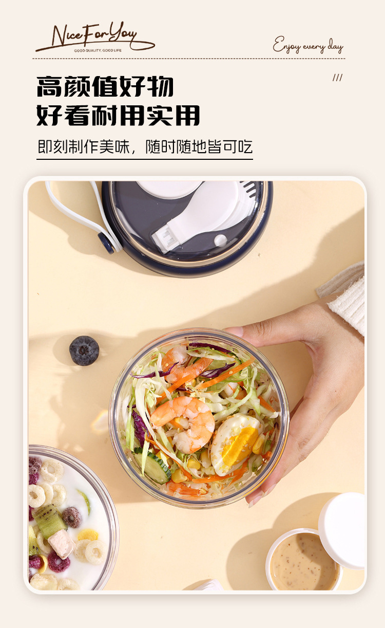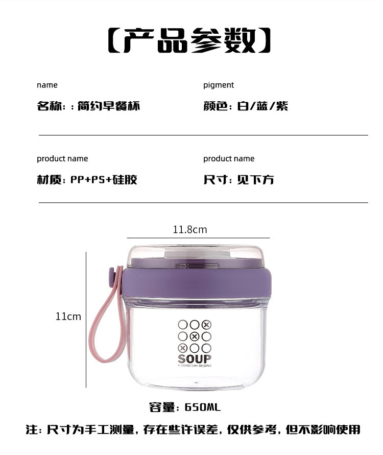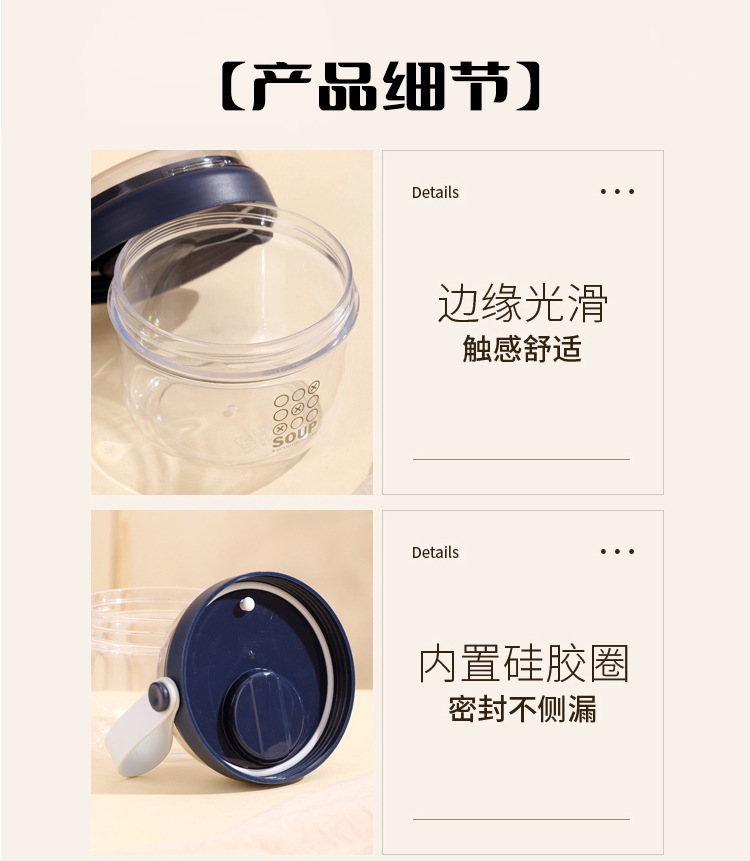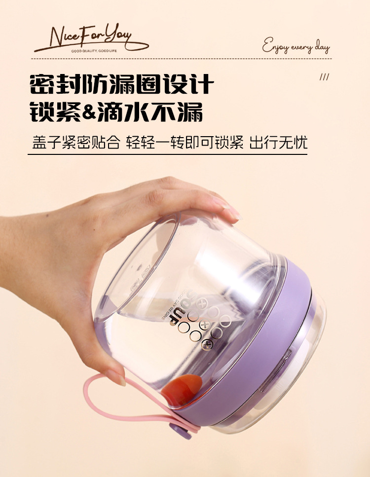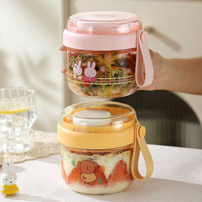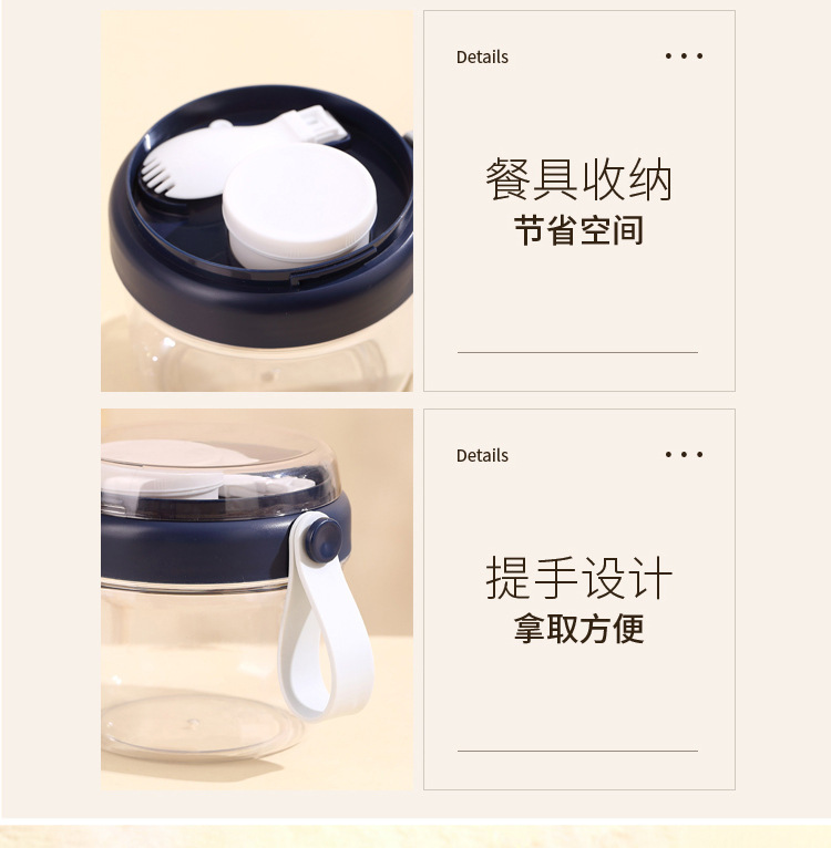高顔值可攜式早餐杯密封沙拉杯防漏牛奶杯帶蓋勺子軟膠提手