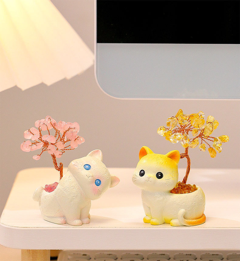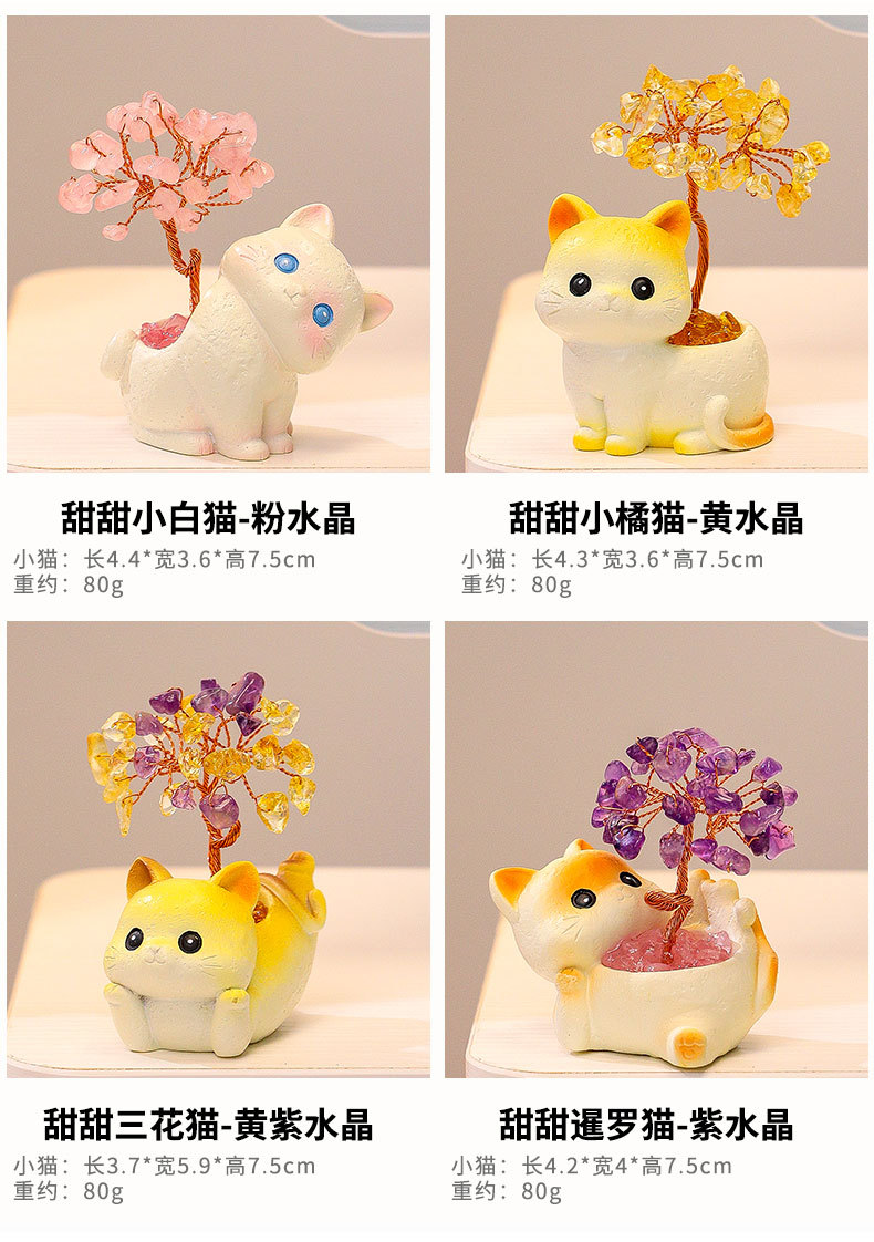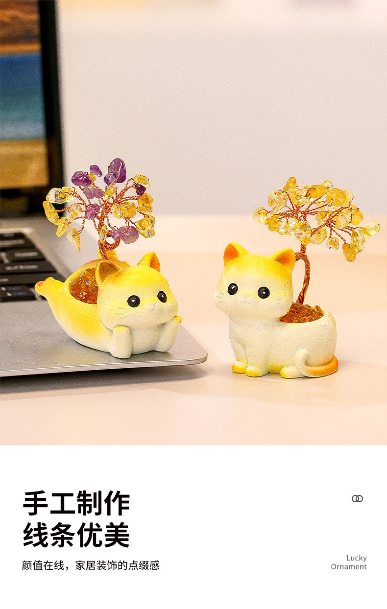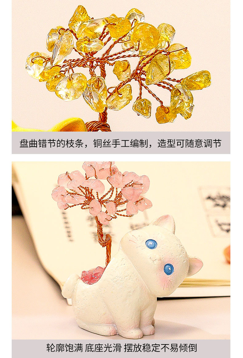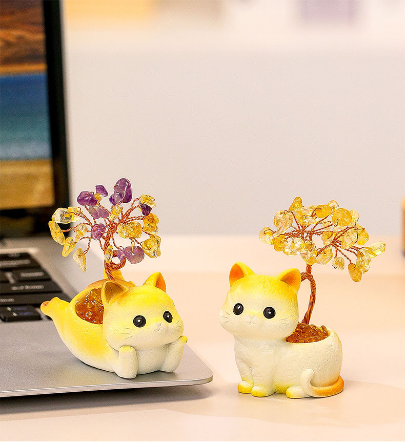 貓貓水晶原石黃紫水晶樹辦公桌面擺件汽車裝飾卡通可愛好運禮物禮
