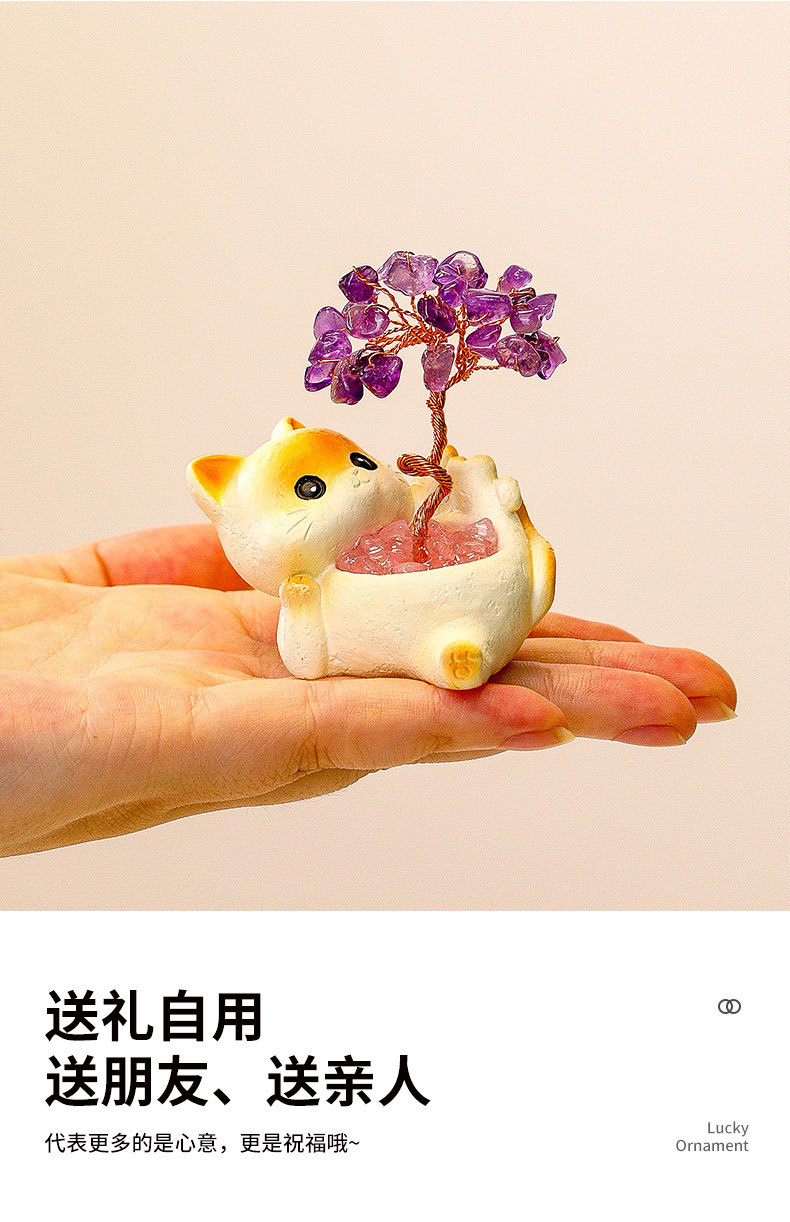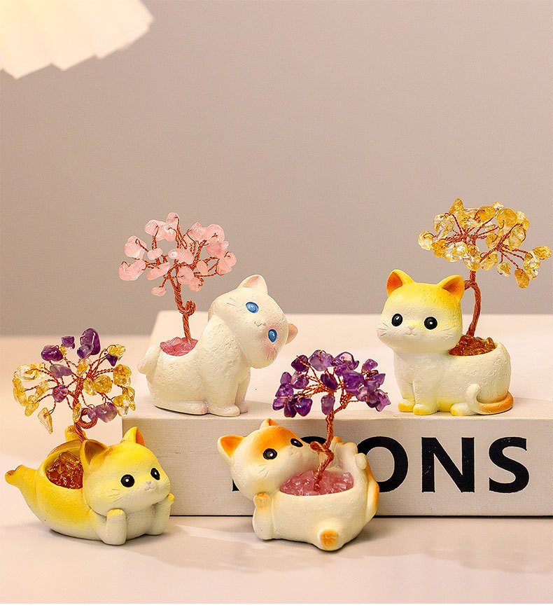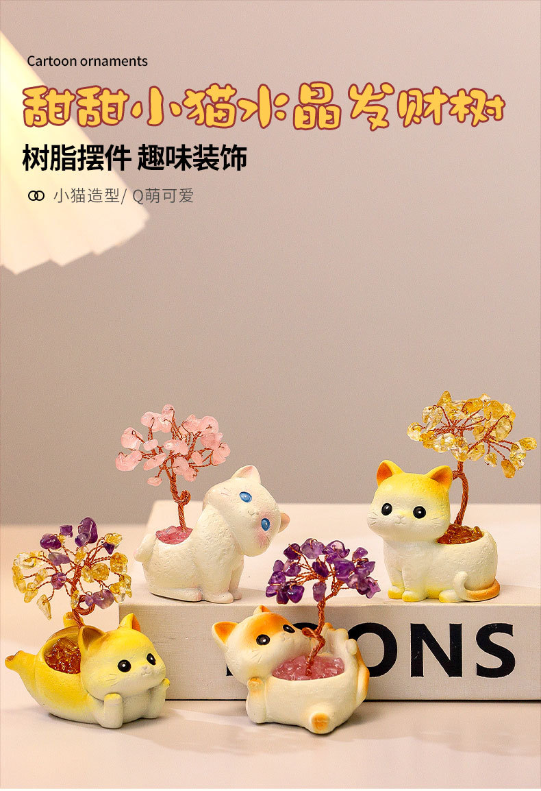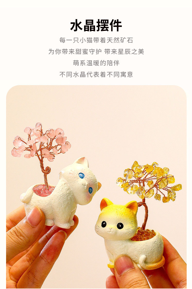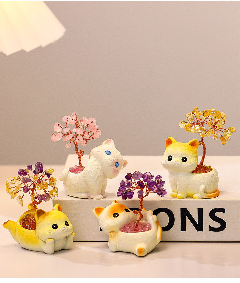 貓貓水晶原石黃紫水晶樹辦公桌面擺件汽車裝飾卡通可愛好運禮物禮