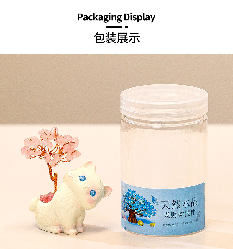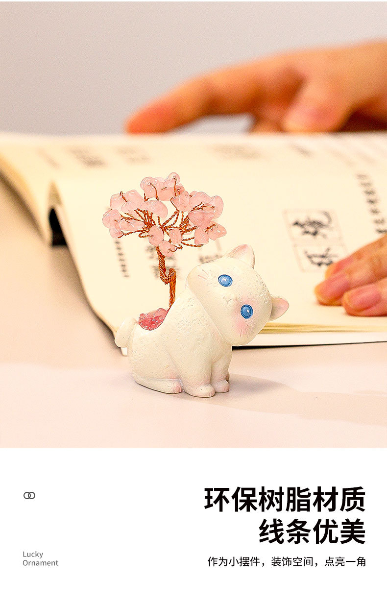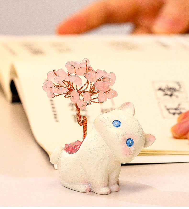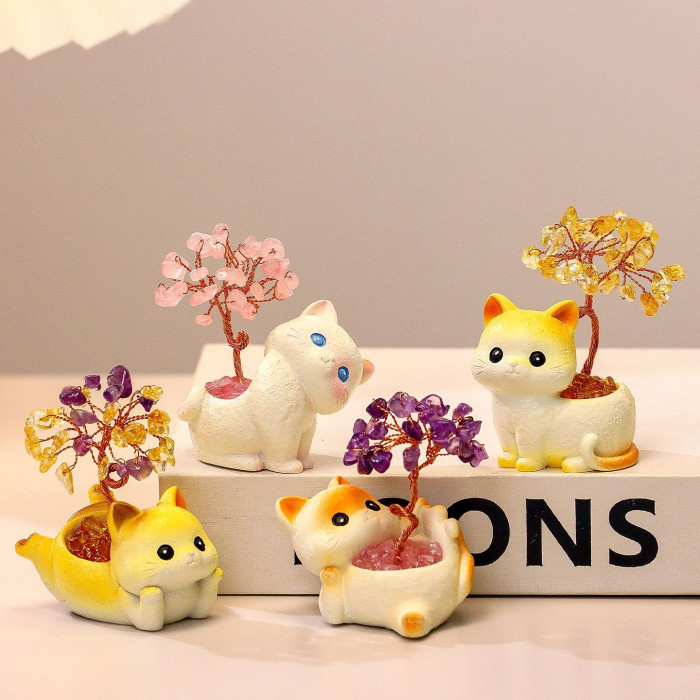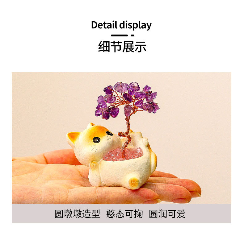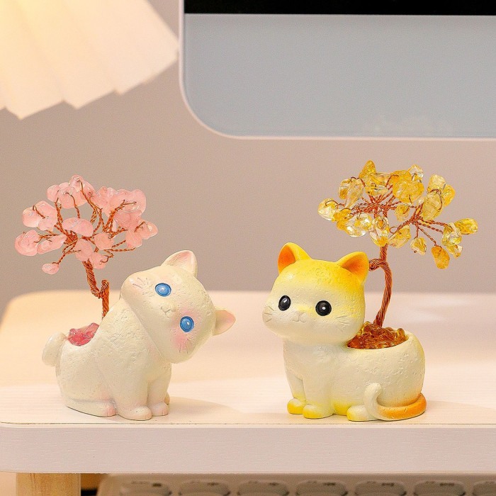 貓貓水晶原石黃紫水晶樹辦公桌面擺件汽車裝飾卡通可愛好運禮物禮
