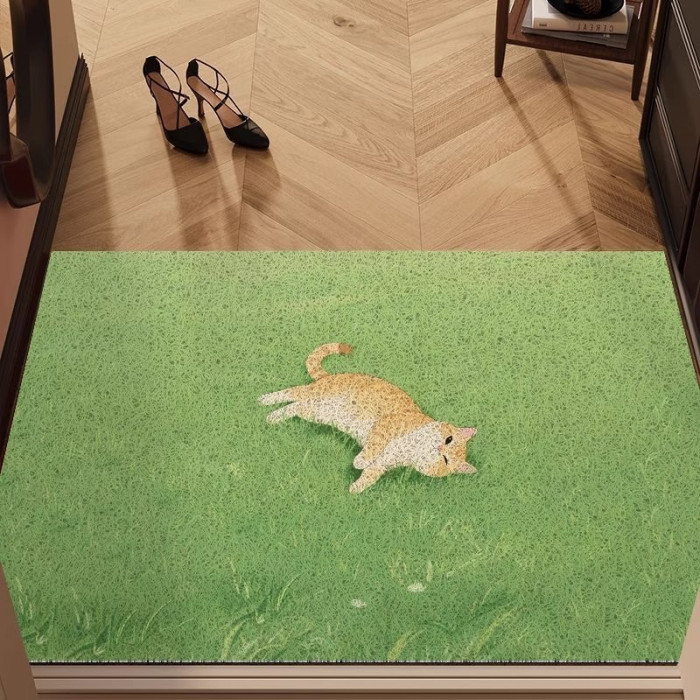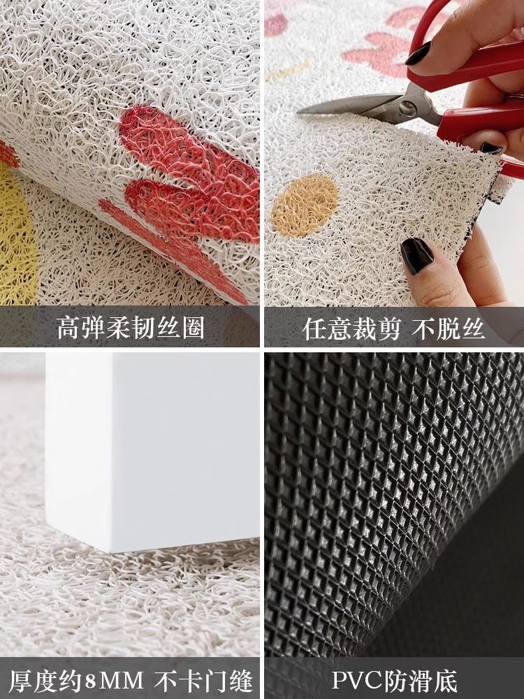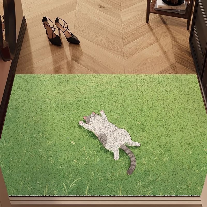 卡通貓咪治瘉系入戶地墊絲圈腳墊玄關除塵地墊大門口防滑墊可裁剪