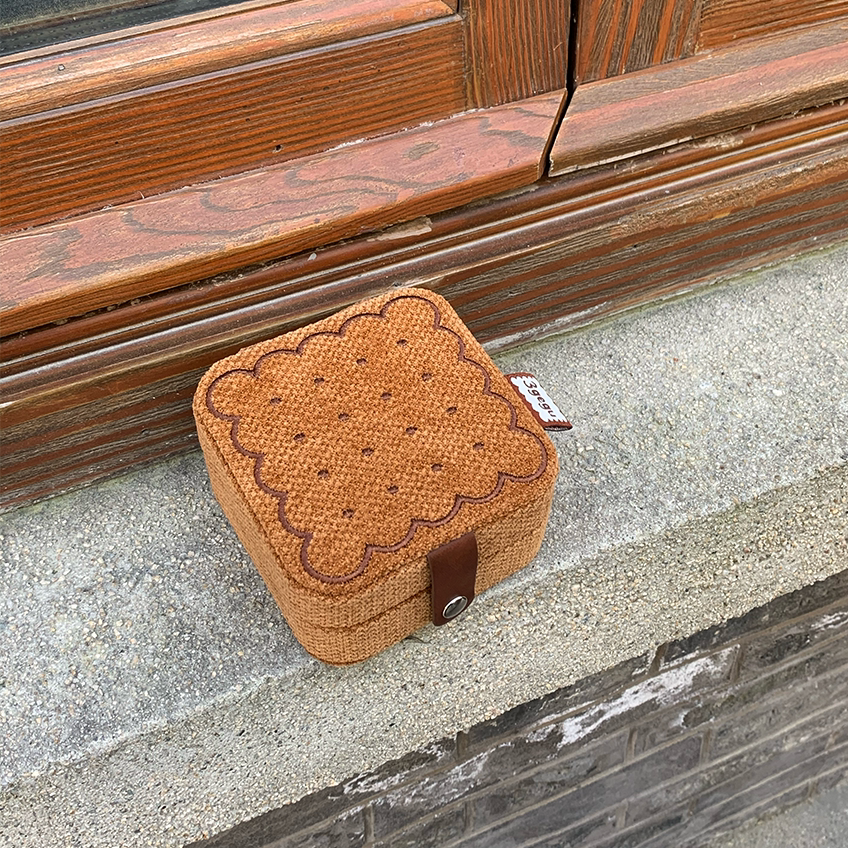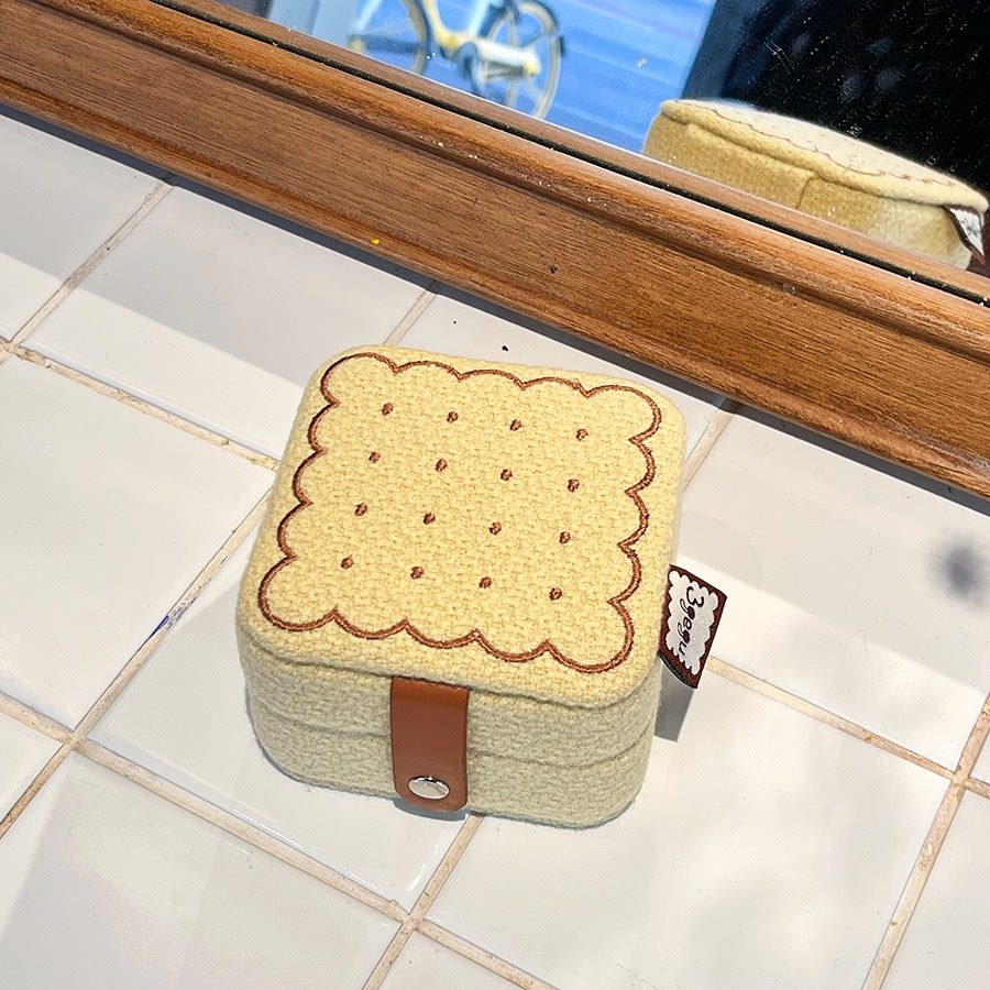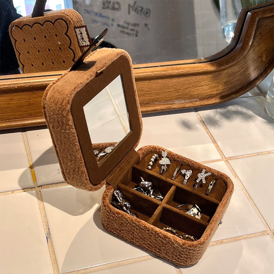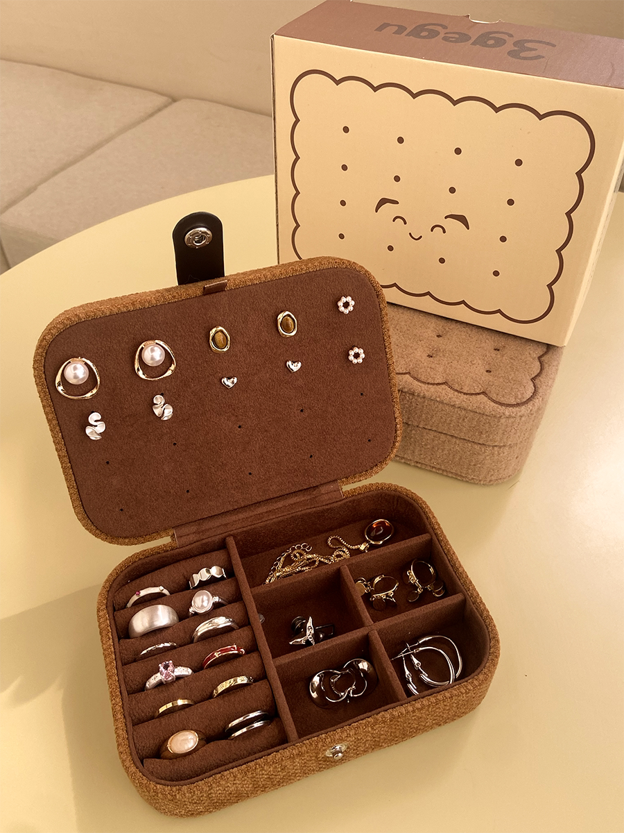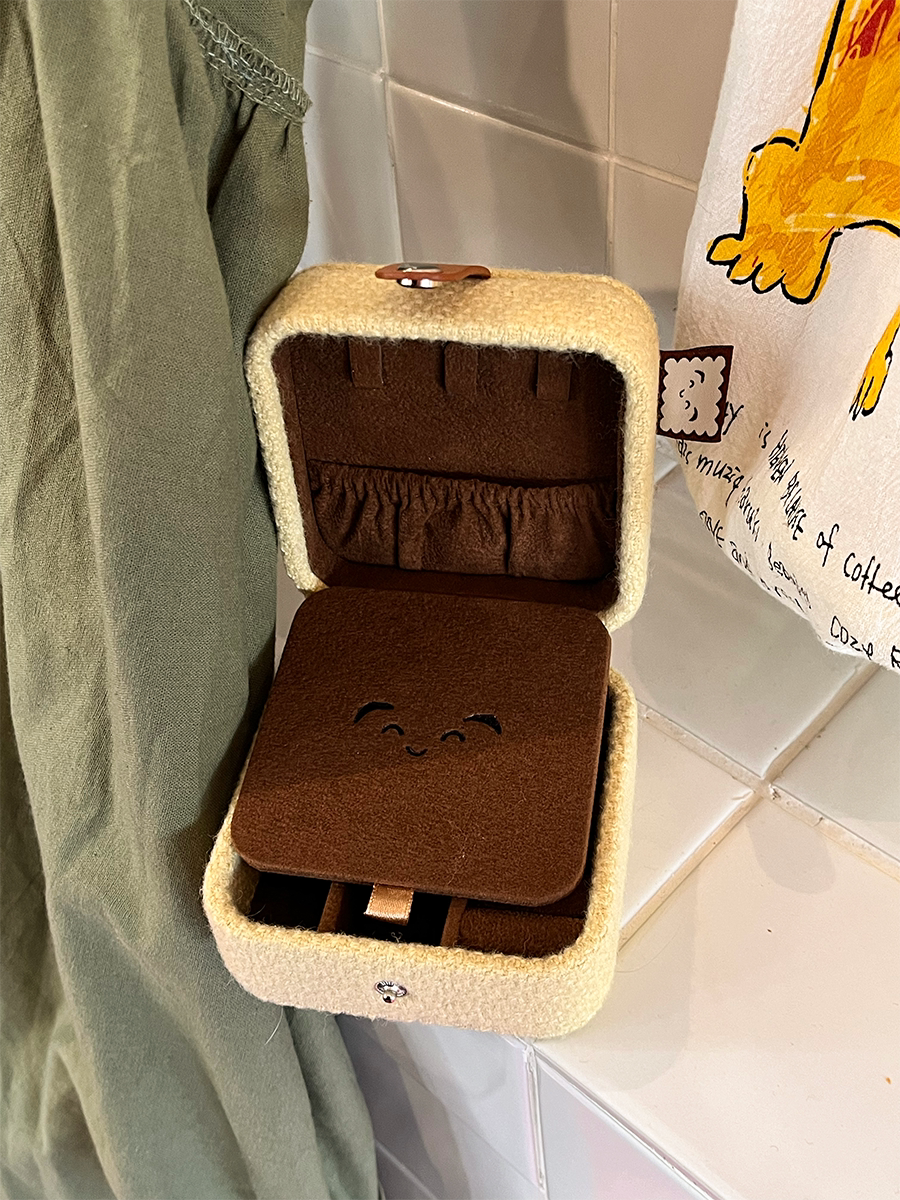 3gegu三個菇開心餅乾首飾盒原創可愛可攜式收納盒子旅行禮物首飾盒