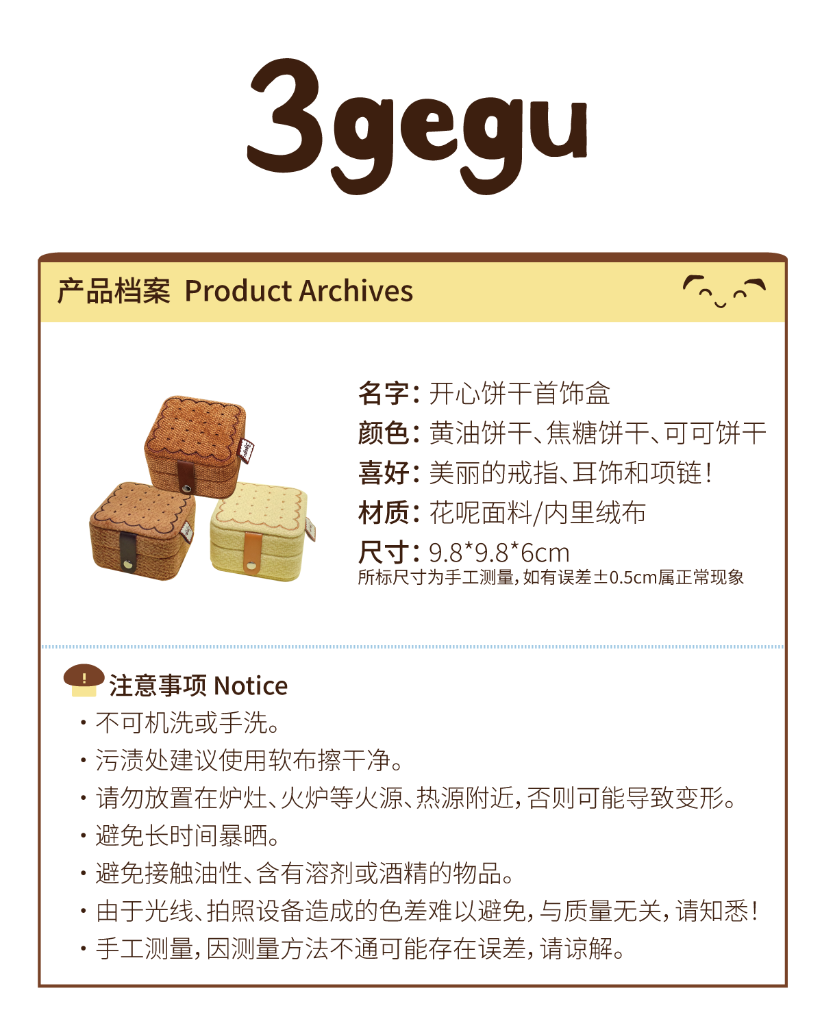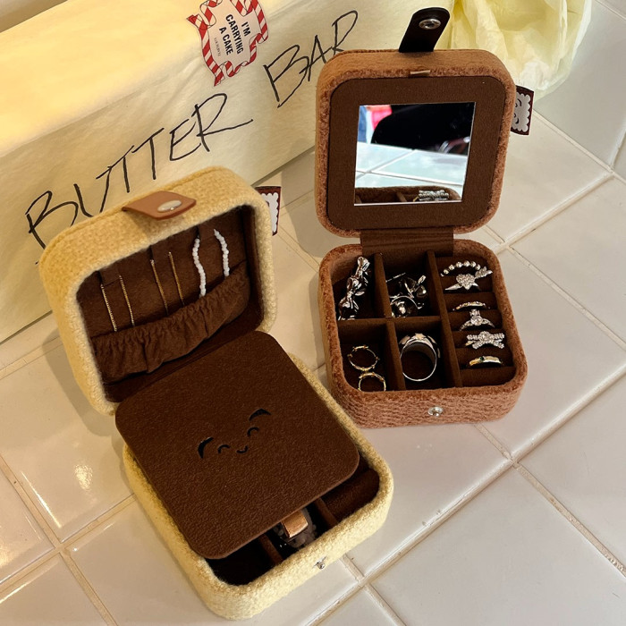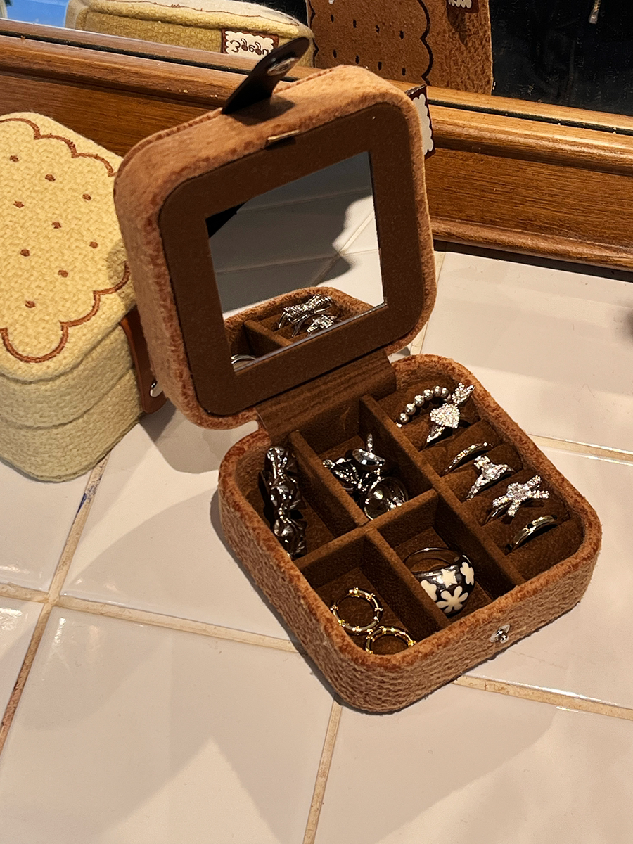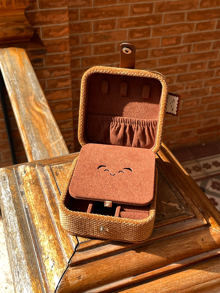 3gegu三個菇開心餅乾首飾盒原創可愛可攜式收納盒子旅行禮物首飾盒