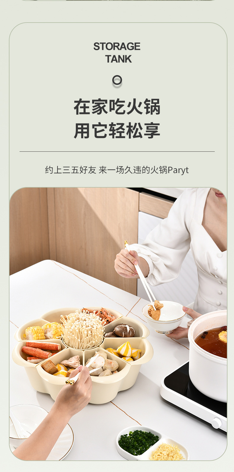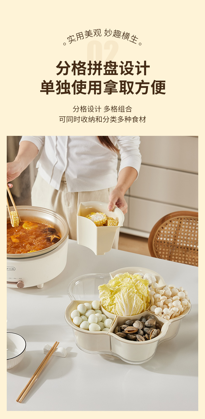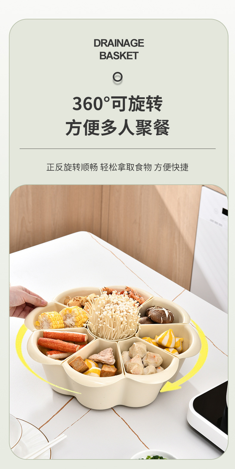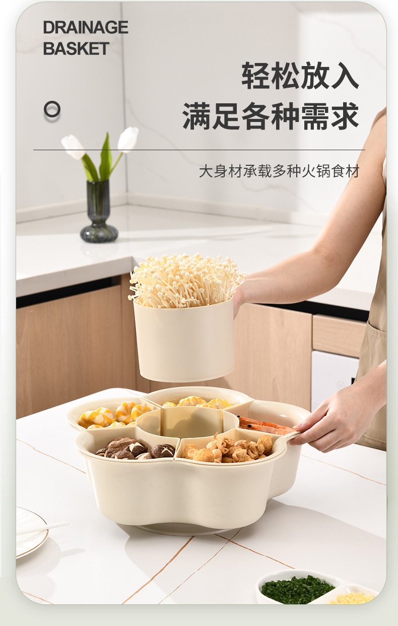 分格旋轉火鍋蔬菜雙層拼盤洗菜盆瀝水籃創意多功能備菜配菜盤家用