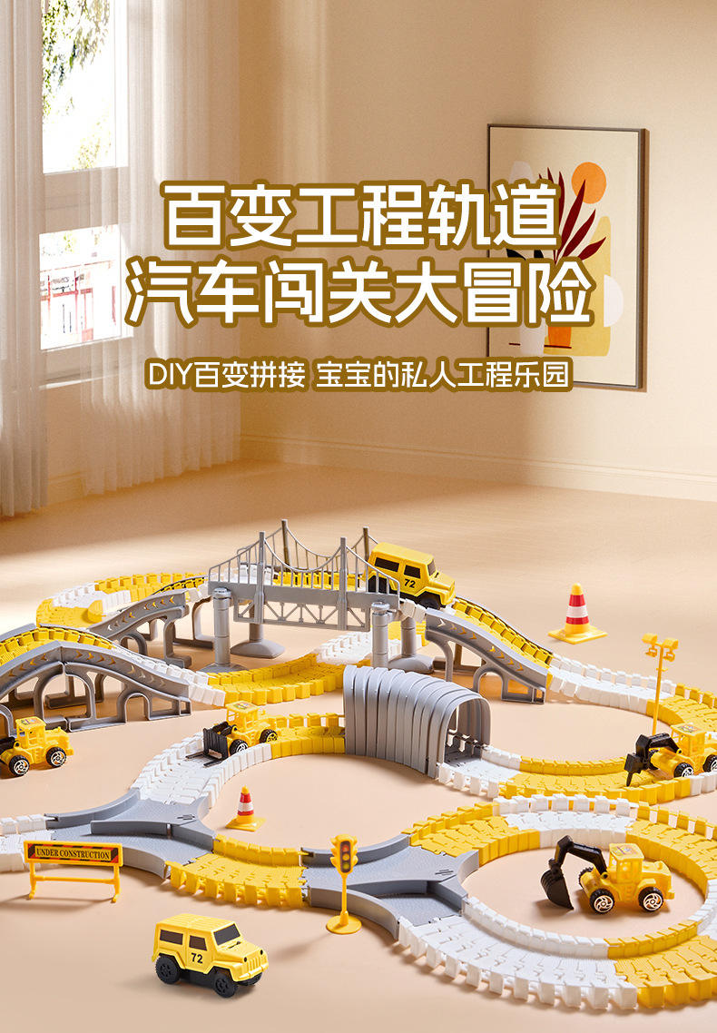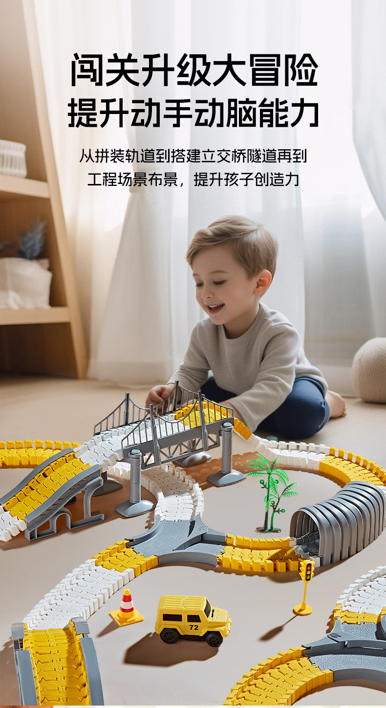 百變diy拼裝軌道工程車兒童電動益智玩具套裝男女孩夜市擺攤