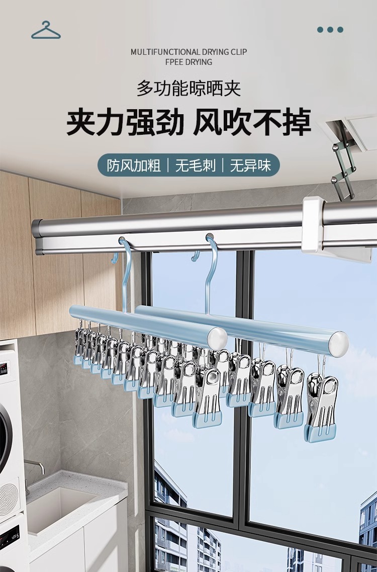 襪子晾曬架多夾子晾衣架不鏽鋼一字夾衣架家用陽台曬內衣內褲神器