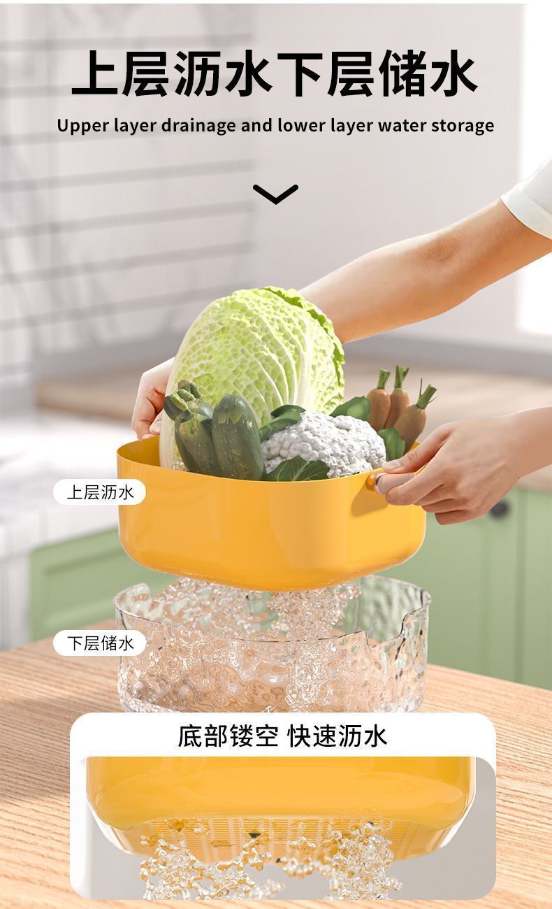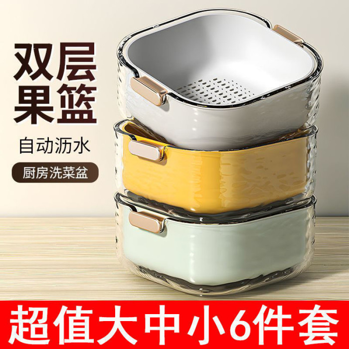 雙層洗菜盆瀝水籃新款廚房多功能水果籃高顔值水果盤客廳