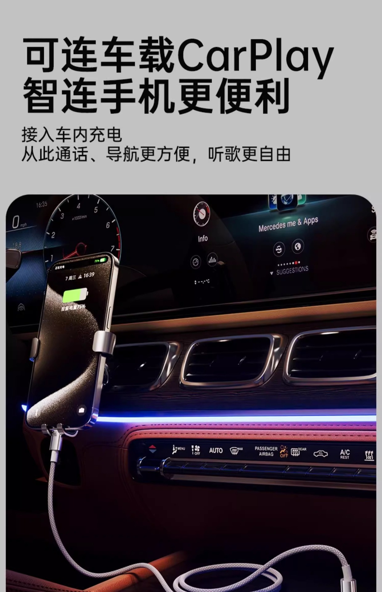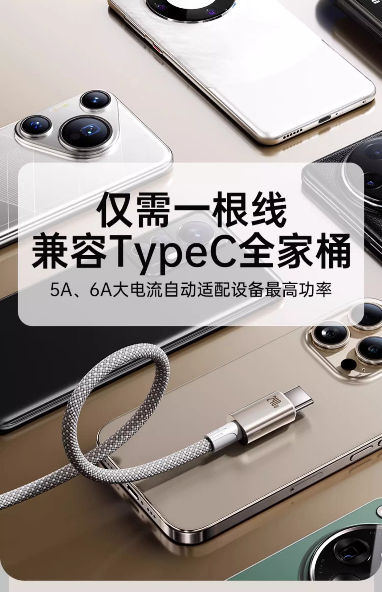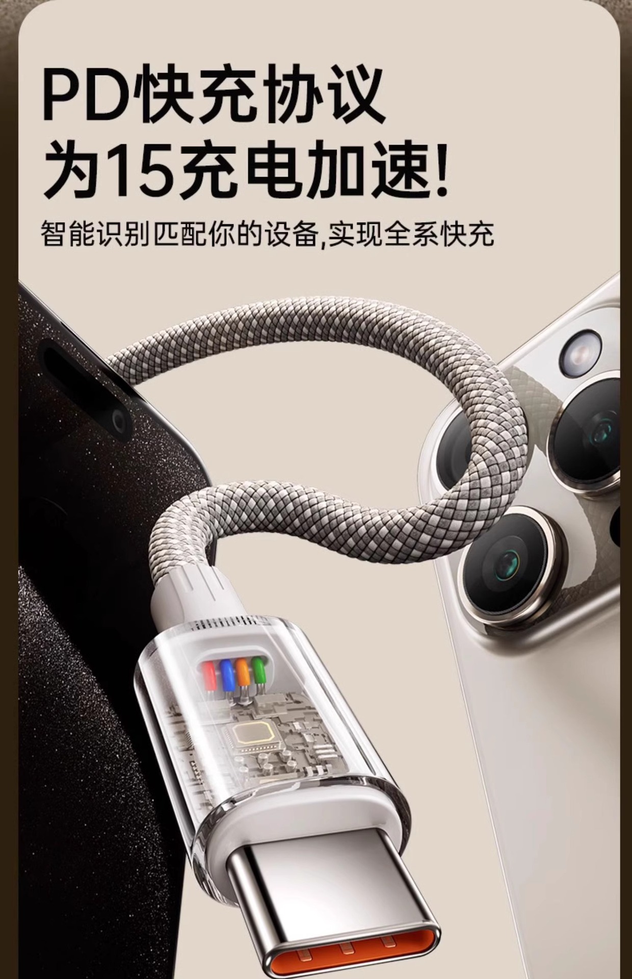 雙頭Type-C數據線100w超級快充適用於蘋果15華爲車用平板充電線