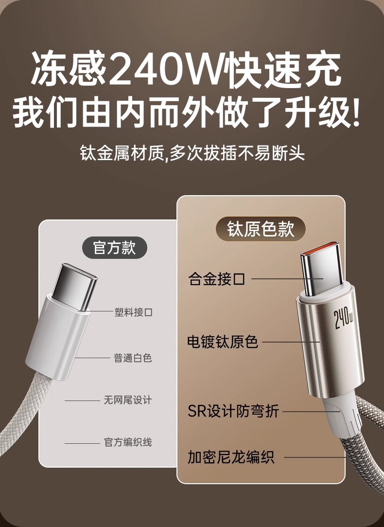 | 型號 | 銀色【雙Type-C】240W快充線 |