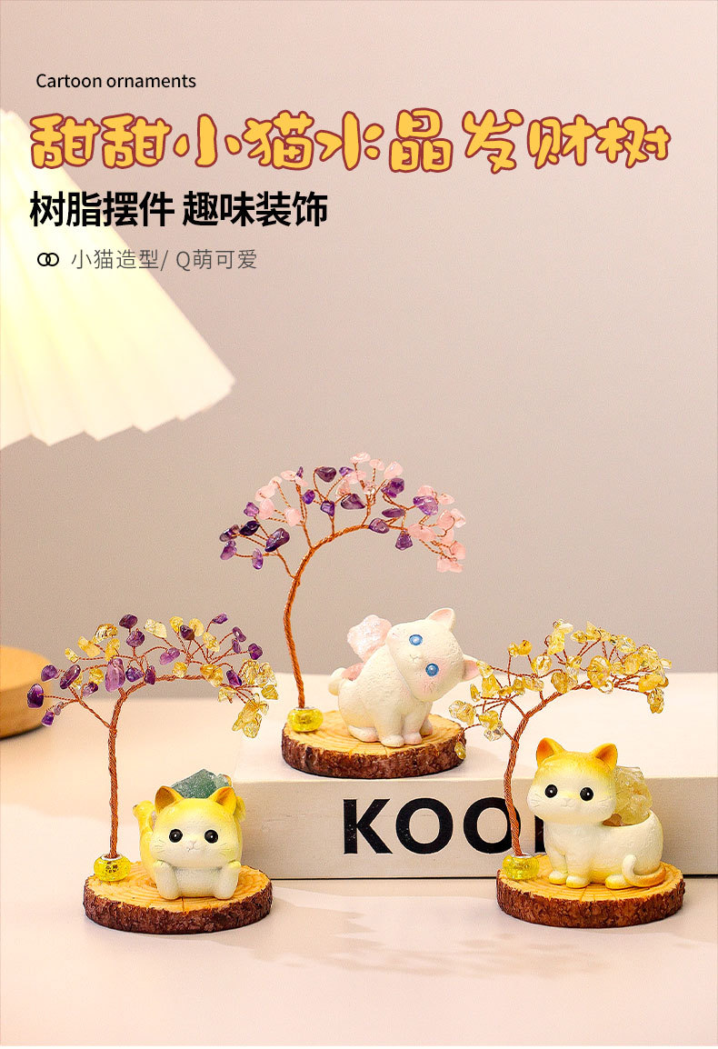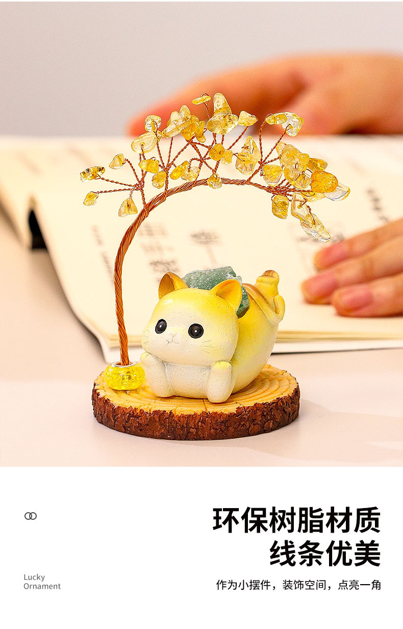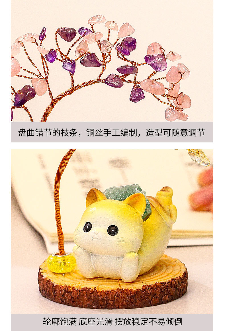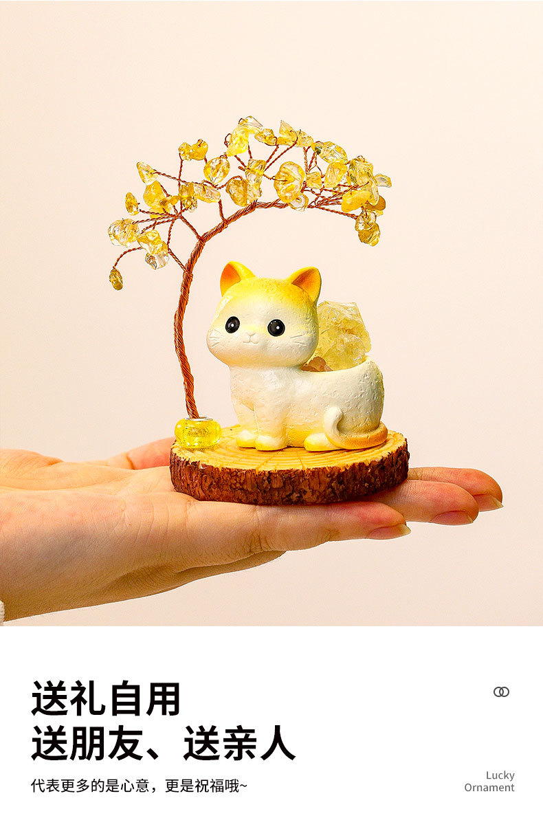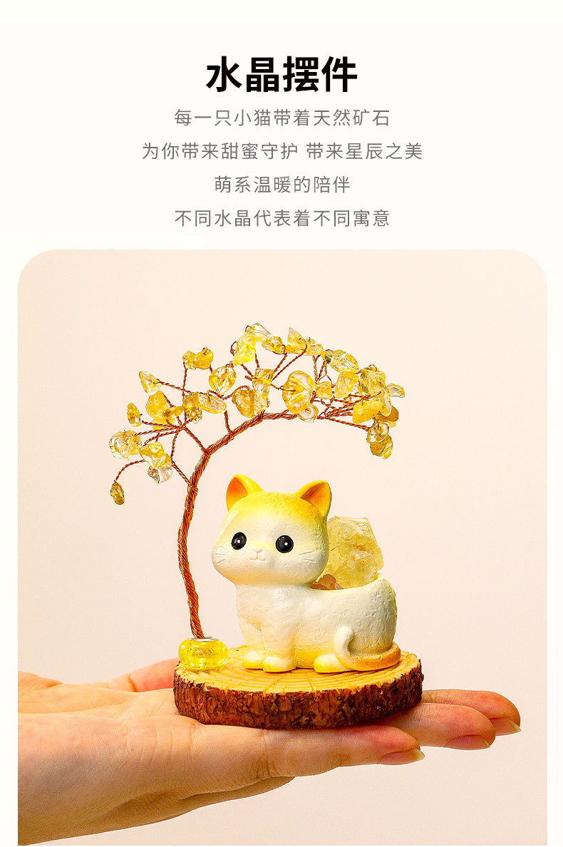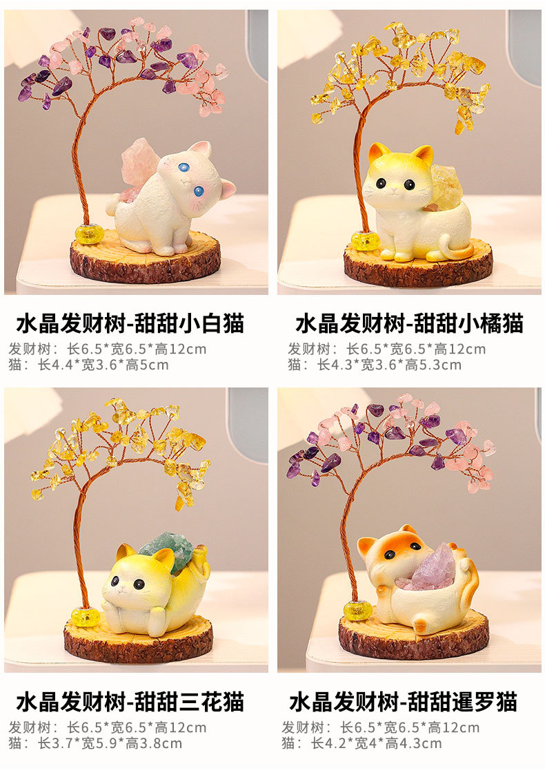 好運貓貓水晶發財樹甜甜小貓天然水晶原石擴香石工位擺件創意禮品
