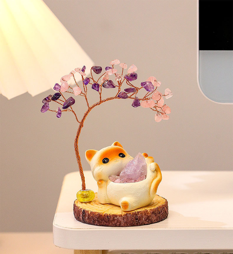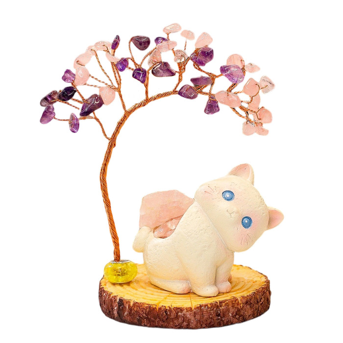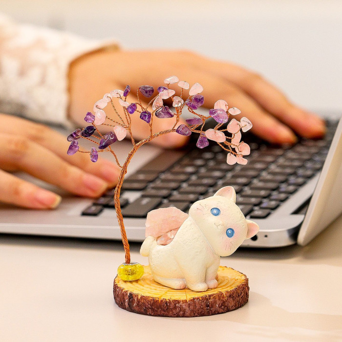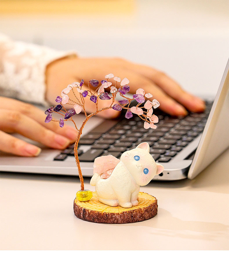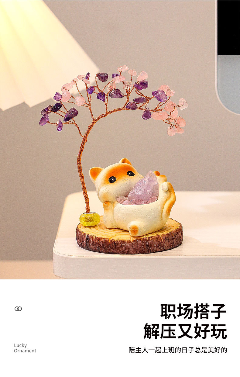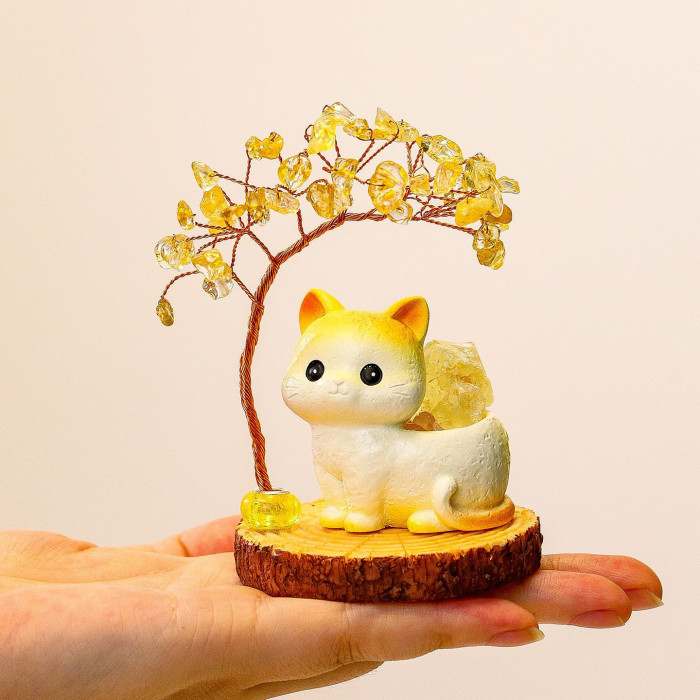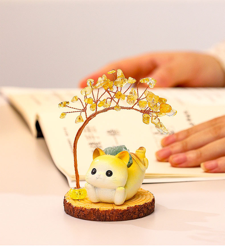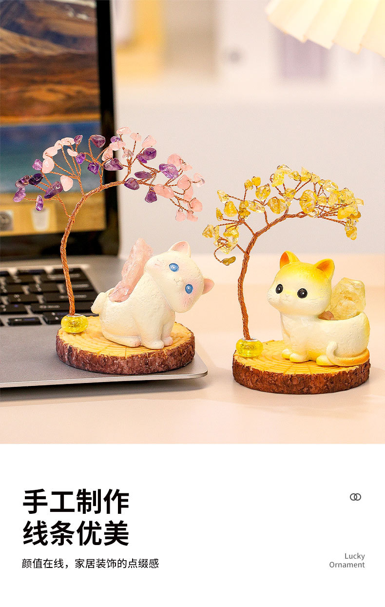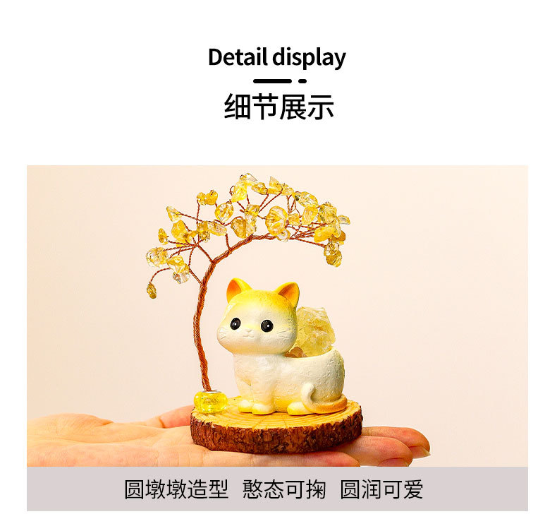 好運貓貓水晶發財樹甜甜小貓天然水晶原石擴香石工位擺件創意禮品