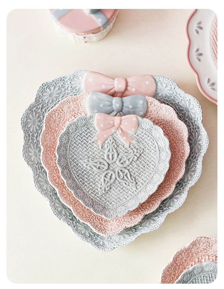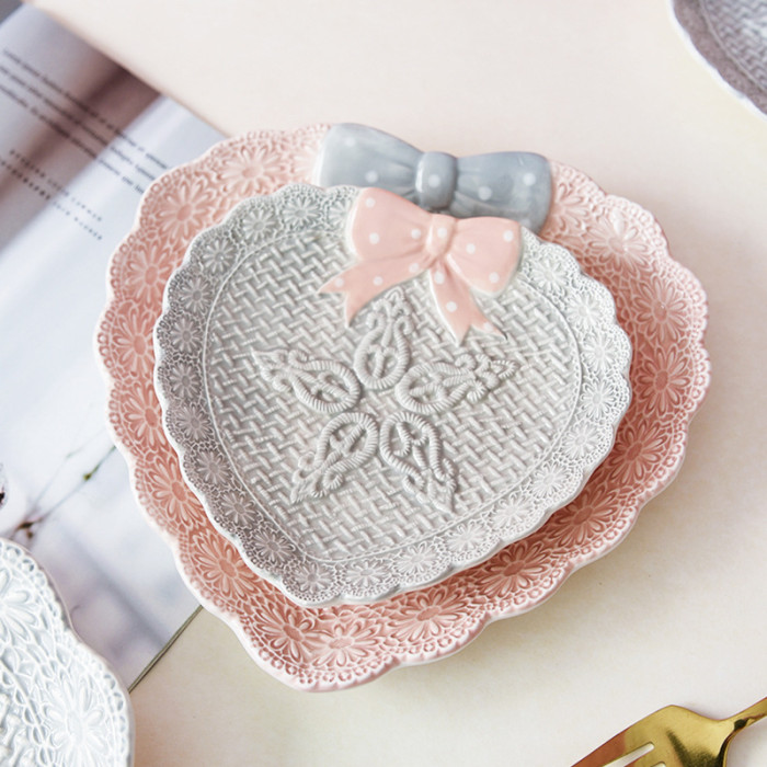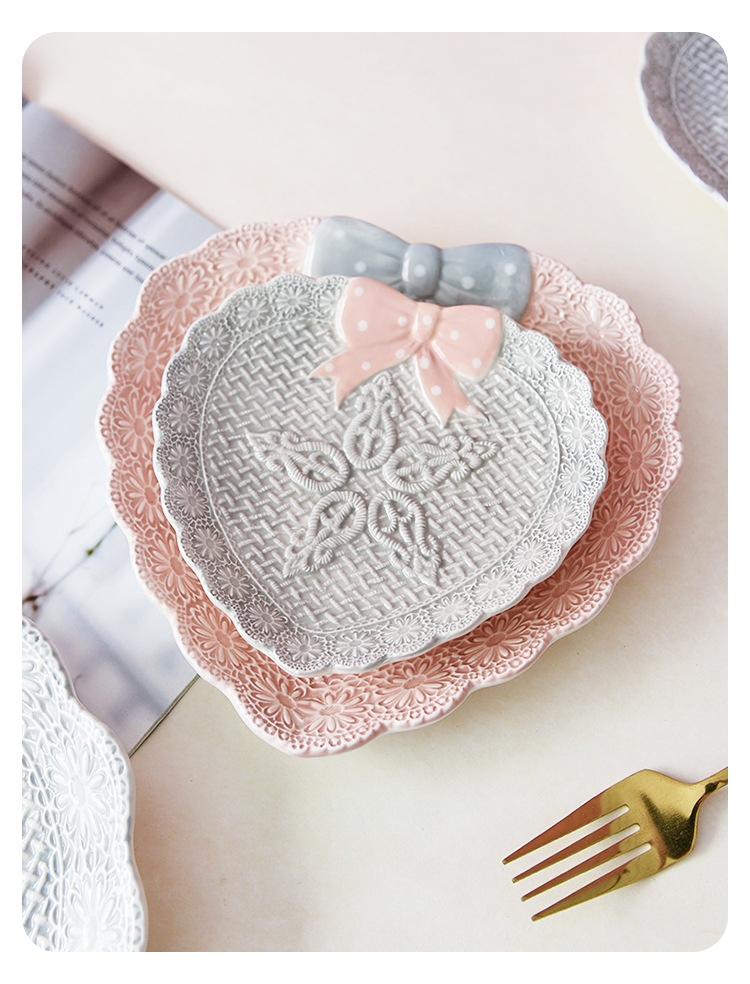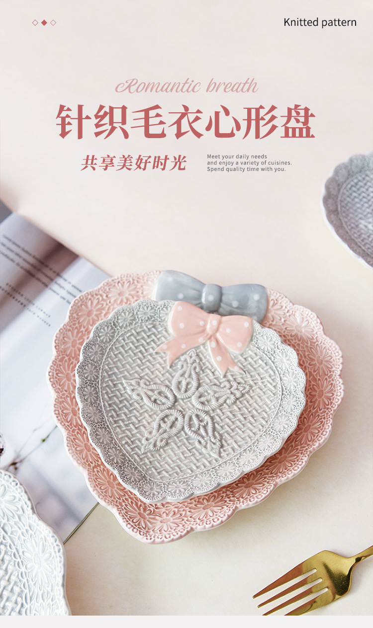 美式創意家居陶瓷盤愛心形淺盤甜點盤房間客廳餐桌裝飾物擺件