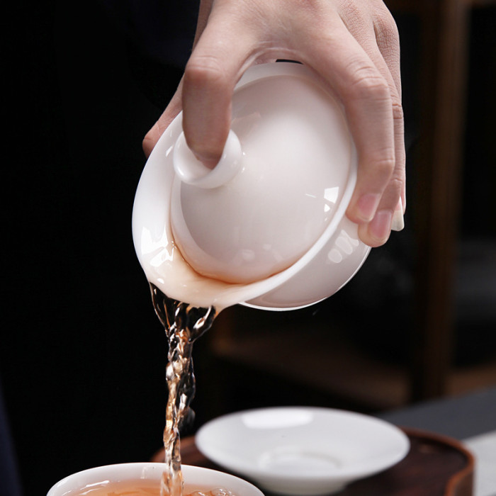 羊脂玉陶瓷功夫茶具蓋碗德化白瓷三才蓋碗茶具配件敬茶碗泡茶碗