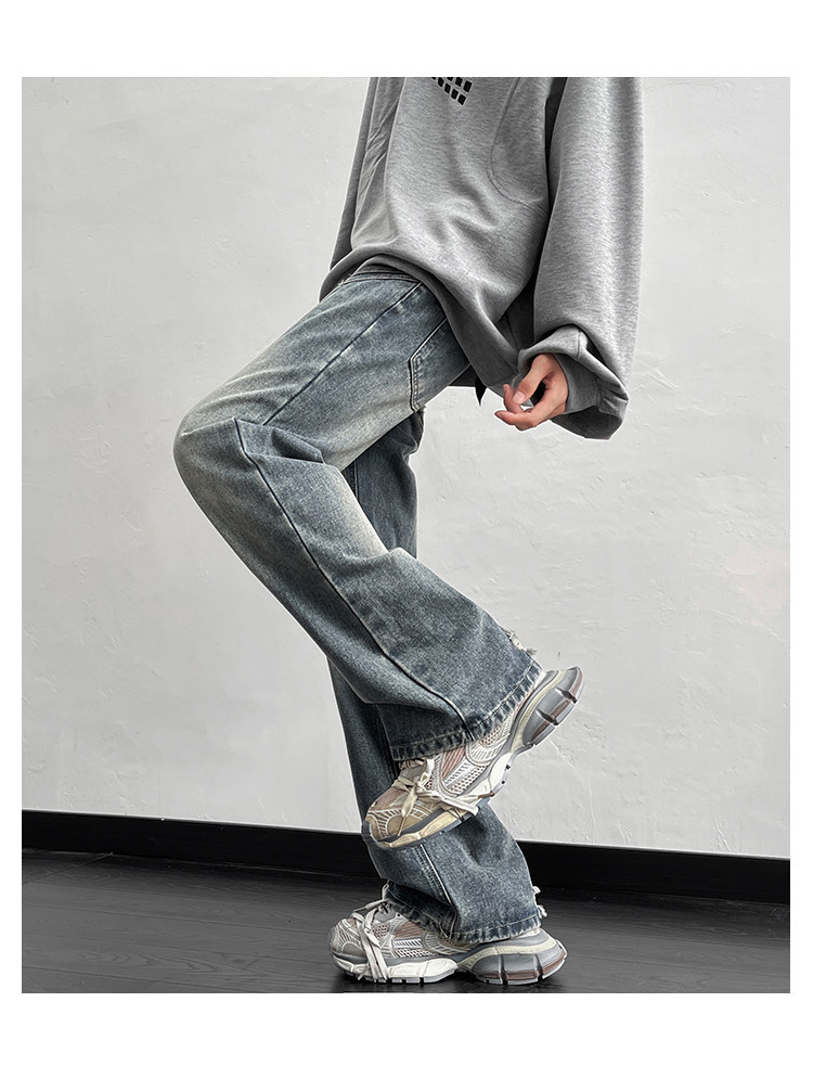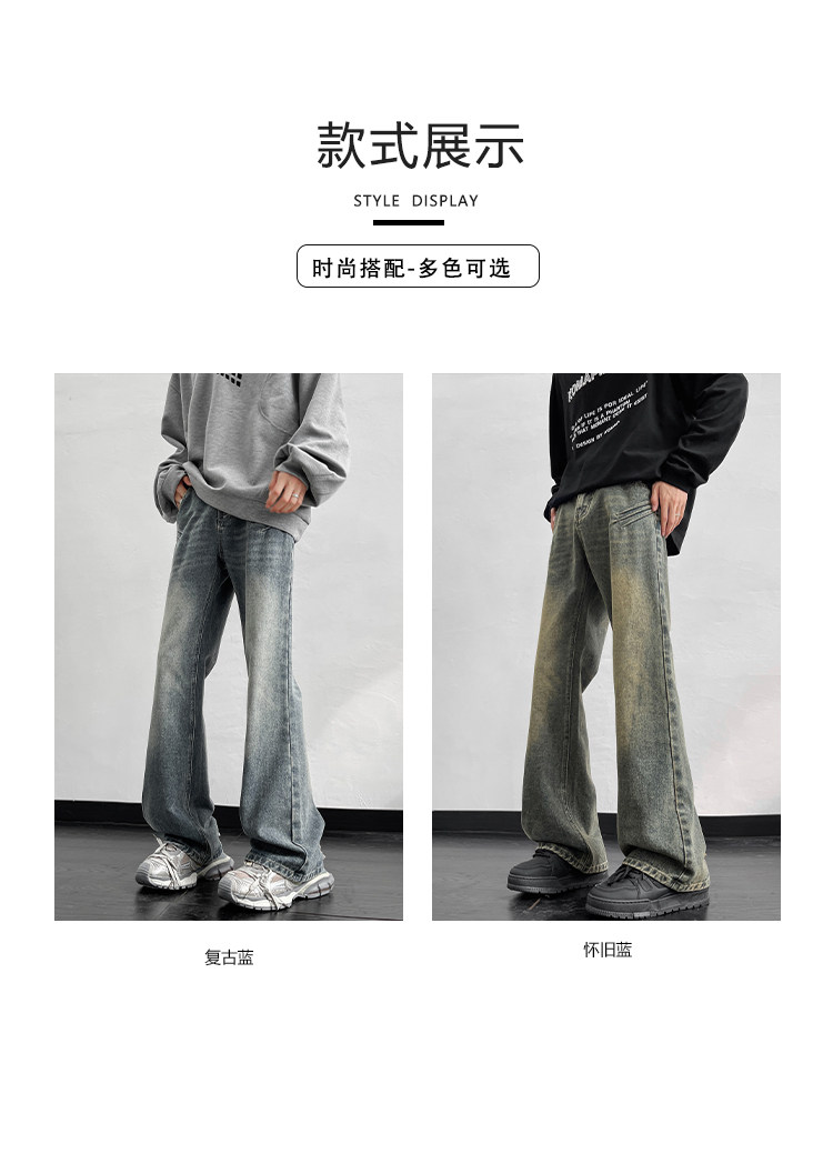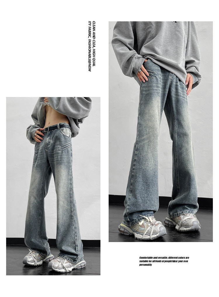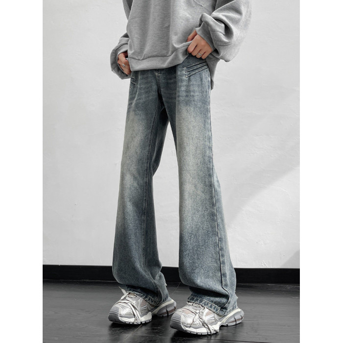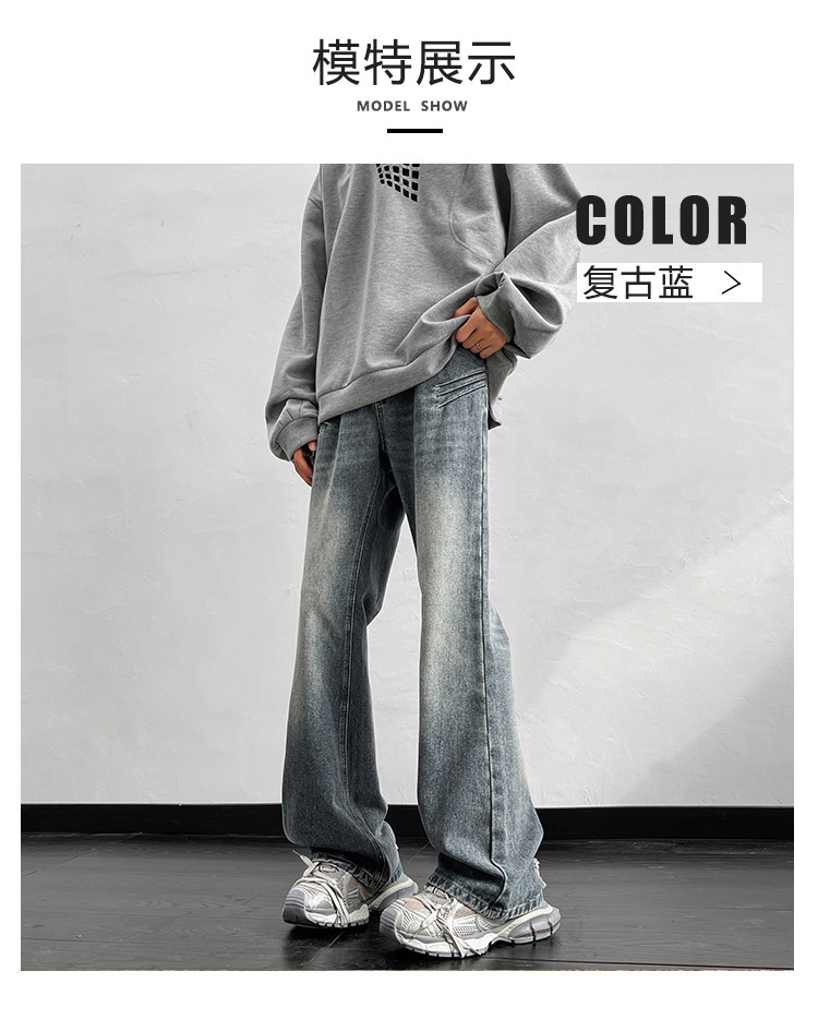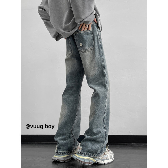 美式高街cleanfit微喇牛仔褲男士春秋季2025新款寬鬆直筒休閒褲子