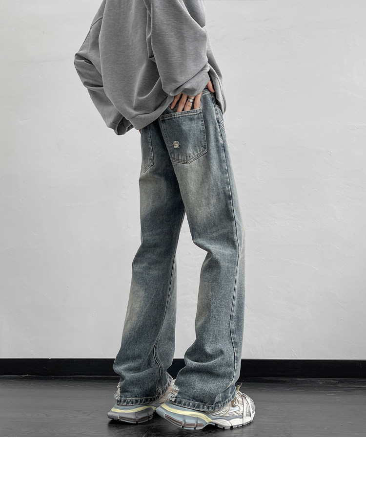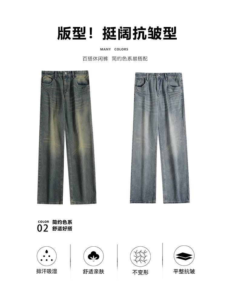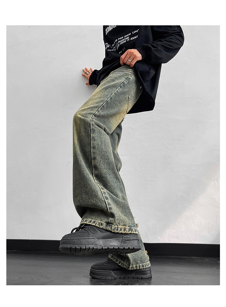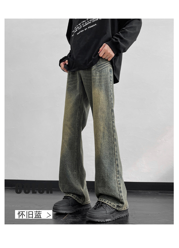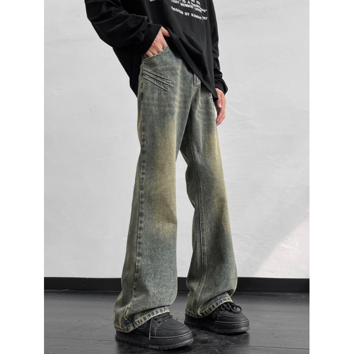 美式高街cleanfit微喇牛仔褲男士春秋季2025新款寬鬆直筒休閒褲子