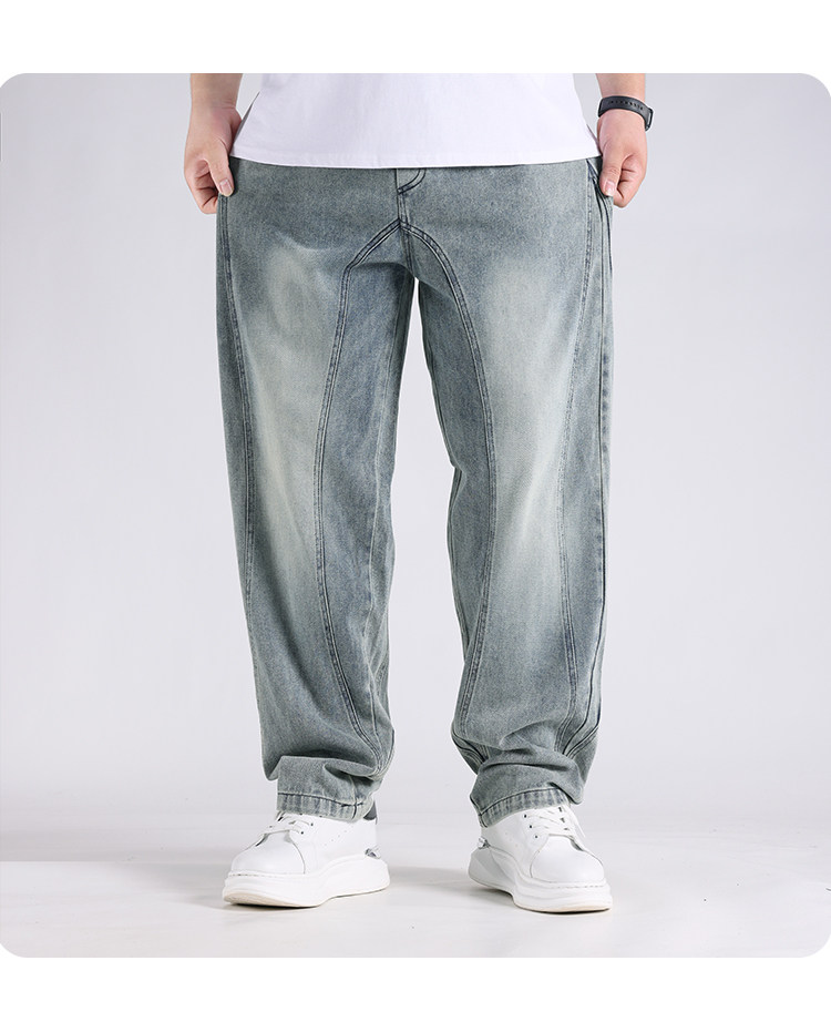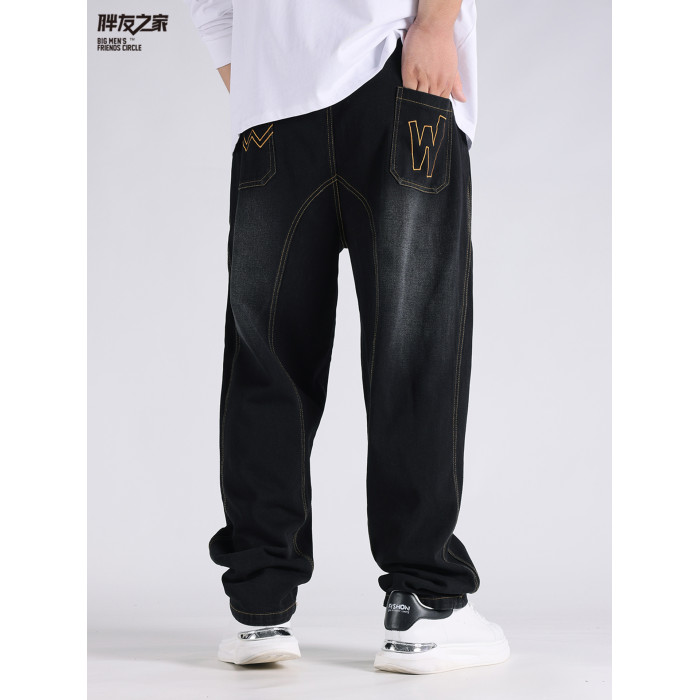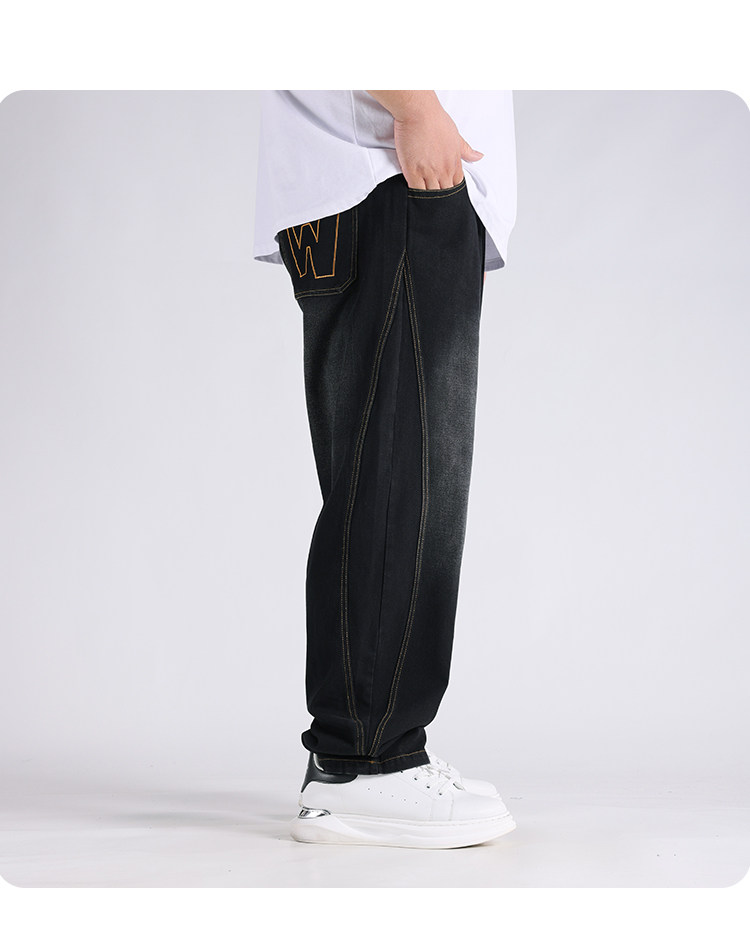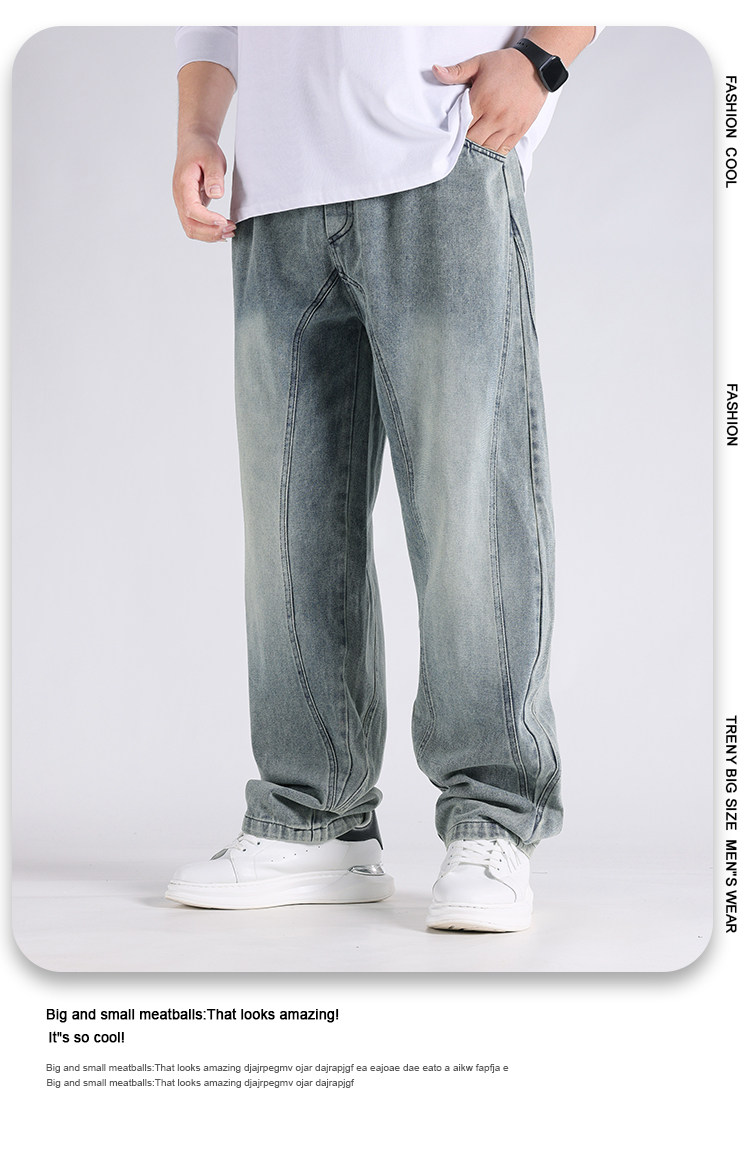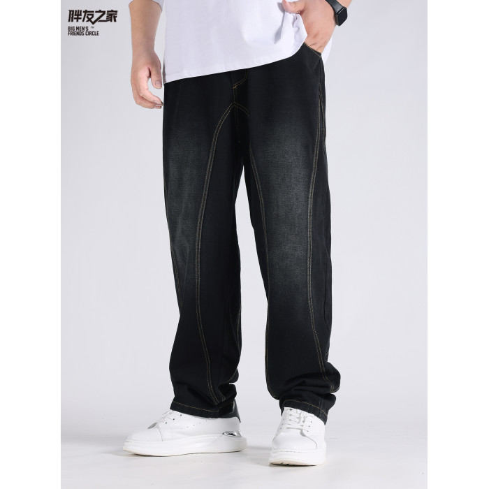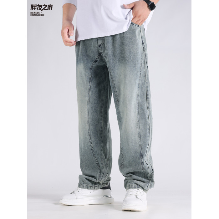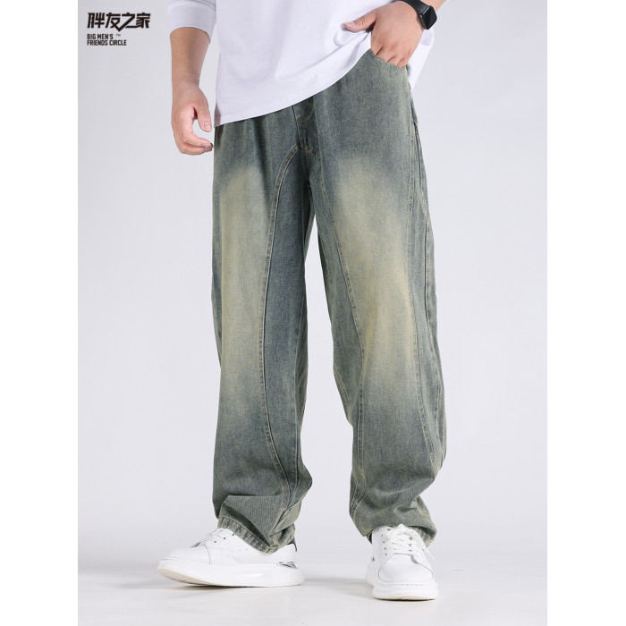 2025春秋新款牛仔褲男士寬鬆加肥加大碼直筒濶腿褲子休閒百搭胖子