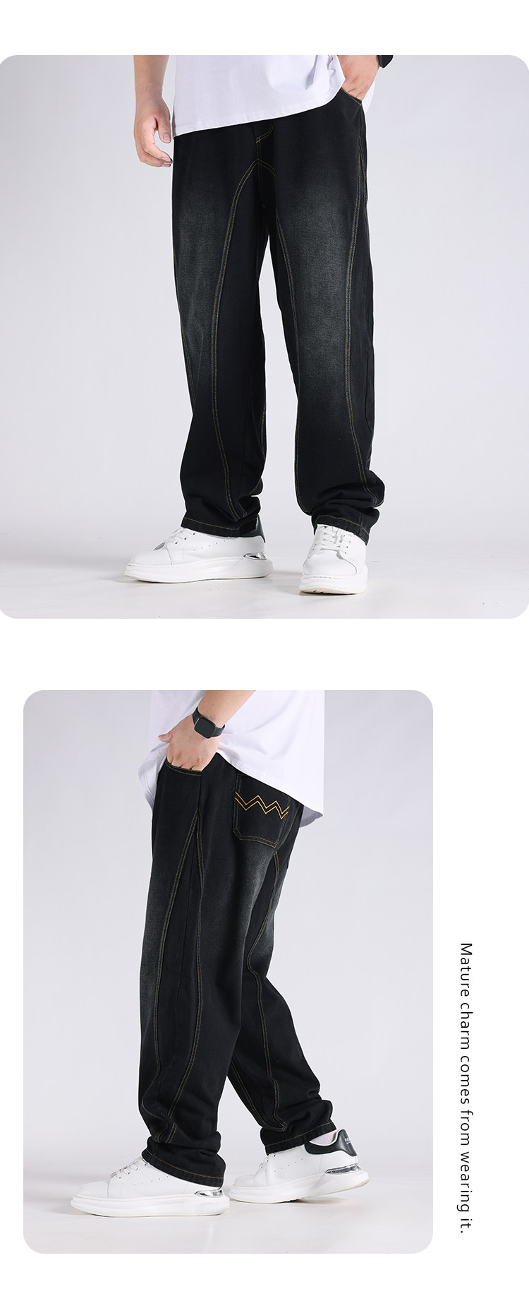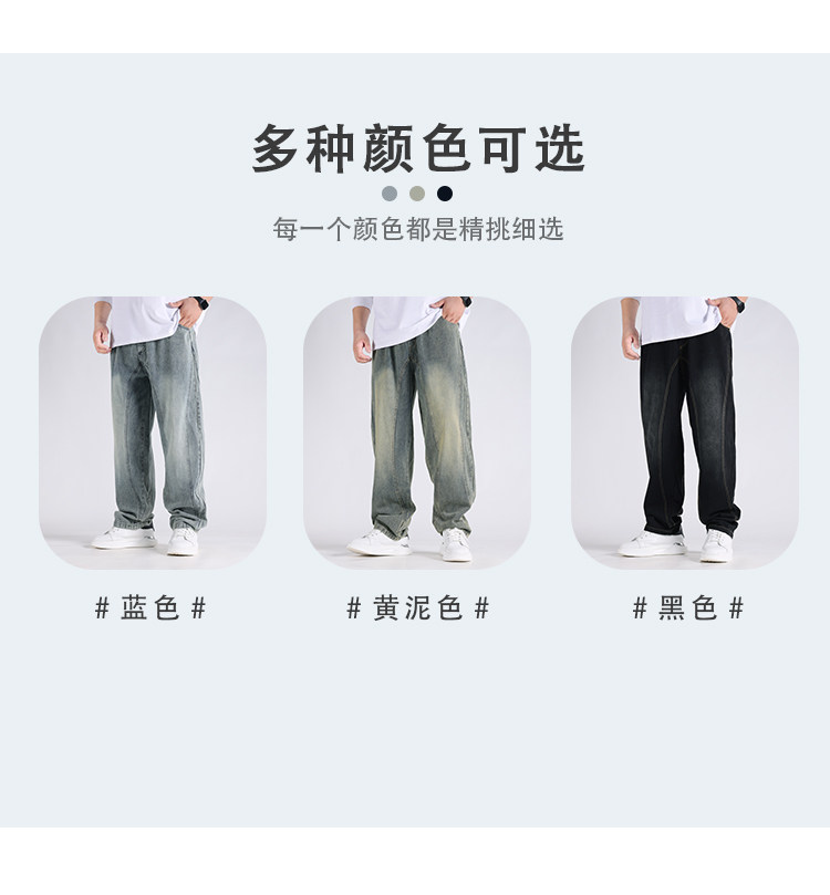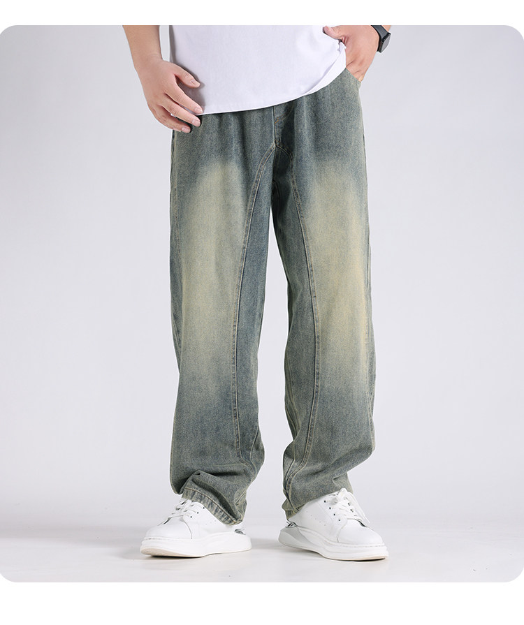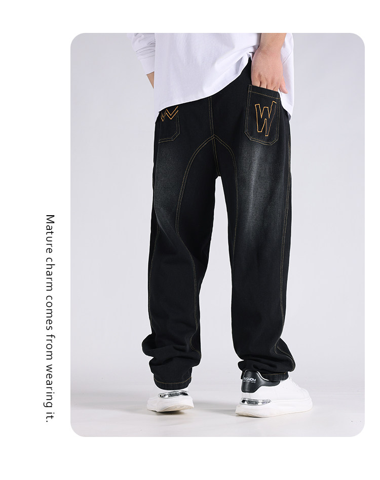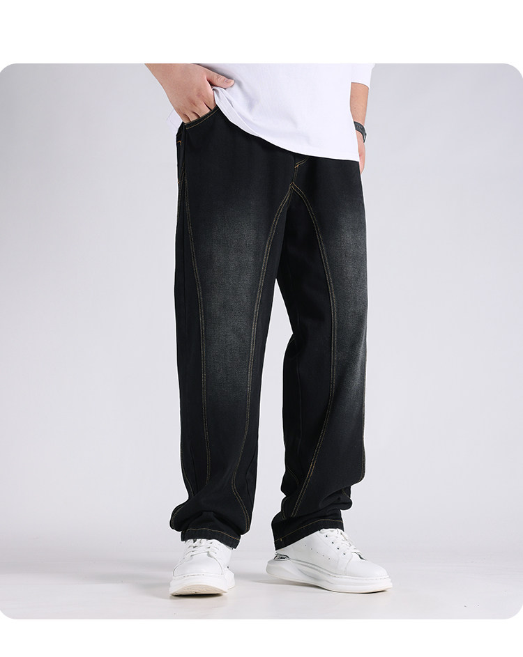 2025春秋新款牛仔褲男士寬鬆加肥加大碼直筒濶腿褲子休閒百搭胖子