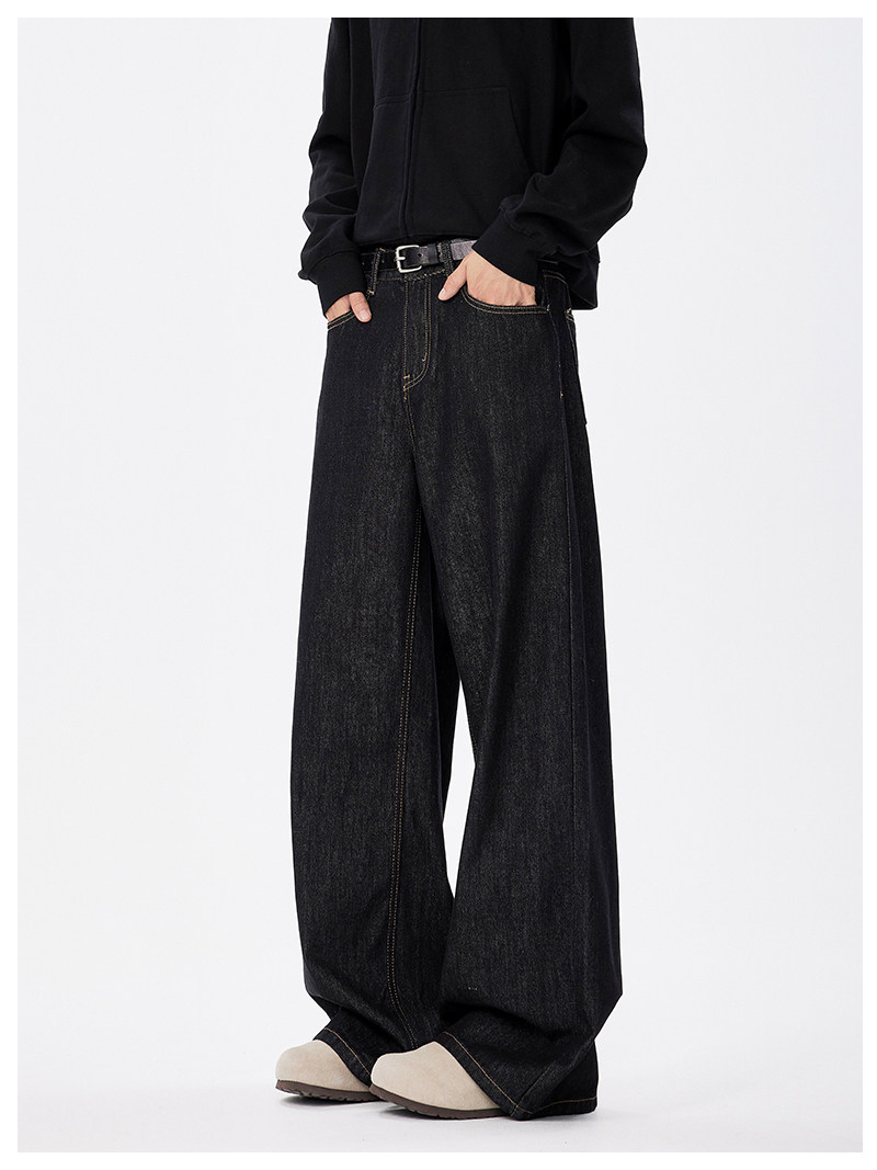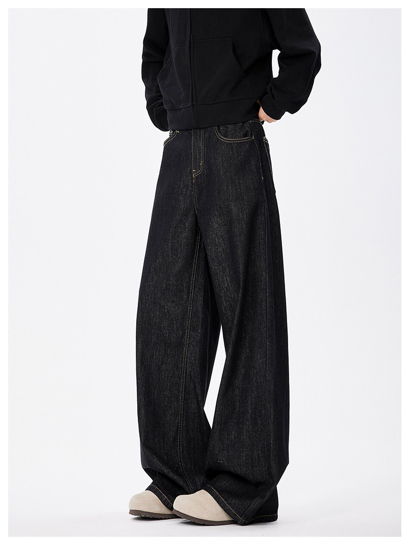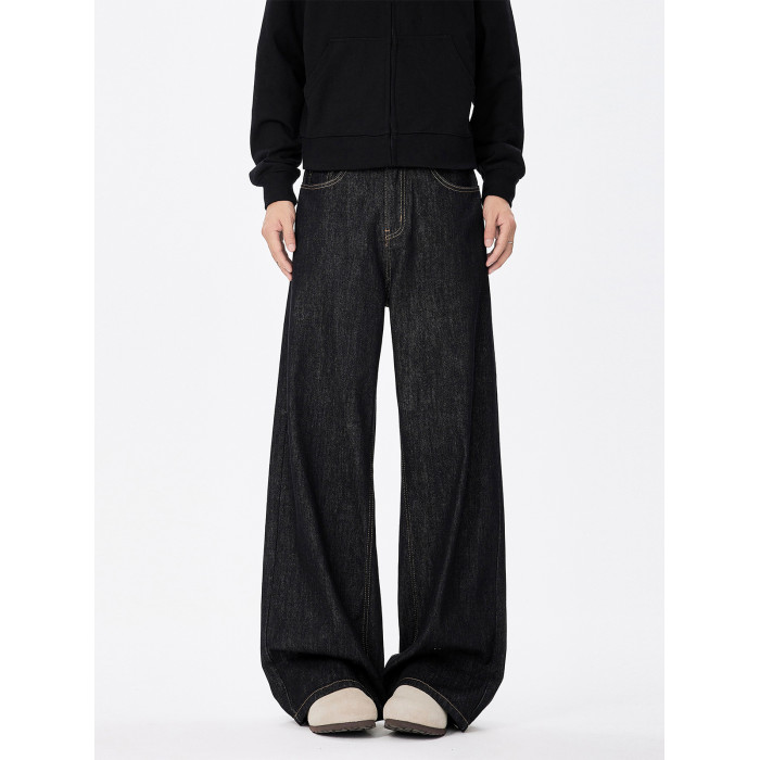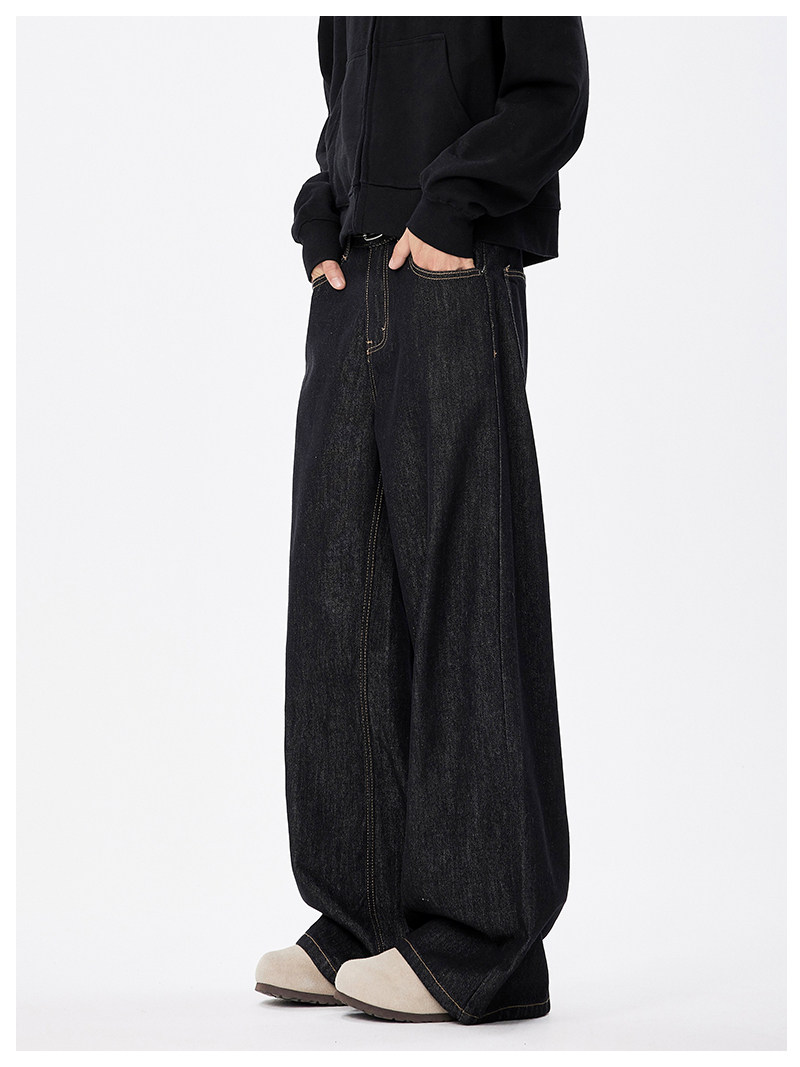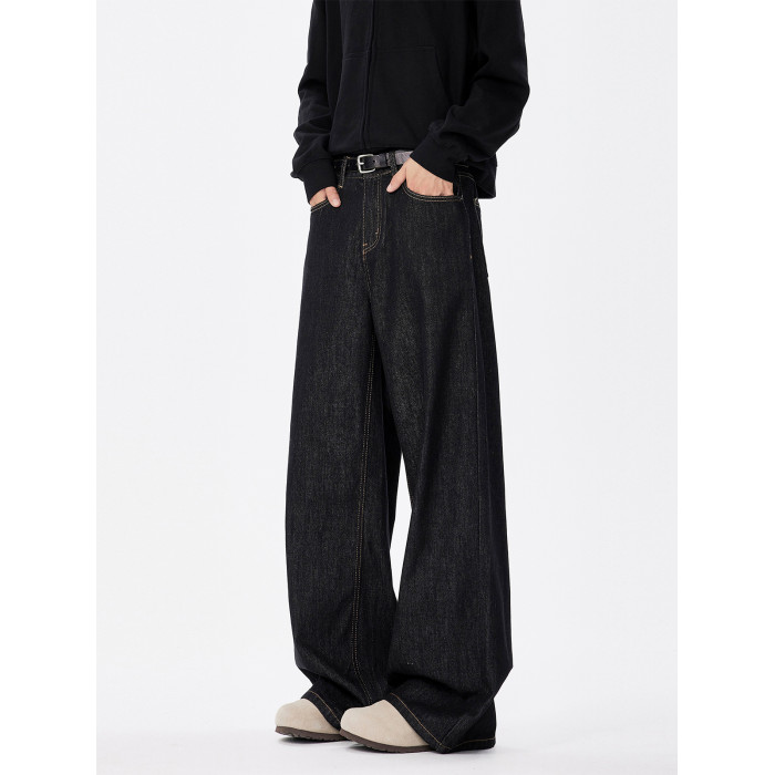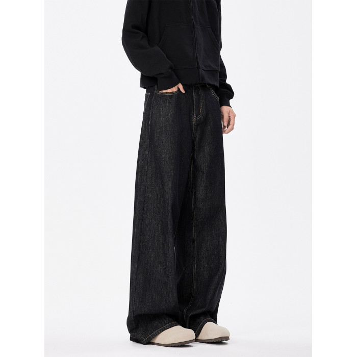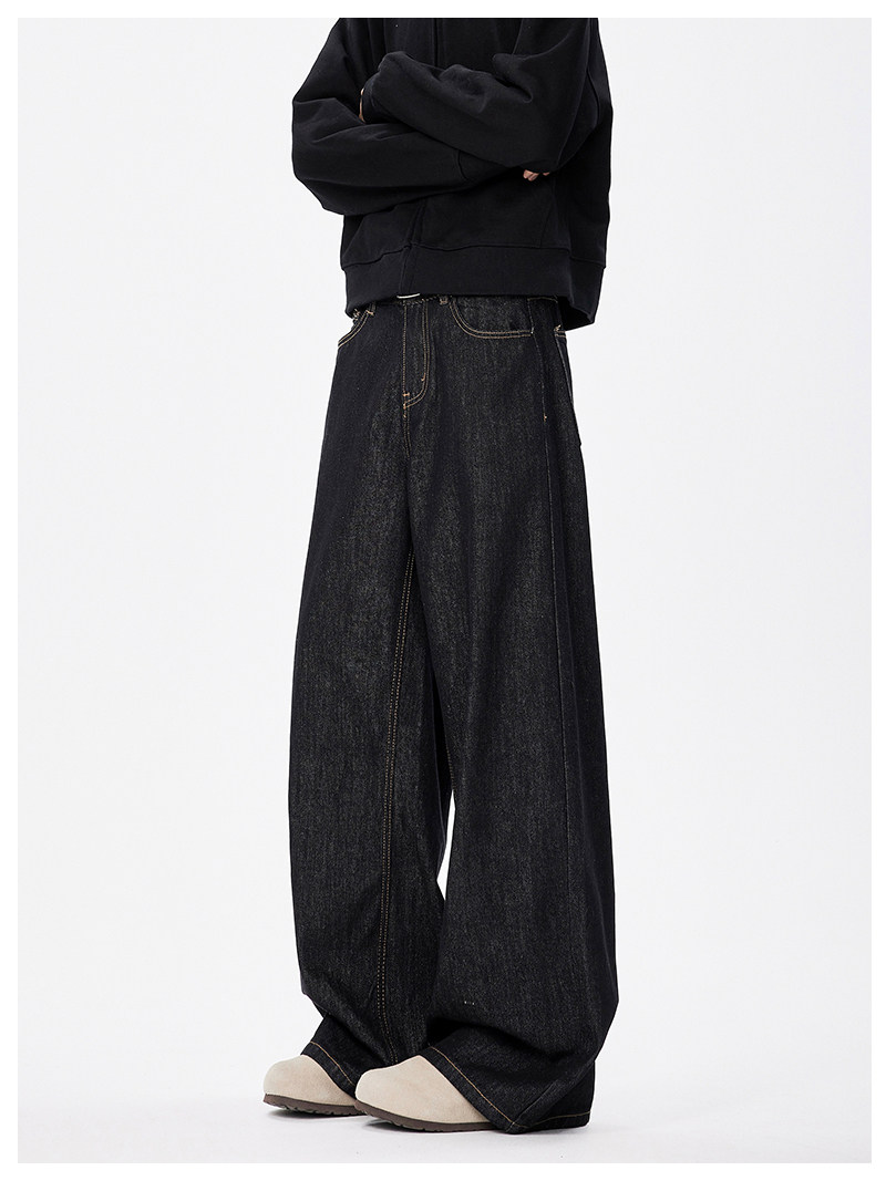 美式復古cleanfit濶腿牛仔褲男潮牌新款寬鬆垂感直筒休閒拖地長褲