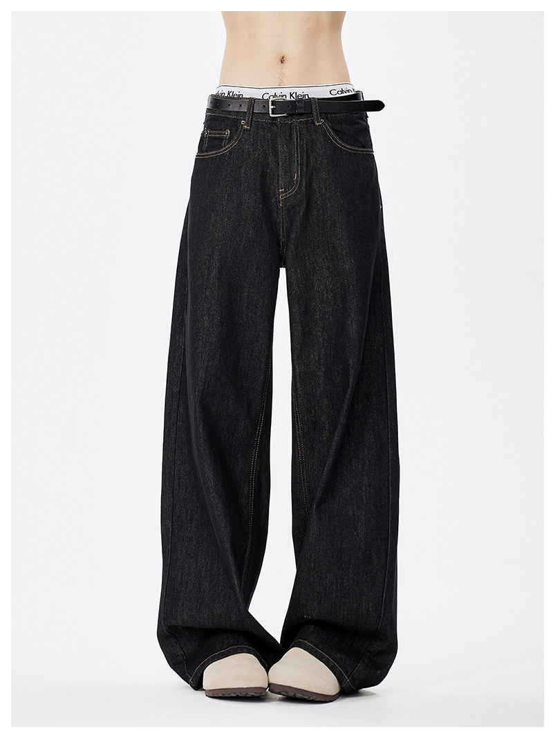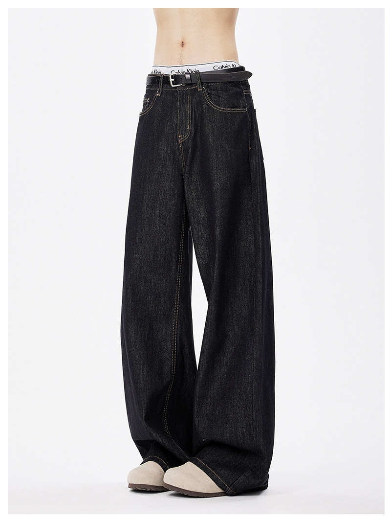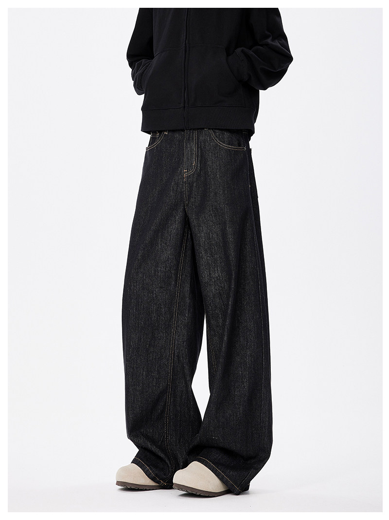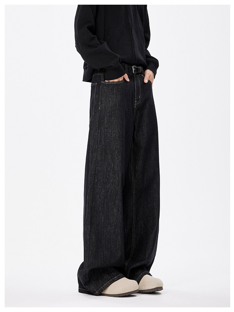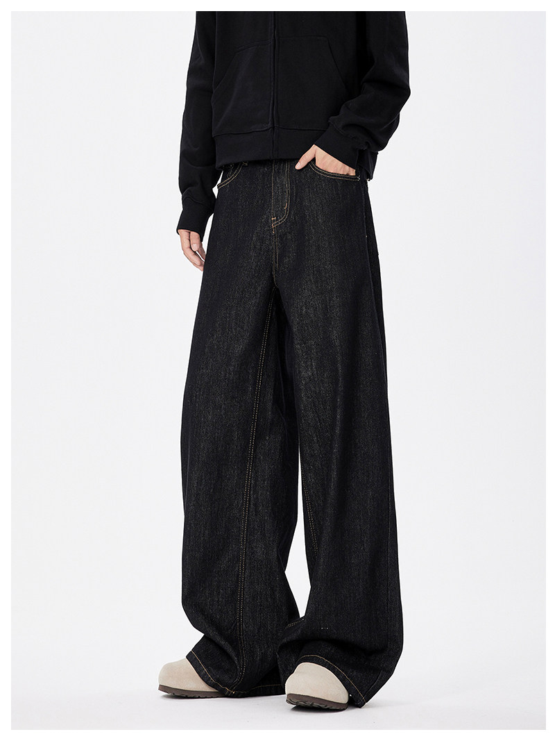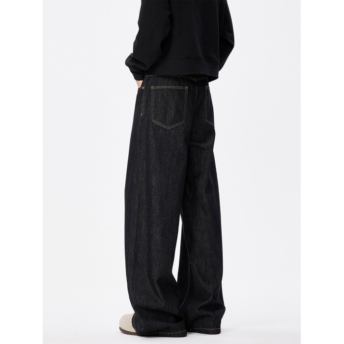 美式復古cleanfit濶腿牛仔褲男潮牌新款寬鬆垂感直筒休閒拖地長褲