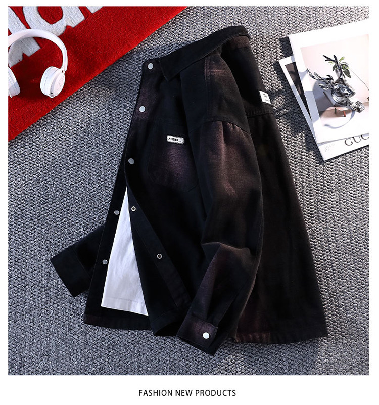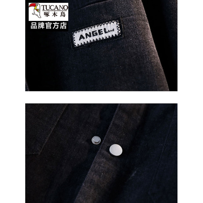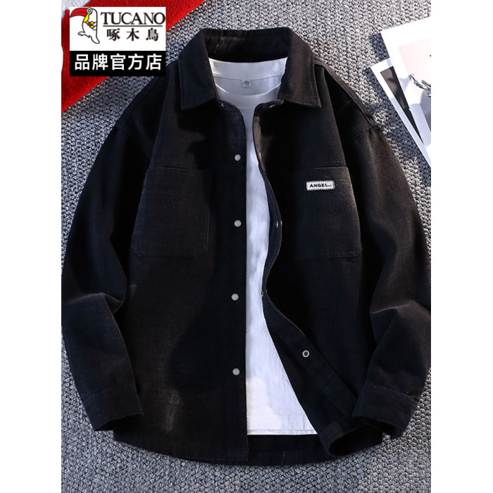啄木鳥牛仔男士外套2025新款春秋季潮流寬鬆帥氣繙領工裝夾克上衣