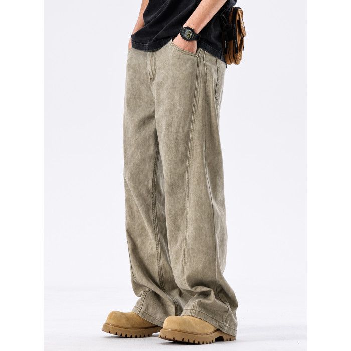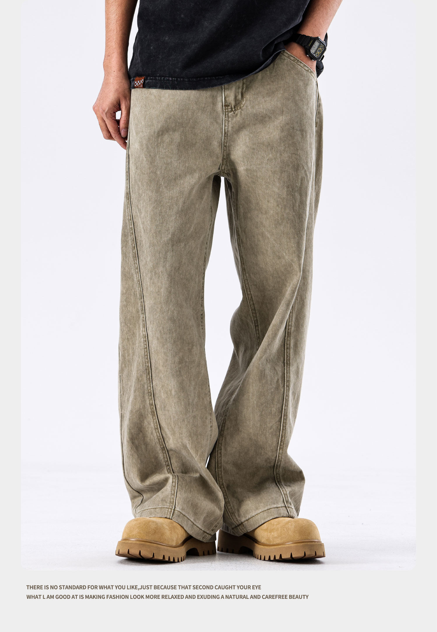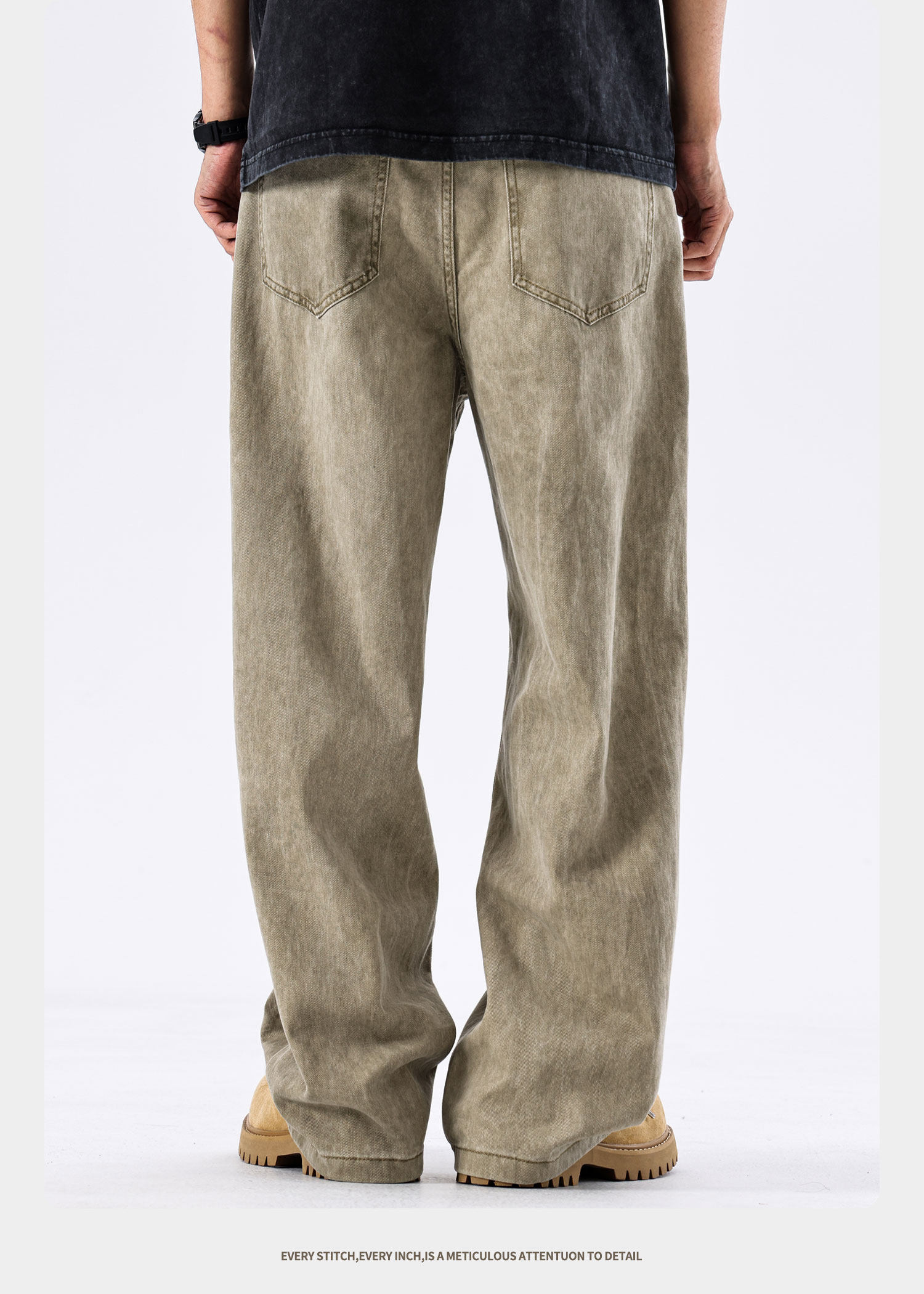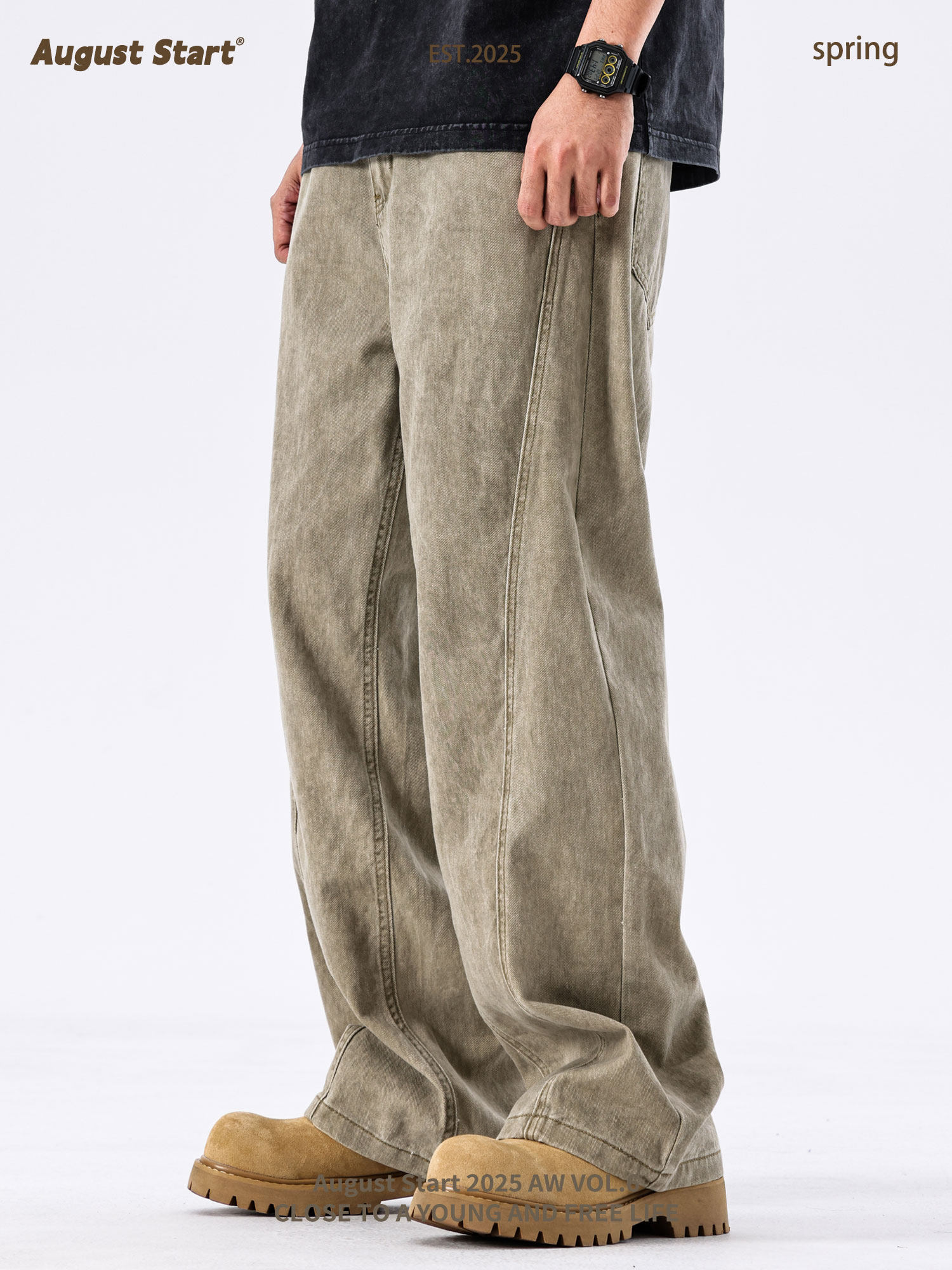 August卡其直筒牛仔褲男秋冬新款美式高街長褲子寬鬆男士休閒男褲