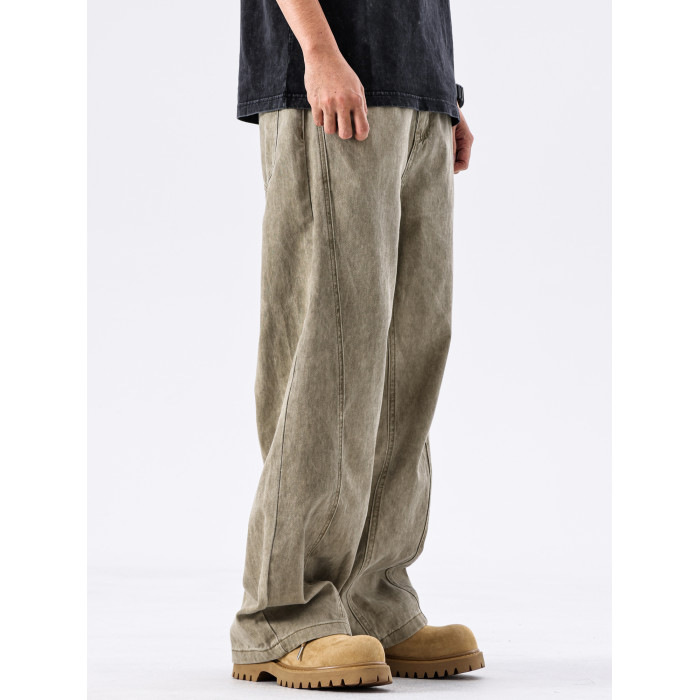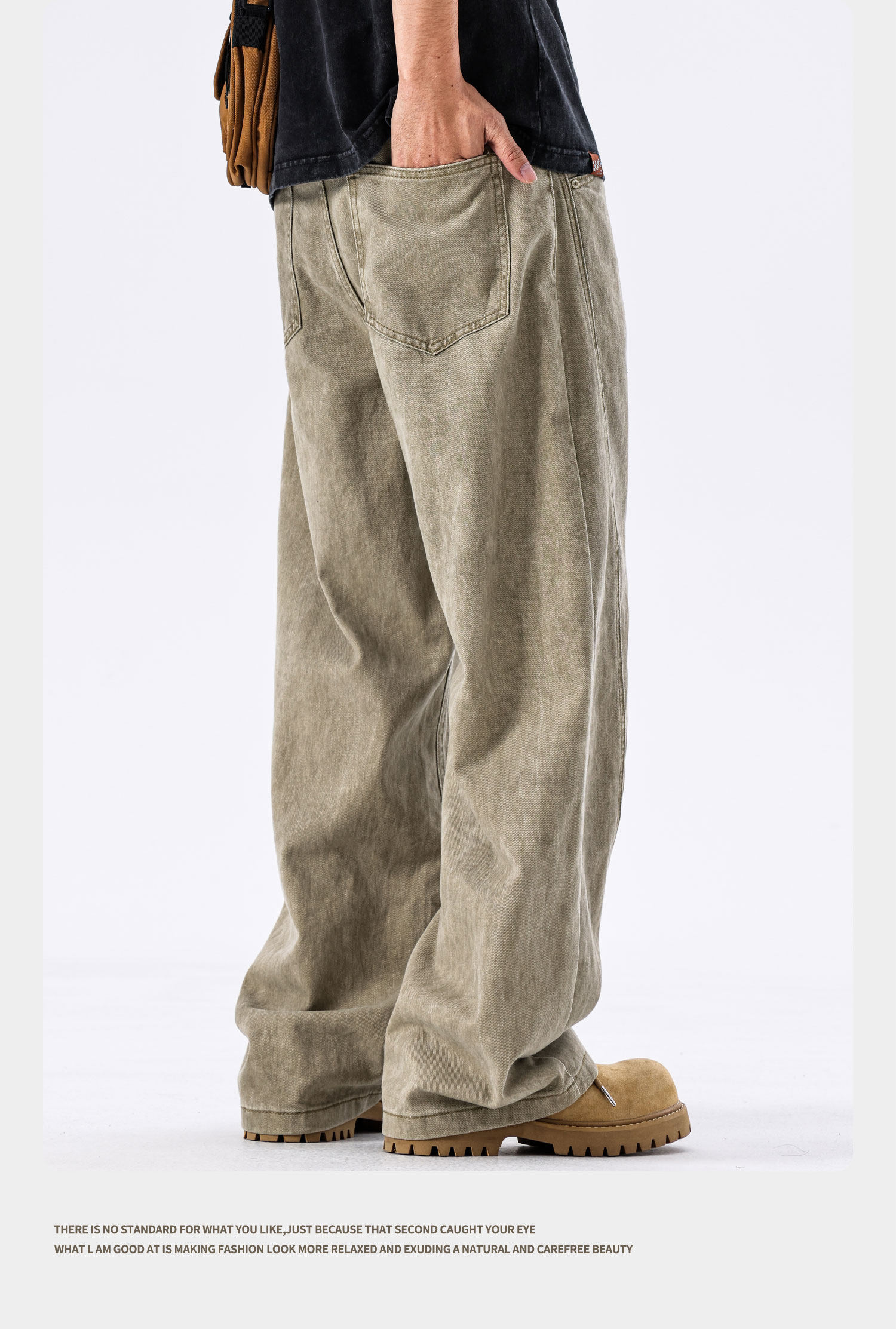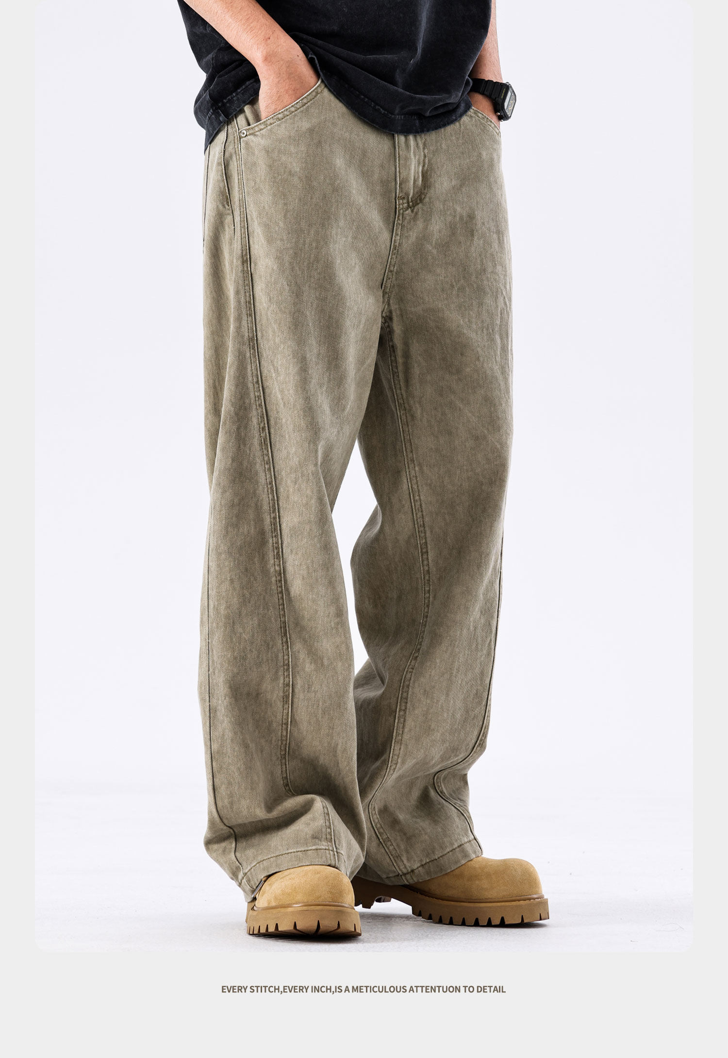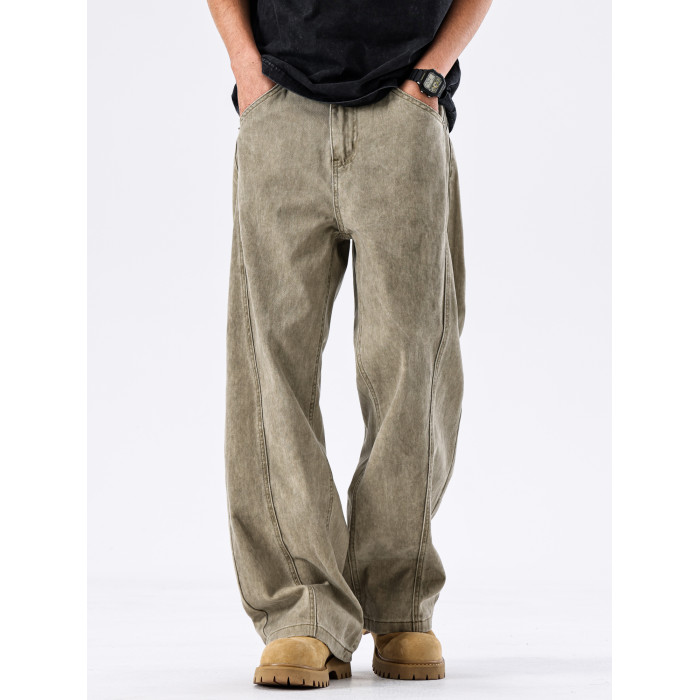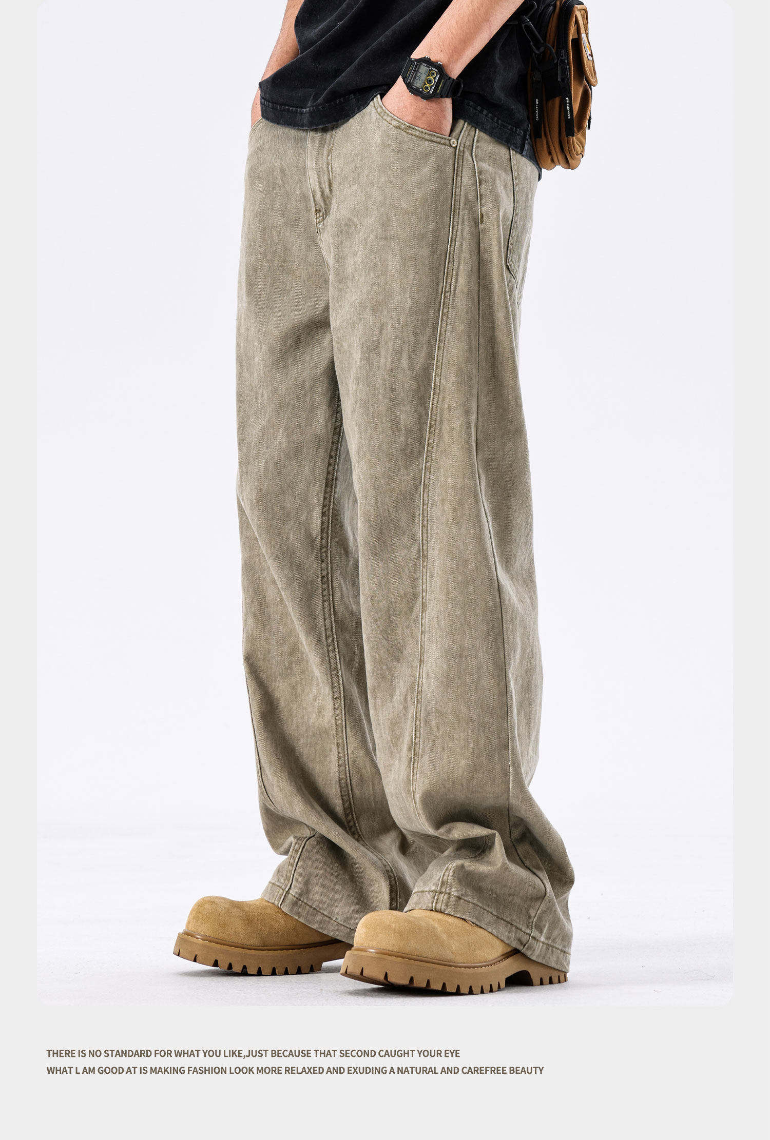 August卡其直筒牛仔褲男秋冬新款美式高街長褲子寬鬆男士休閒男褲