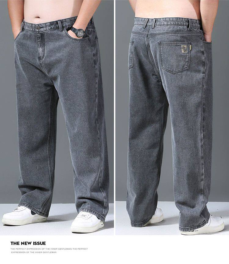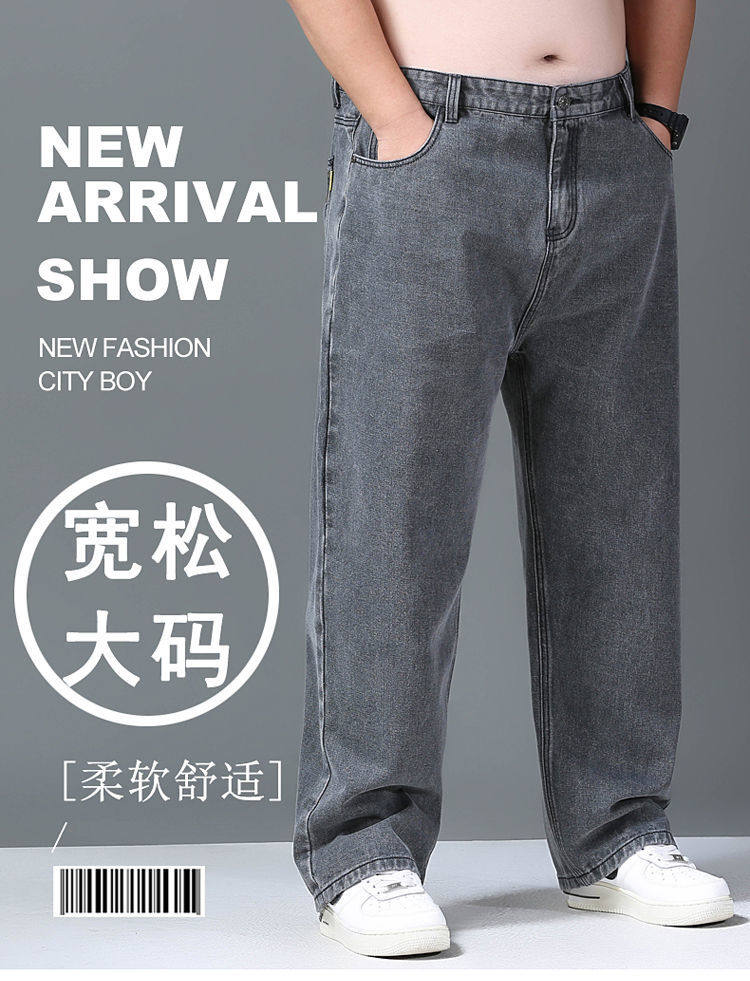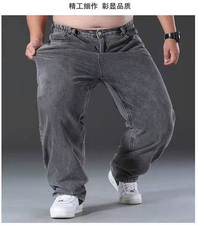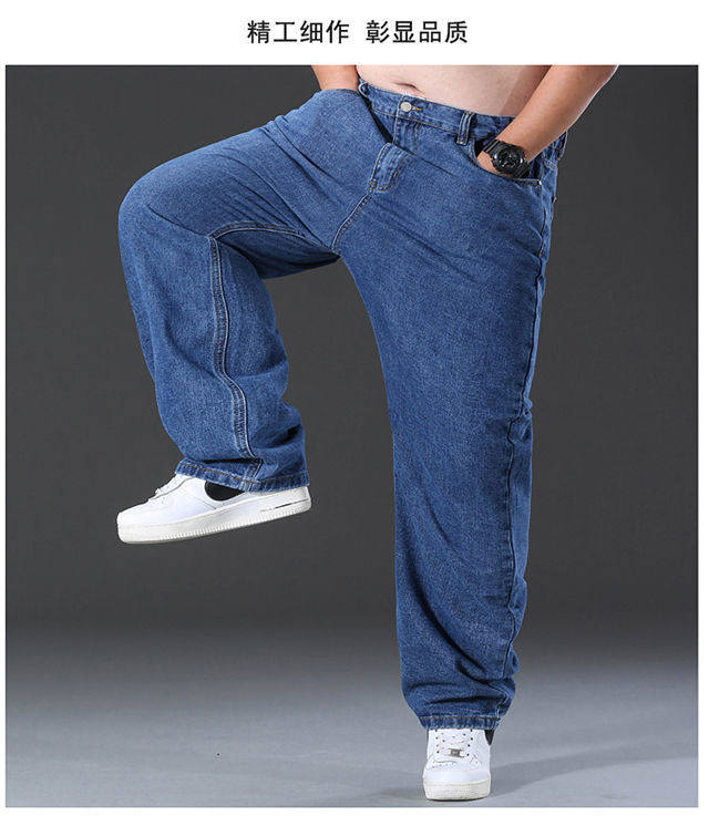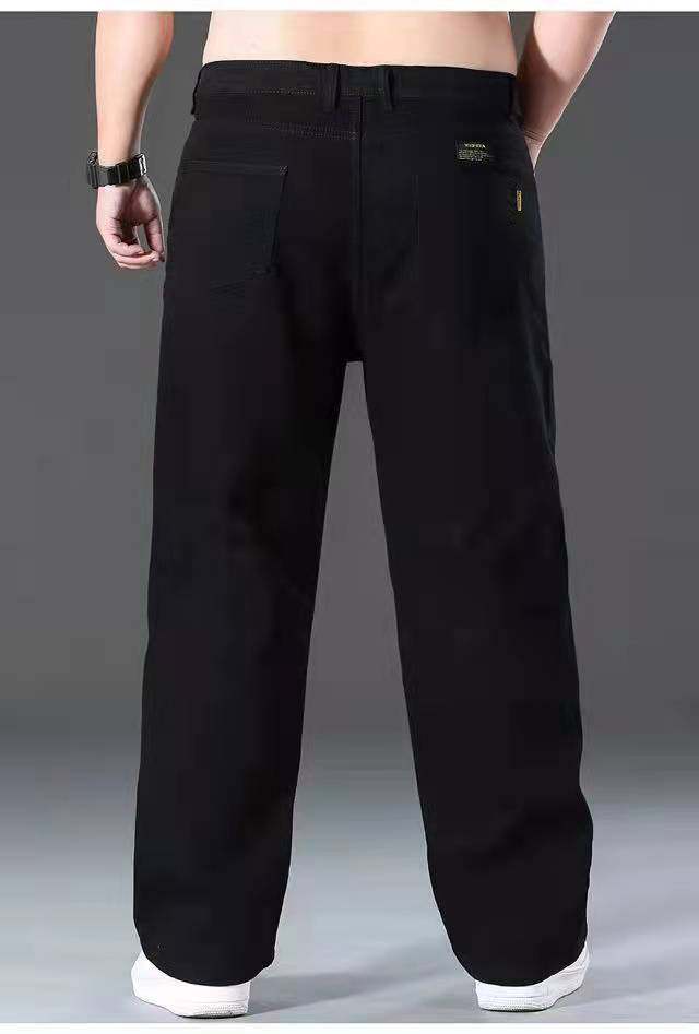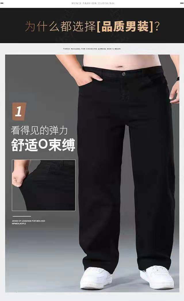 春秋加厚大碼彈力牛仔褲男寬鬆耐磨直筒褲加肥加大肥佬勞保工作褲