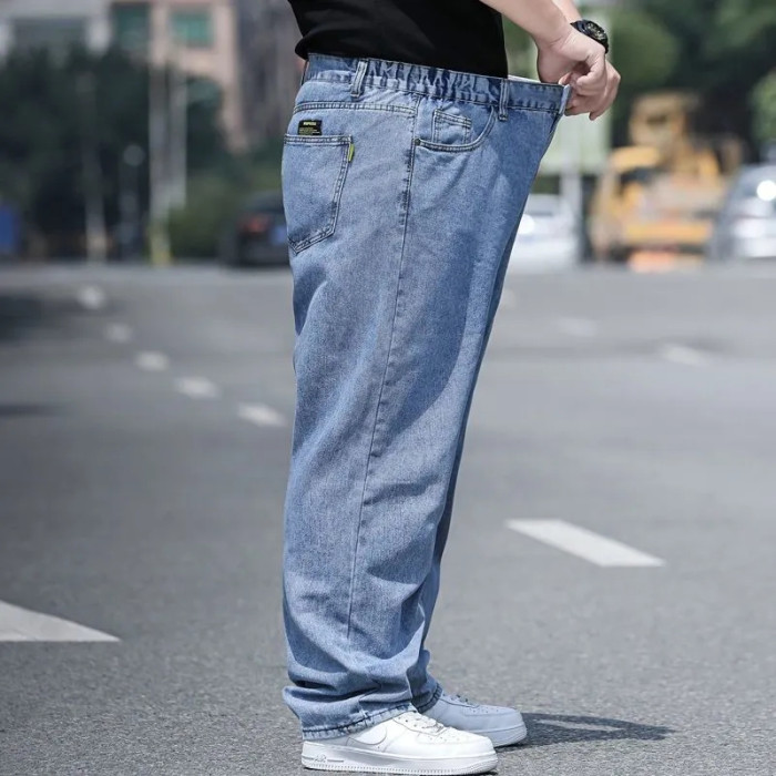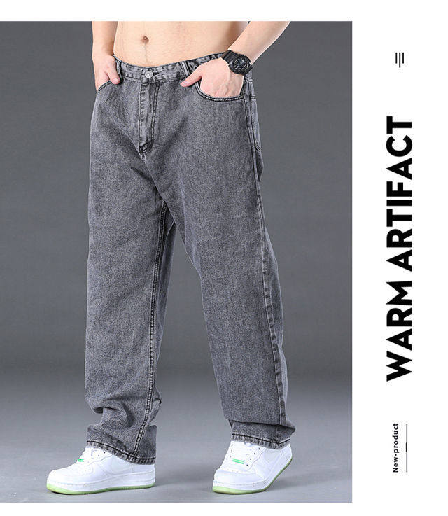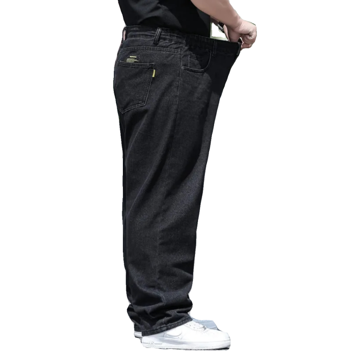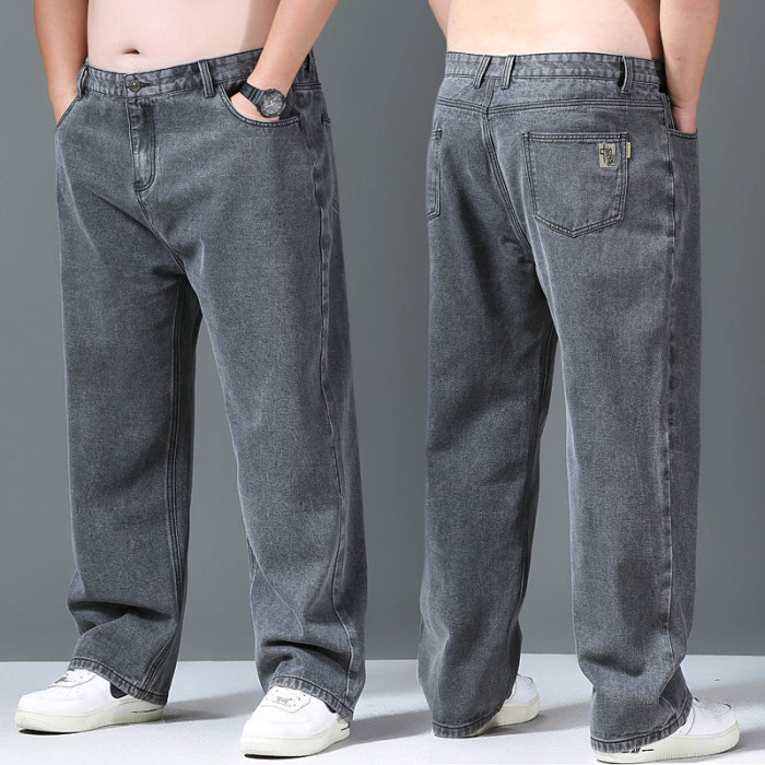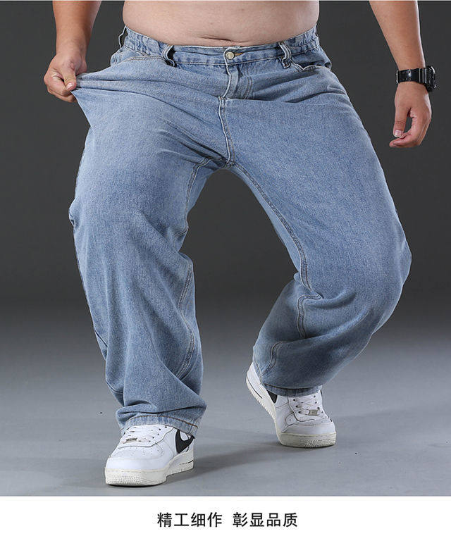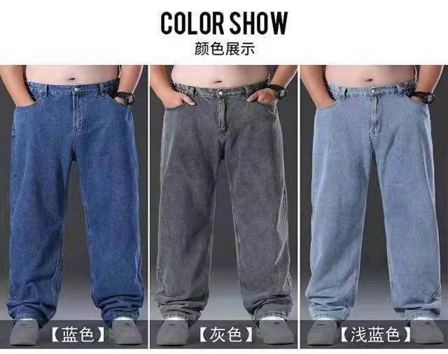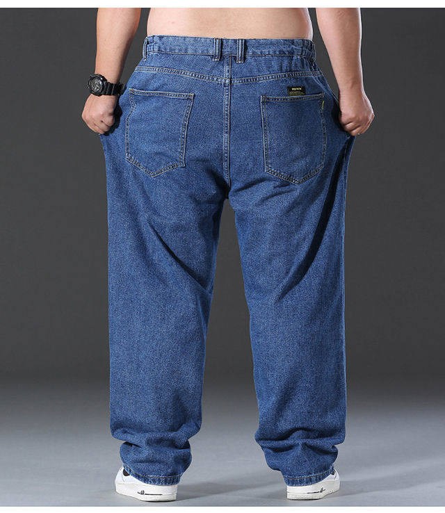 春秋加厚大碼彈力牛仔褲男寬鬆耐磨直筒褲加肥加大肥佬勞保工作褲